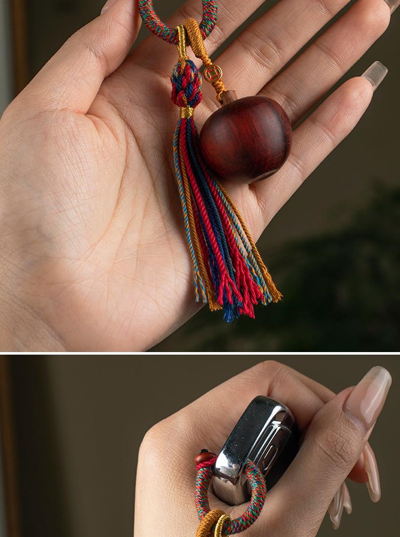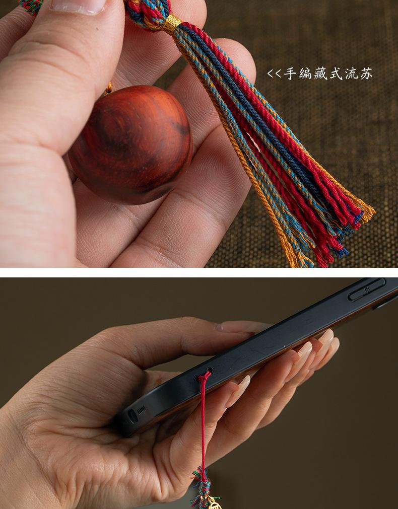 Cordón de Cadena para Teléfono Fruta de la Paz de Palo de Rosa Natural Colgante Anti-Pérdida para Hombres y Mujeres Año de la Serpiente Llavero Creativo para Coche