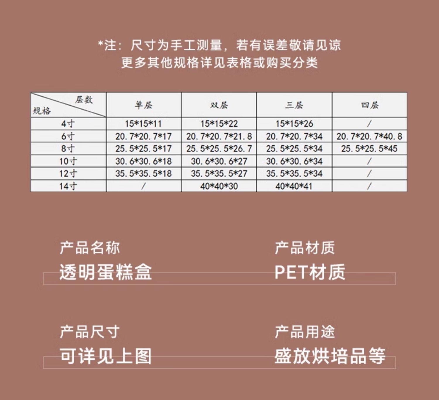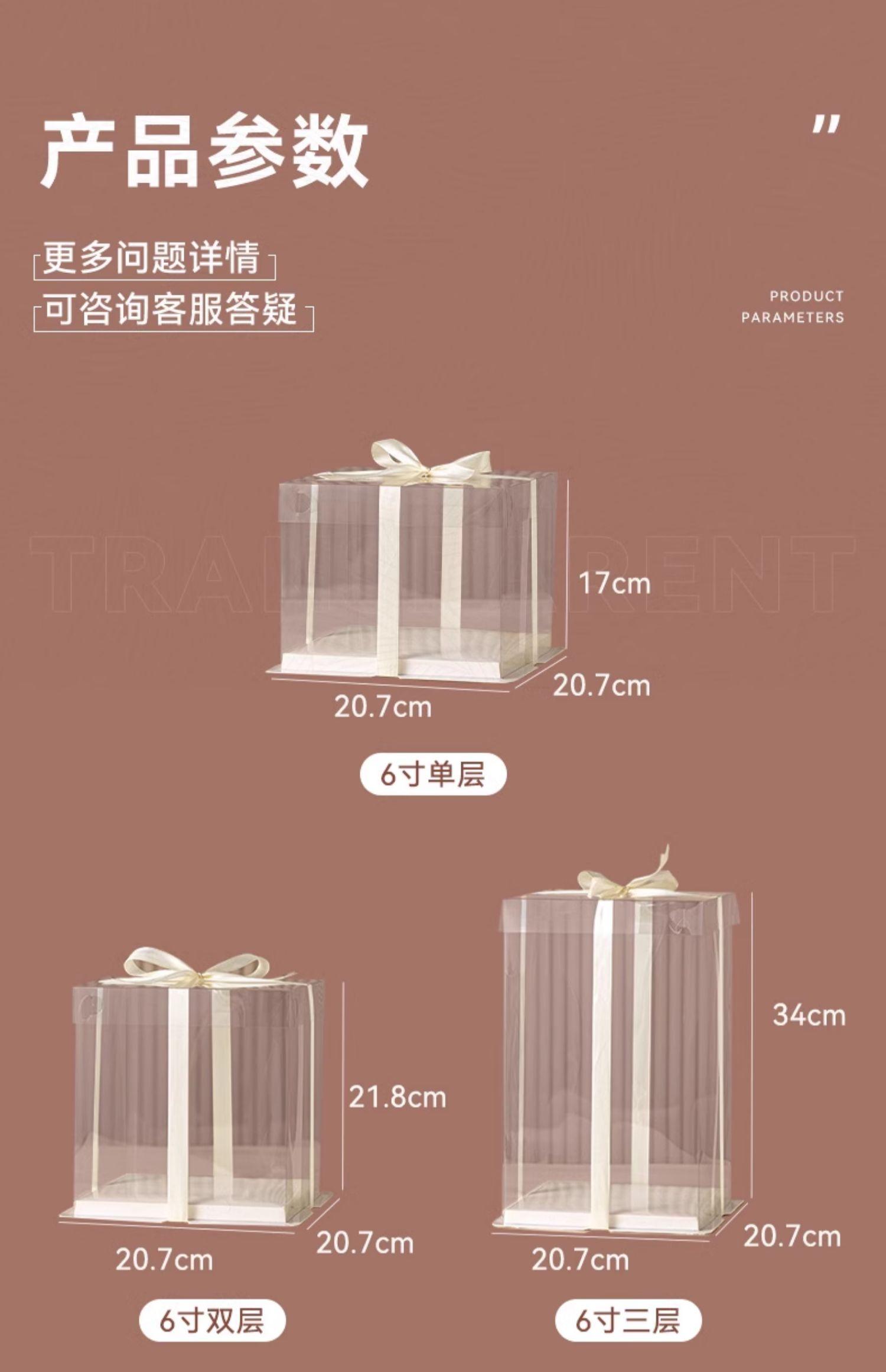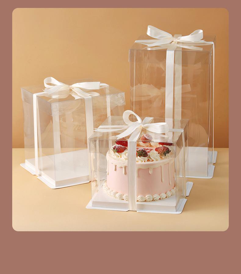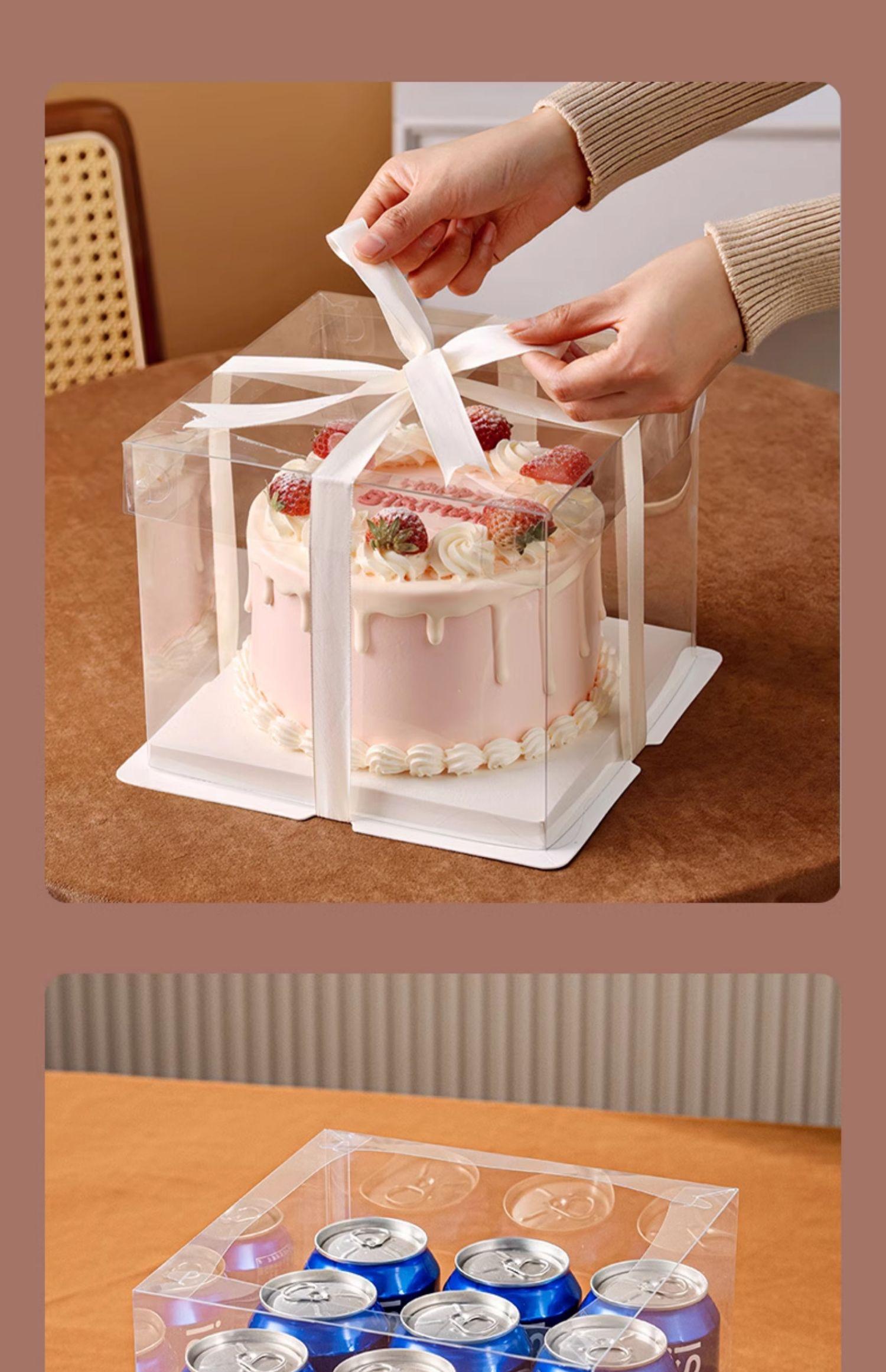 Caja de embalaje para pastel completamente transparente 4 4 pulgadas 6 6 pulgadas 8 pulgadas 10 pulgadas embalaje de cumpleaños doble tres alto desechable