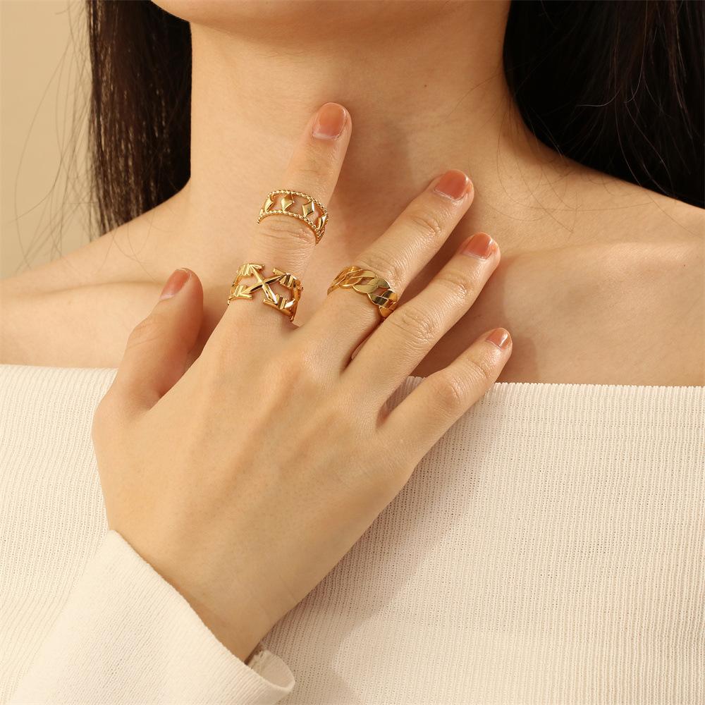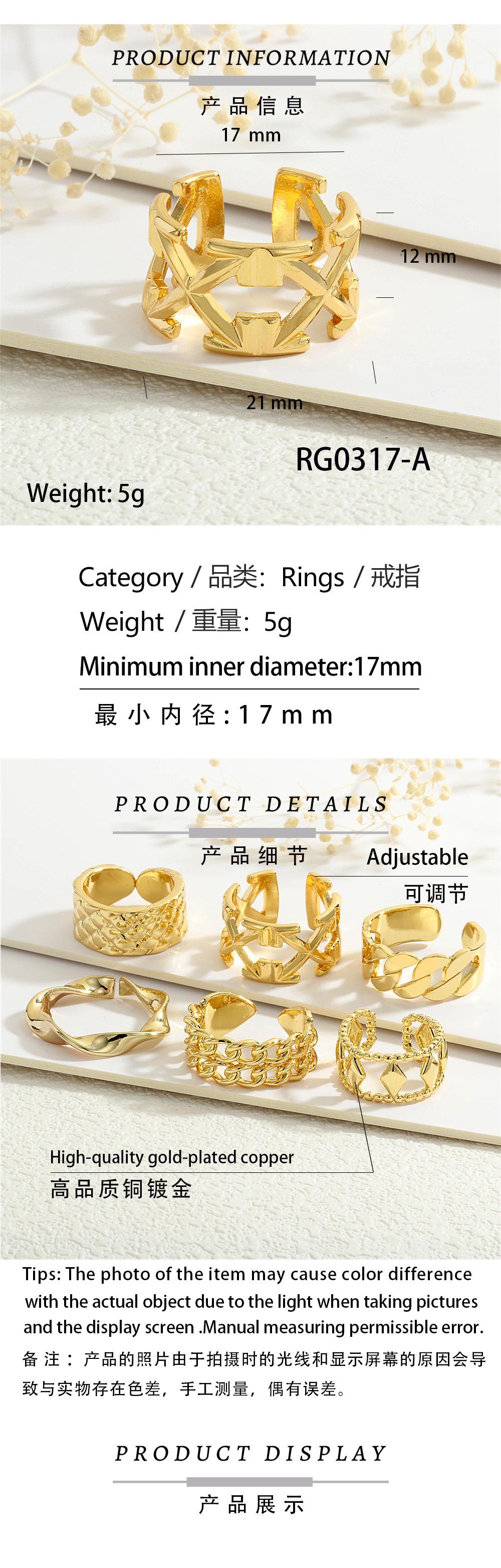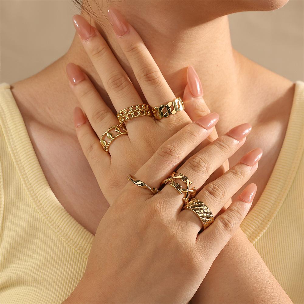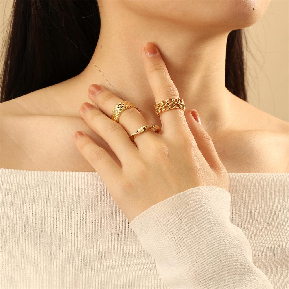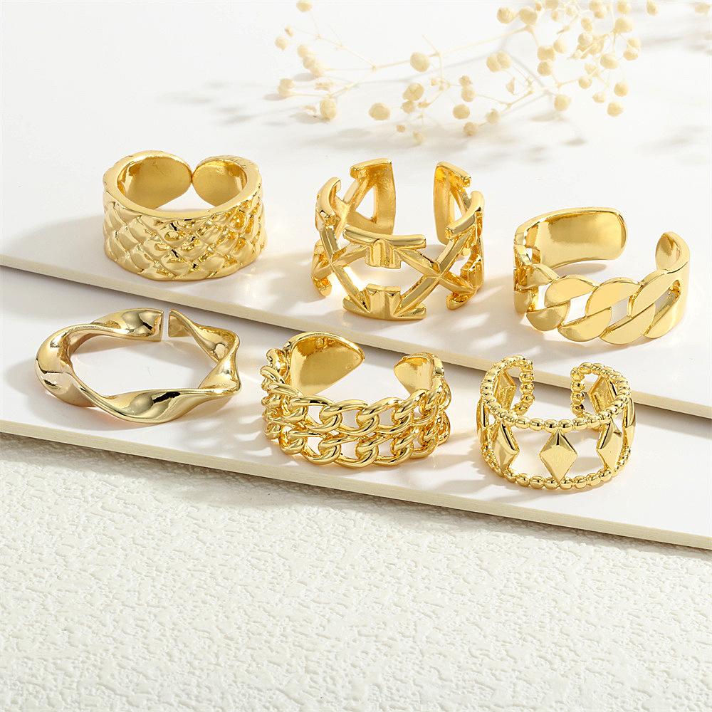 Anillo de Cadena de Oro Chapado en Cobre Línea Simple Geométrico Francés Retro Dedo Índice Mujer Lujo Ligero Sensación de Alta Gama