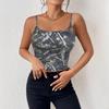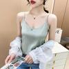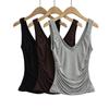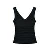Sexys Europeos y Americanos Verano Nuevo Americano Doble Capa Cuello en V Chaleco Plisado Estilo Sexy Ropa Exterior y Top Interior Sin Mangas