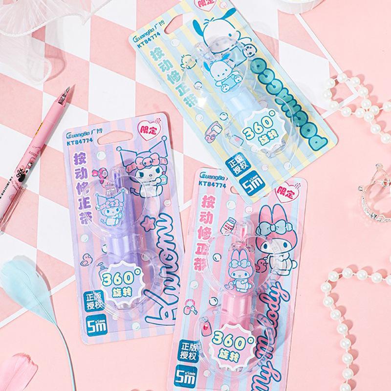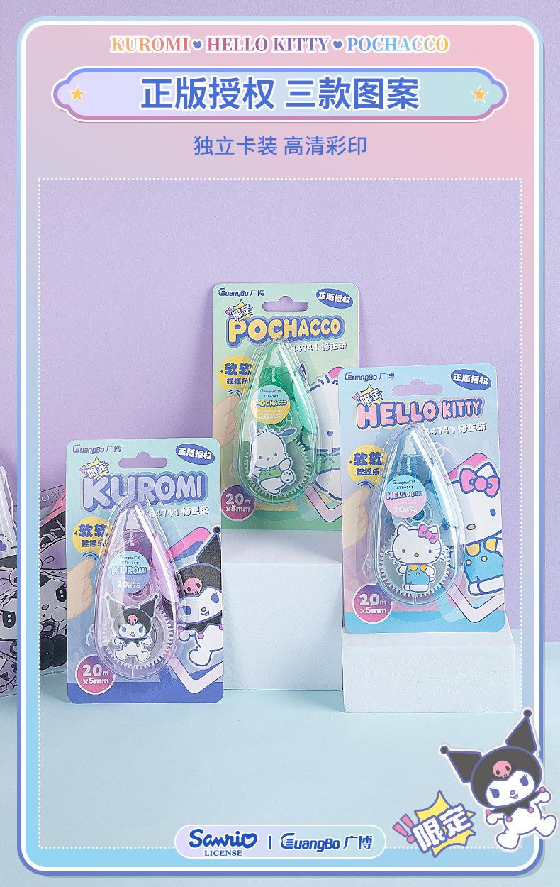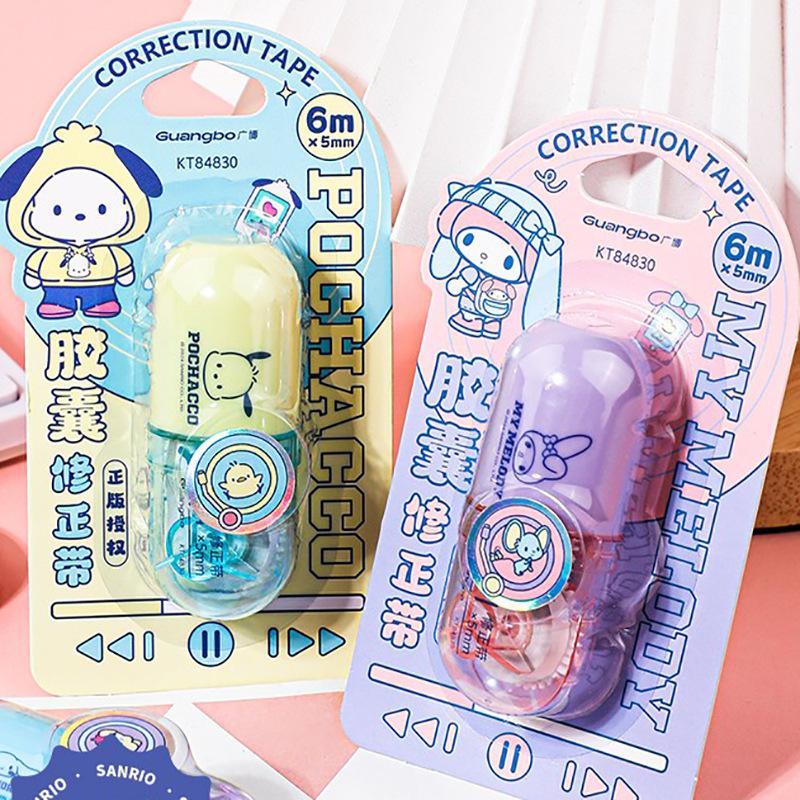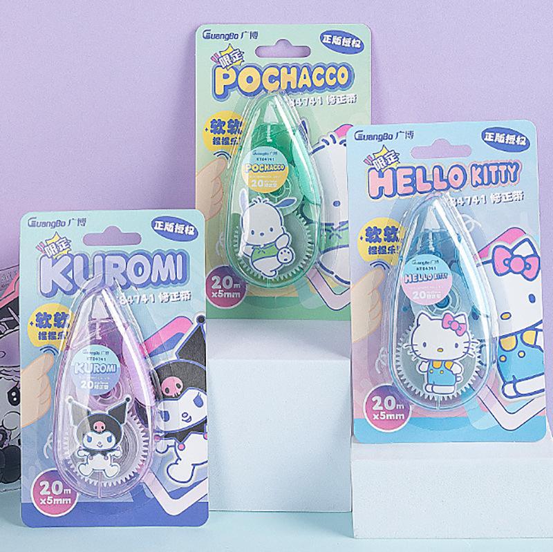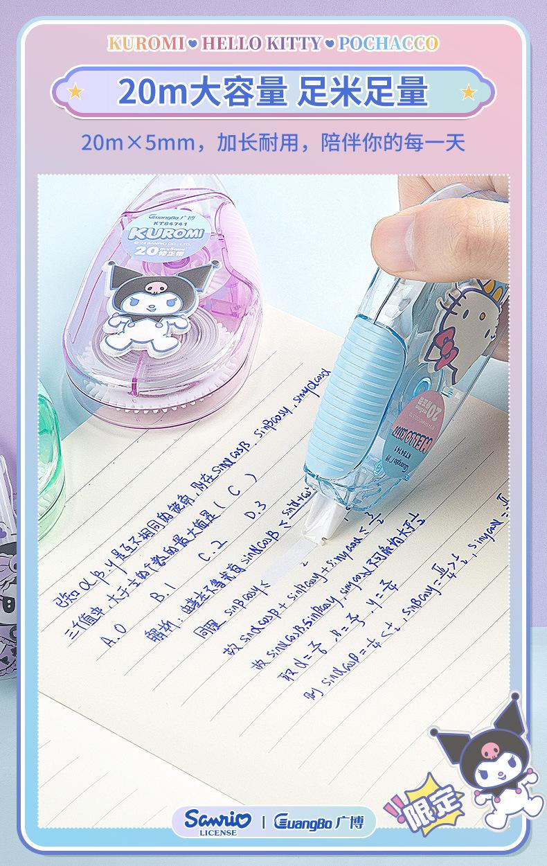 Cinta correctora Guangbo Sanrio de alto valor de color, cinta correctora con dibujos animados, útiles escolares para secundaria.