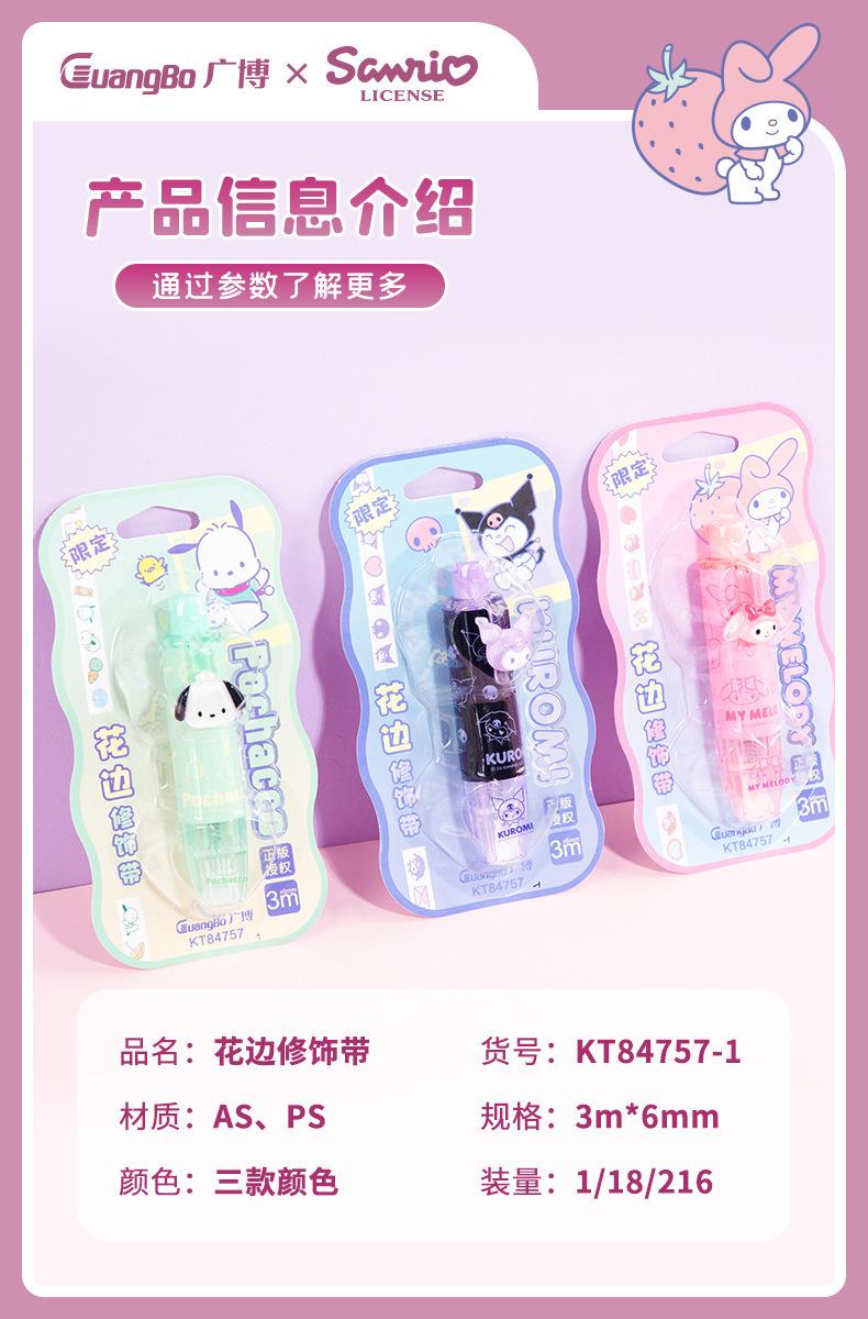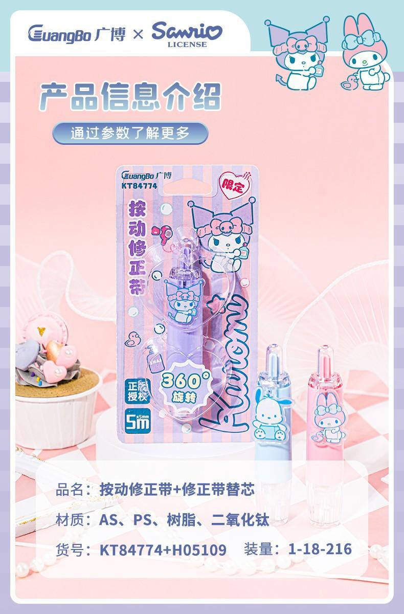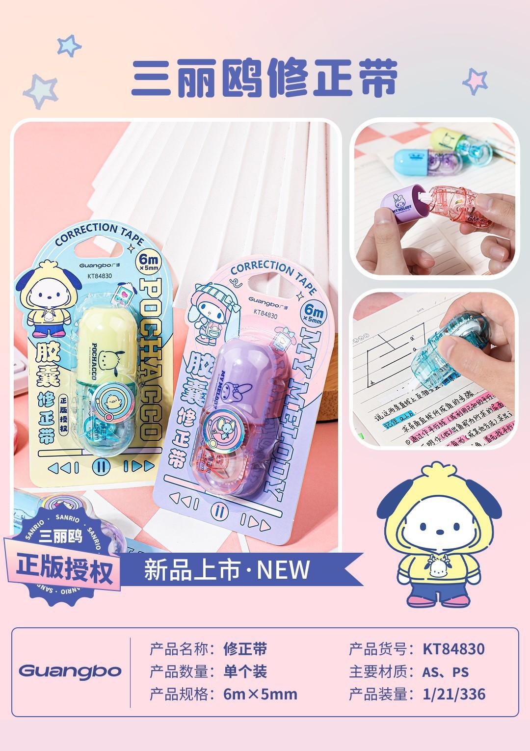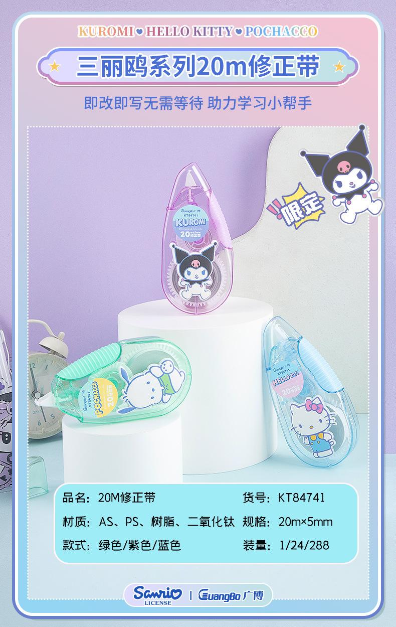 Cinta correctora Guangbo Sanrio de alto valor de color, cinta correctora con dibujos animados, útiles escolares para secundaria.