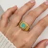 Anillo Turquesa Retro Europeo y Americano Transfronterizo, Anillo de Lujo Ligero, Sensación de Alta Gama, Anillo Abierto de Lujo Ligero de Nicho para Mujer, Nuevo Estilo