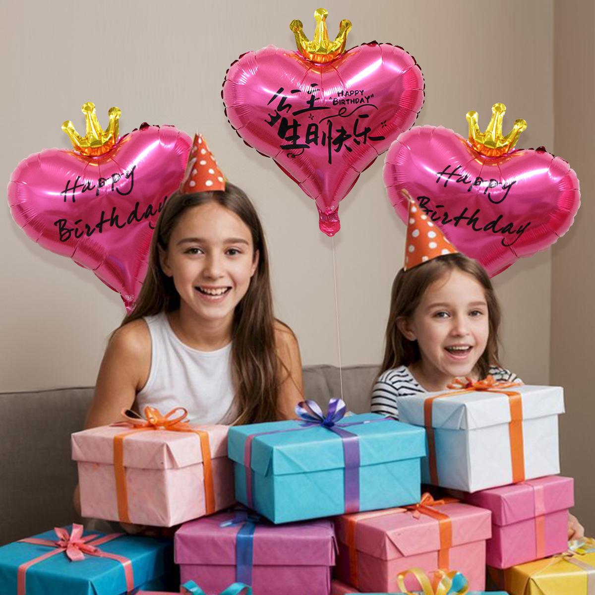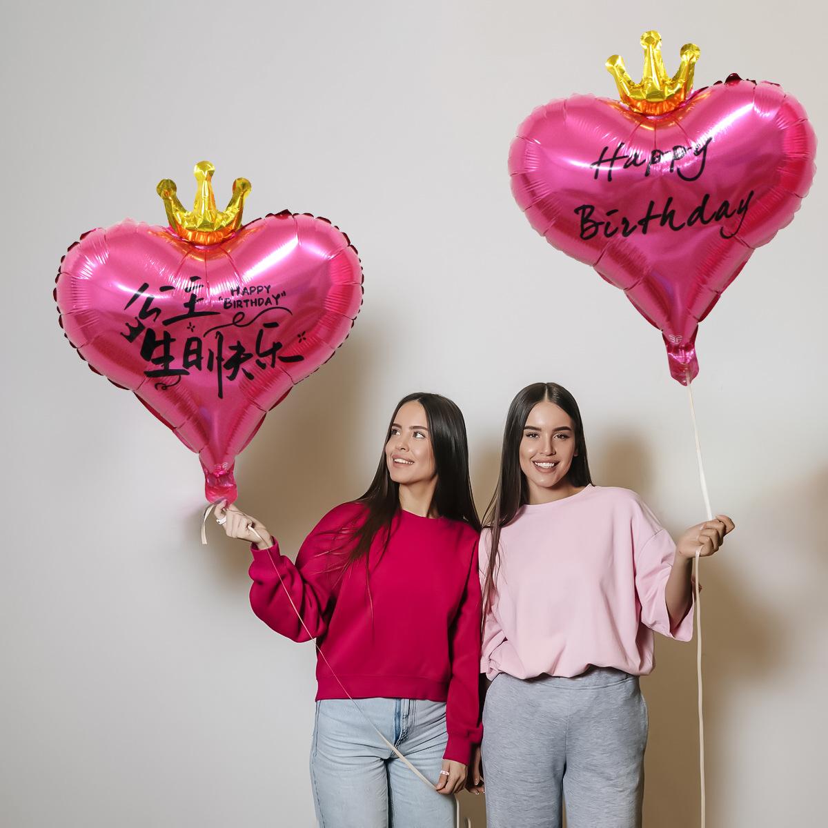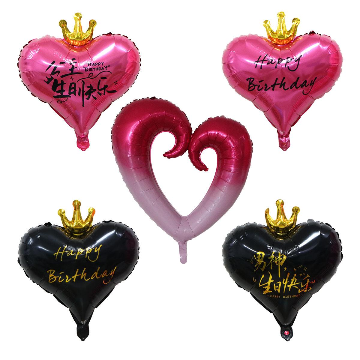 Globo de aluminio con forma de corazón con gancho degradado para San Valentín, globo de aluminio con forma de corazón y corona, globo de aluminio con forma de princesa de feliz cumpleaños.