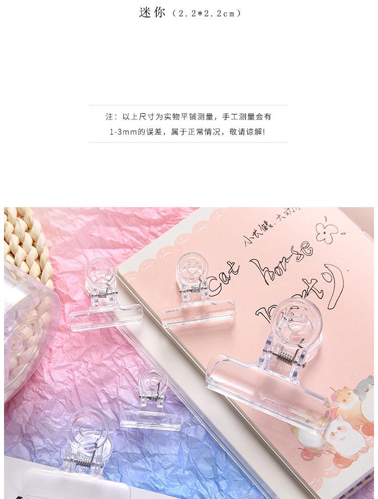 Carpeta transparente multifuncional creativa, tamaño pequeño, clip de cola larga, clip para billetes, clip para papel de prueba para estudiantes, clip para sellar bocadillos para el hogar.