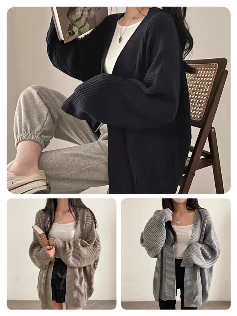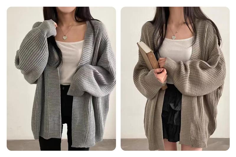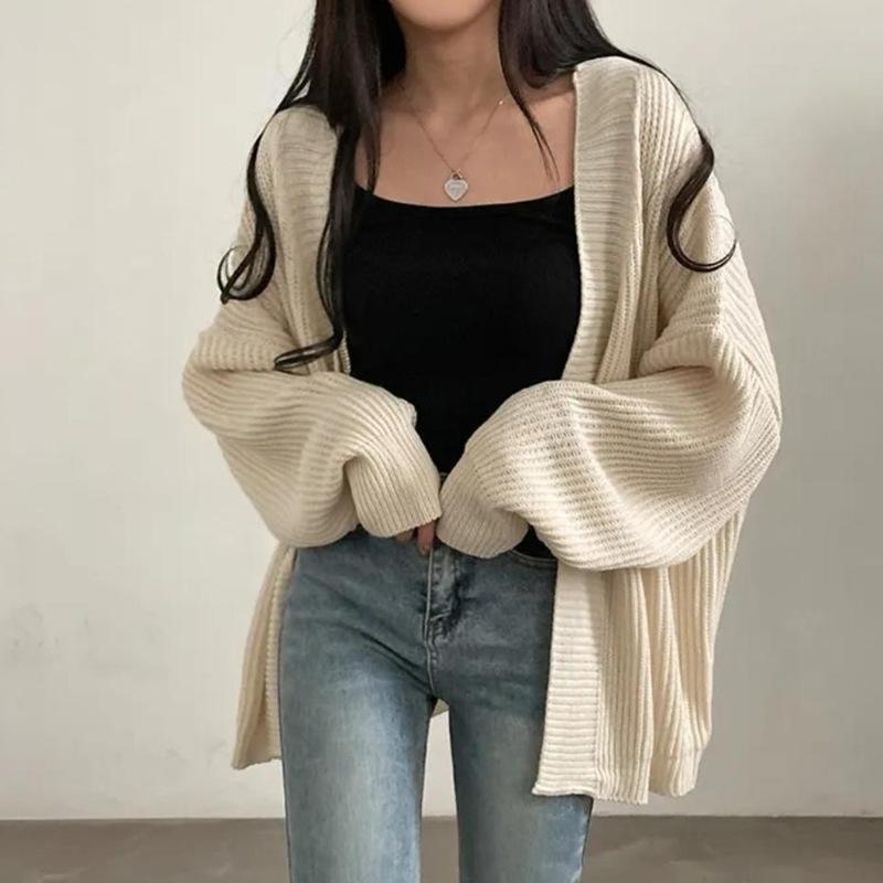 Chaqueta de punto para mujer, suéter informal, versátil, de longitud media, color puro, estilo coreano, otoño e invierno 2024