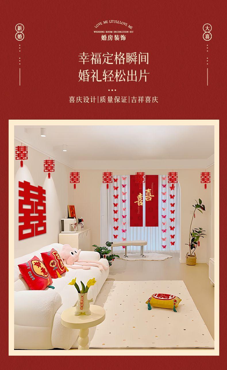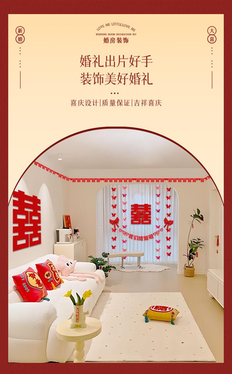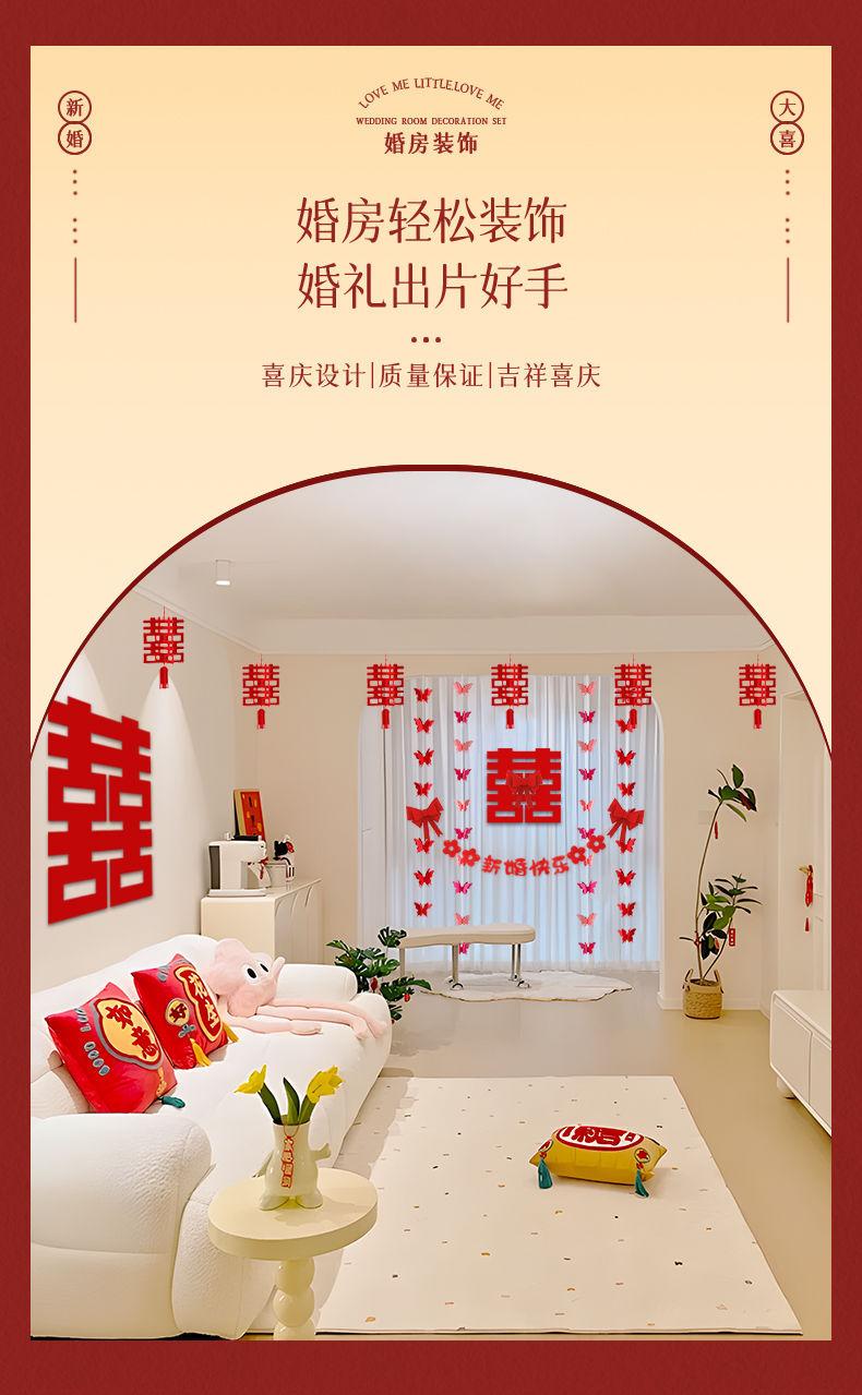 Decoración de sala de estar, diseño de sala de bodas, adecuado para hombres y mujeres, nueva casa, dormitorio principal, boda, palabra feliz, techo de flores, cortina feliz