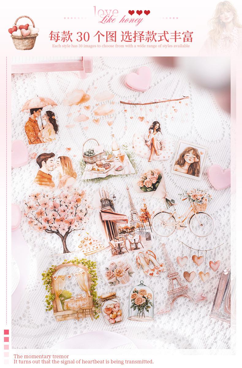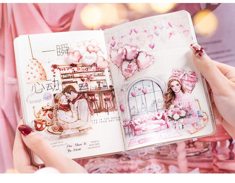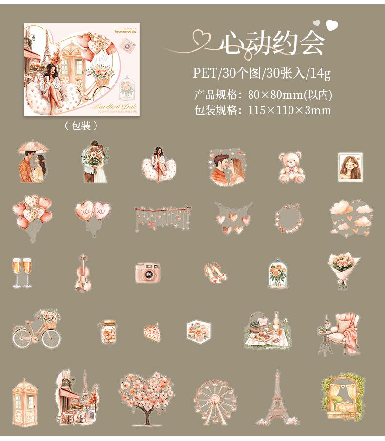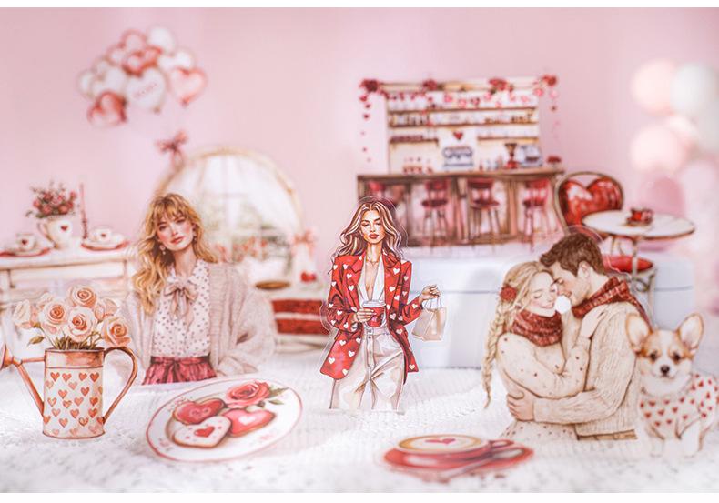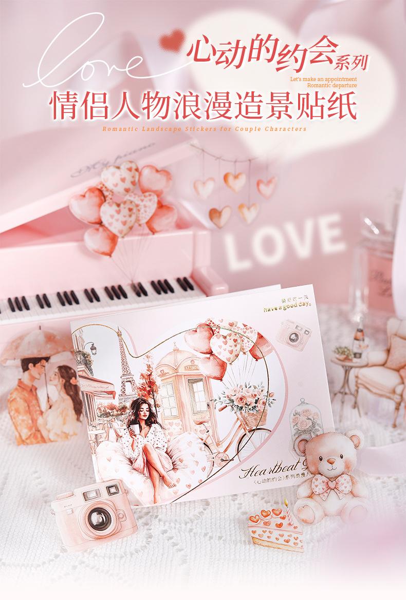Hermoso Día Personajes de Pareja Pegatinas de Paisaje Romántico Serie Citas Corazón Material para Cuenta de Mano Decoración Collage