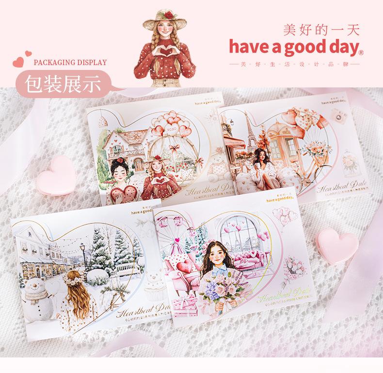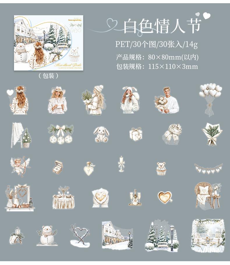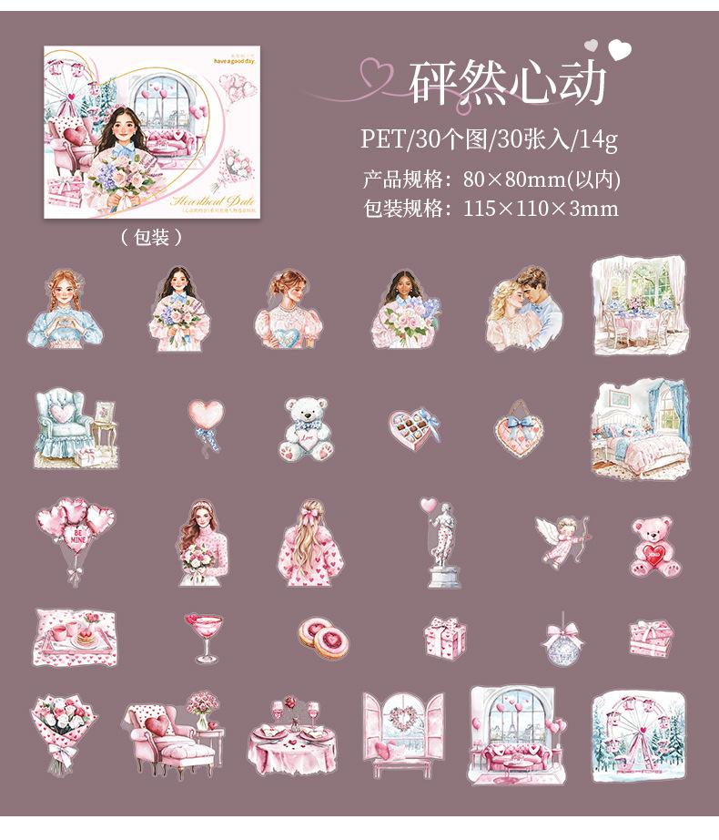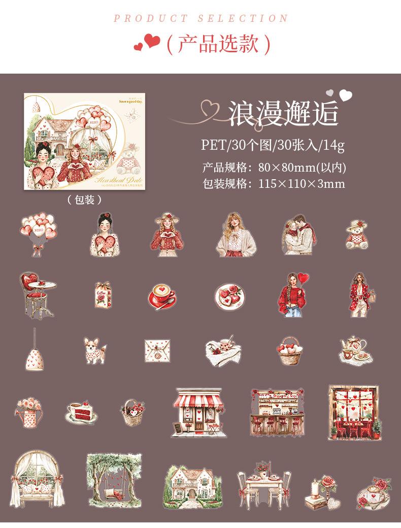 Hermoso Día Personajes de Pareja Pegatinas de Paisaje Romántico Serie Citas Corazón Material para Cuenta de Mano Decoración Collage