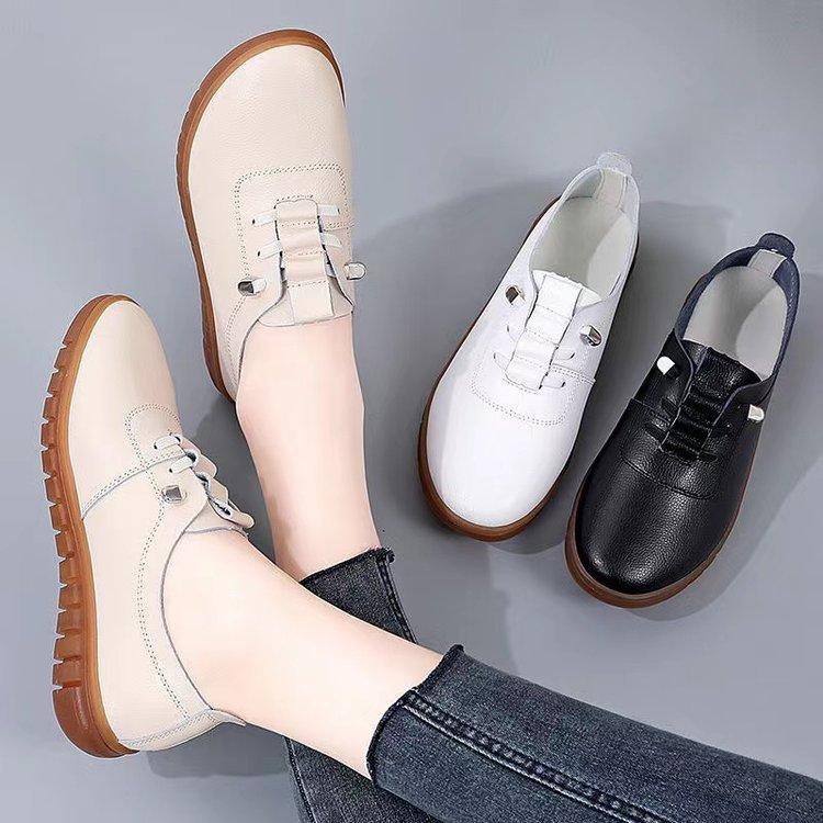 Zapatos Doug Zapatos de Madre de Suela Suave para Mujer 2025 Primavera Nuevo Estilo Un Pedal Suela de Res Cabeza Redonda Plano Boca Baja Zapatos Individuales para Mujer