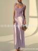 2025 Nuevo Vestido Sexy de Tirantes Ajustado de Malla Satén Europeo y Americano Falda Larga Vestido de Socialité