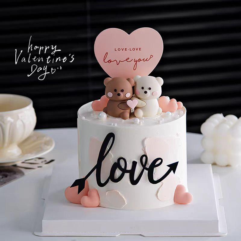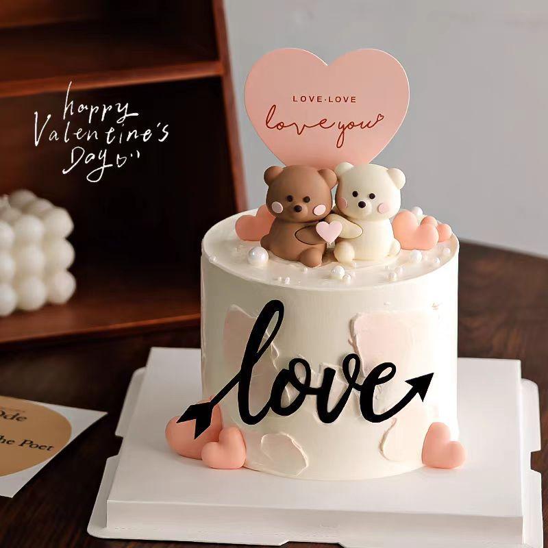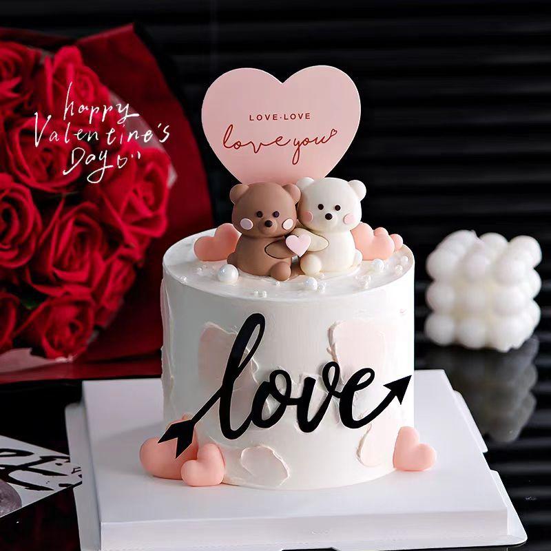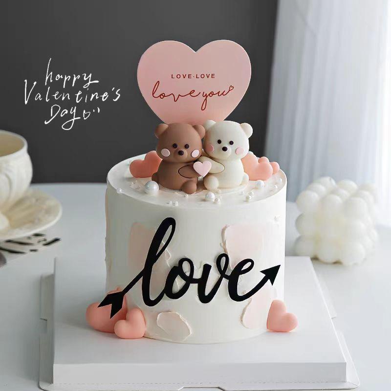 2.14 Decoración de pastel de San Valentín Decoración de oso de abrazo Tarjeta de amor acrílica Tarjeta de confesión enchufable
