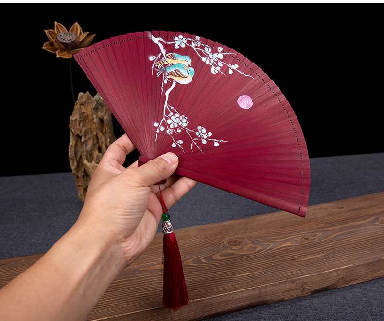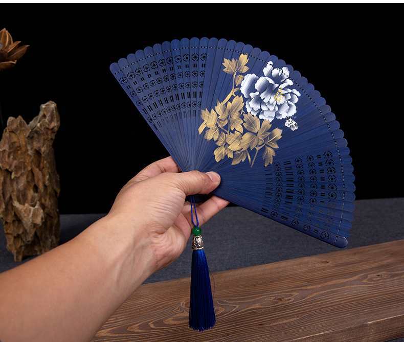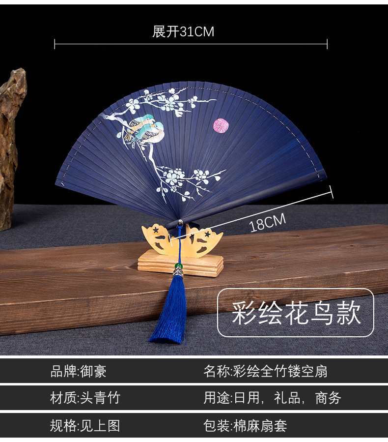 Abanico plegable de bambú hueco tallado a mano para mujer, venta al por mayor, estilo retro diario, artesanía antigua, abanico de bambú completo