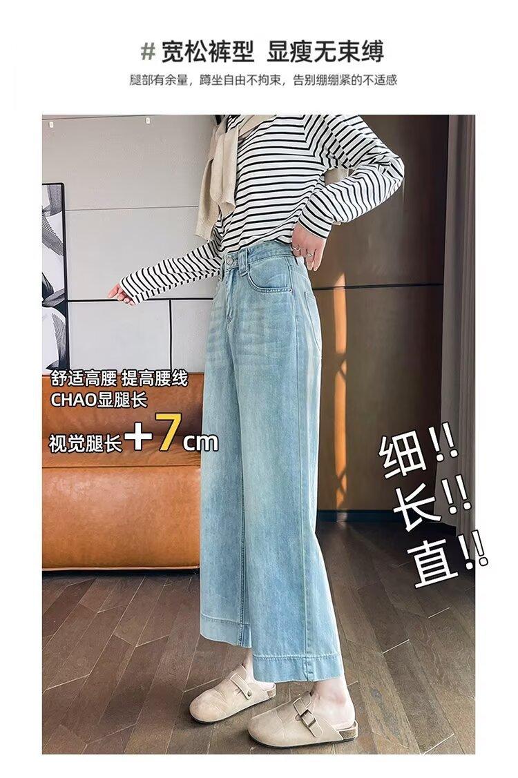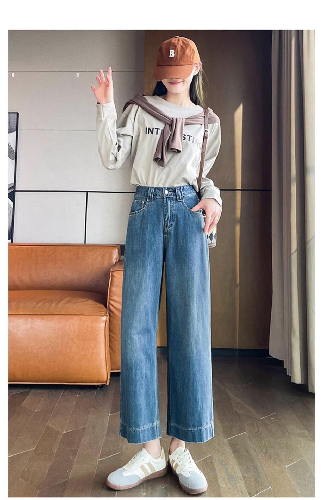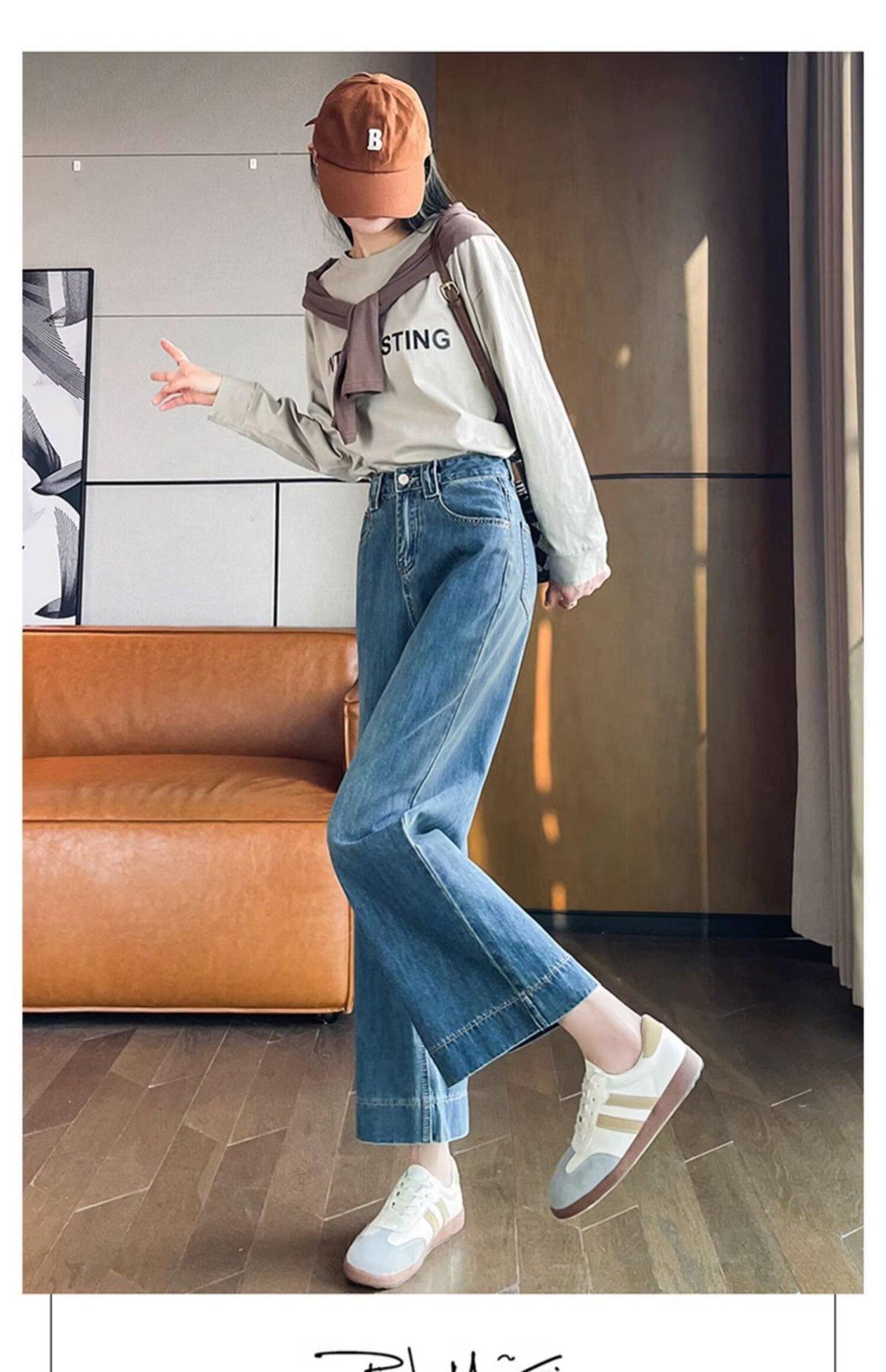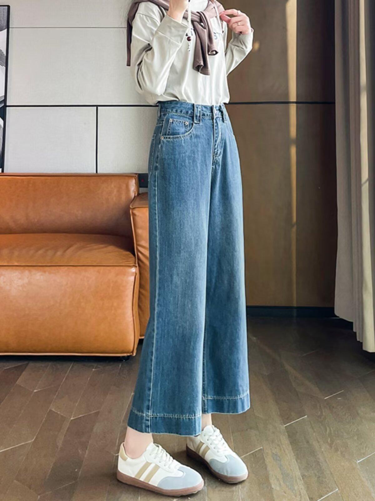 Pantalones vaqueros de pierna ancha para mujer, primavera y otoño, nuevos, de cintura alta, holgados, adelgazantes, cortos, rectos, de nueve puntos, con forma de pera