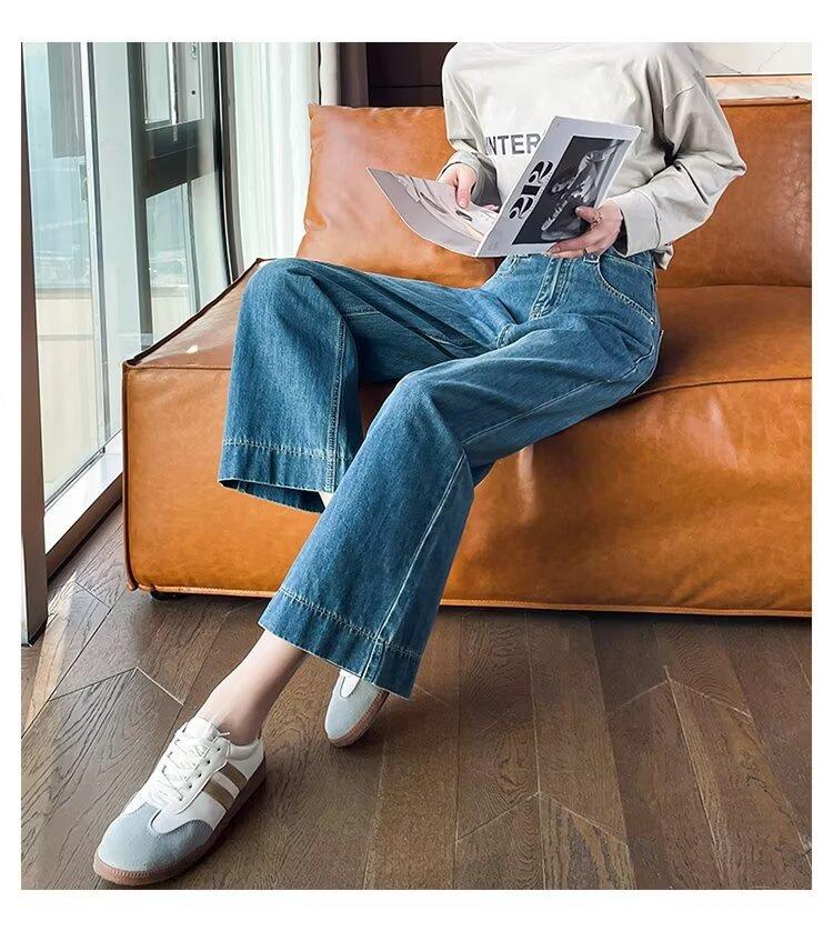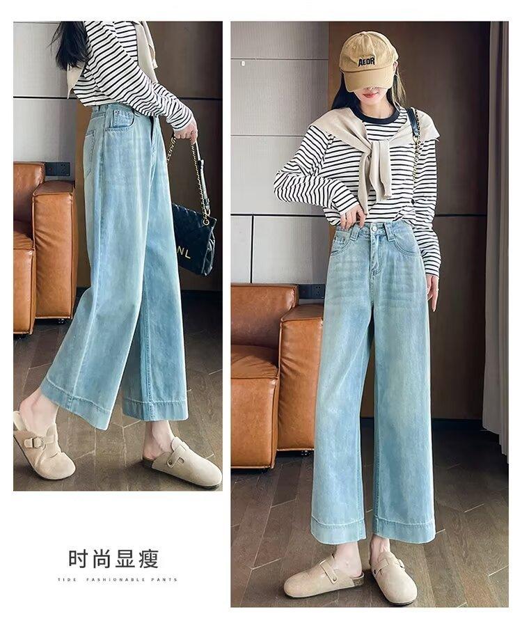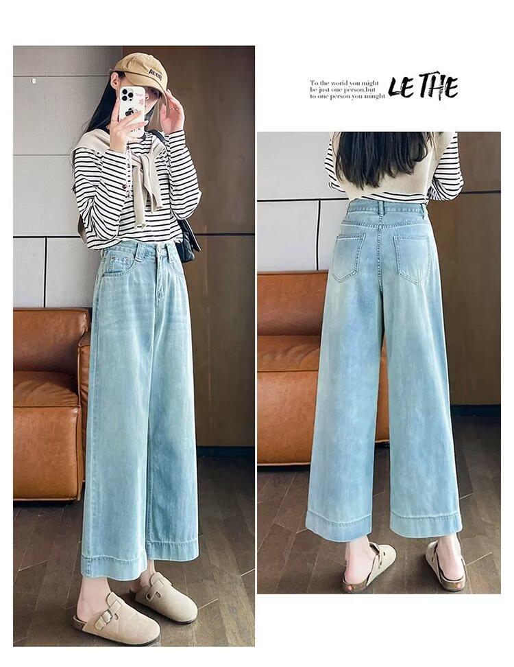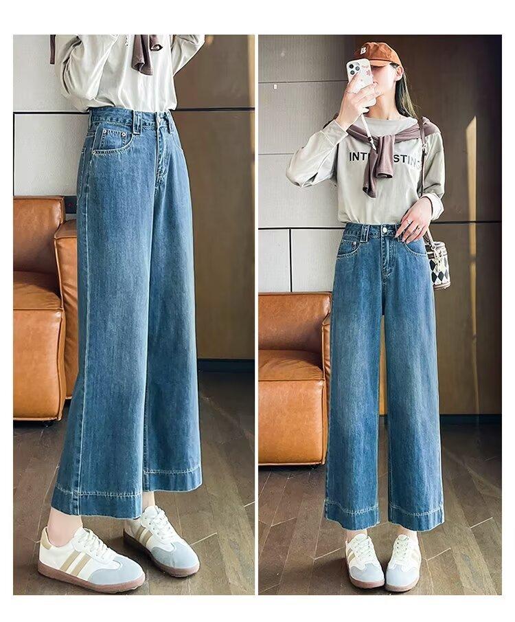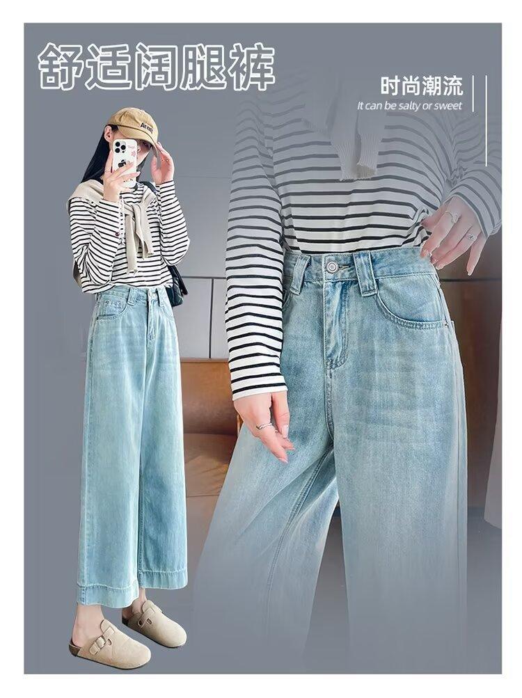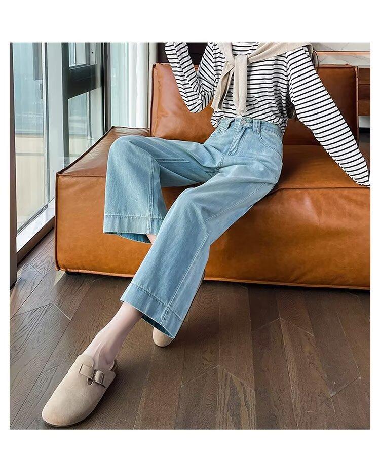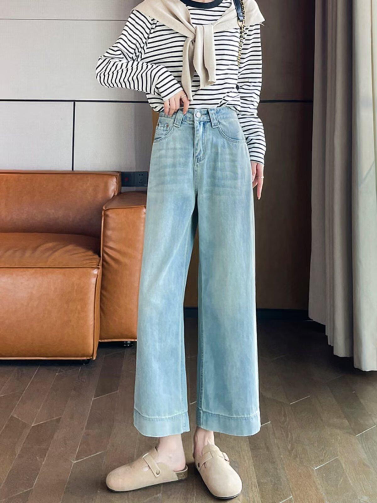 Pantalones vaqueros de pierna ancha para mujer, primavera y otoño, nuevos, de cintura alta, holgados, adelgazantes, cortos, rectos, de nueve puntos, con forma de pera
