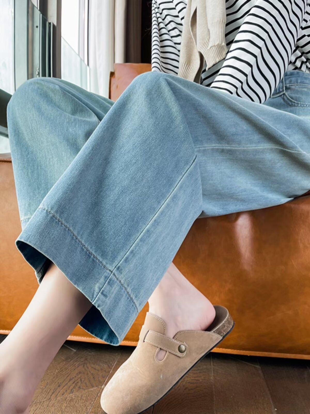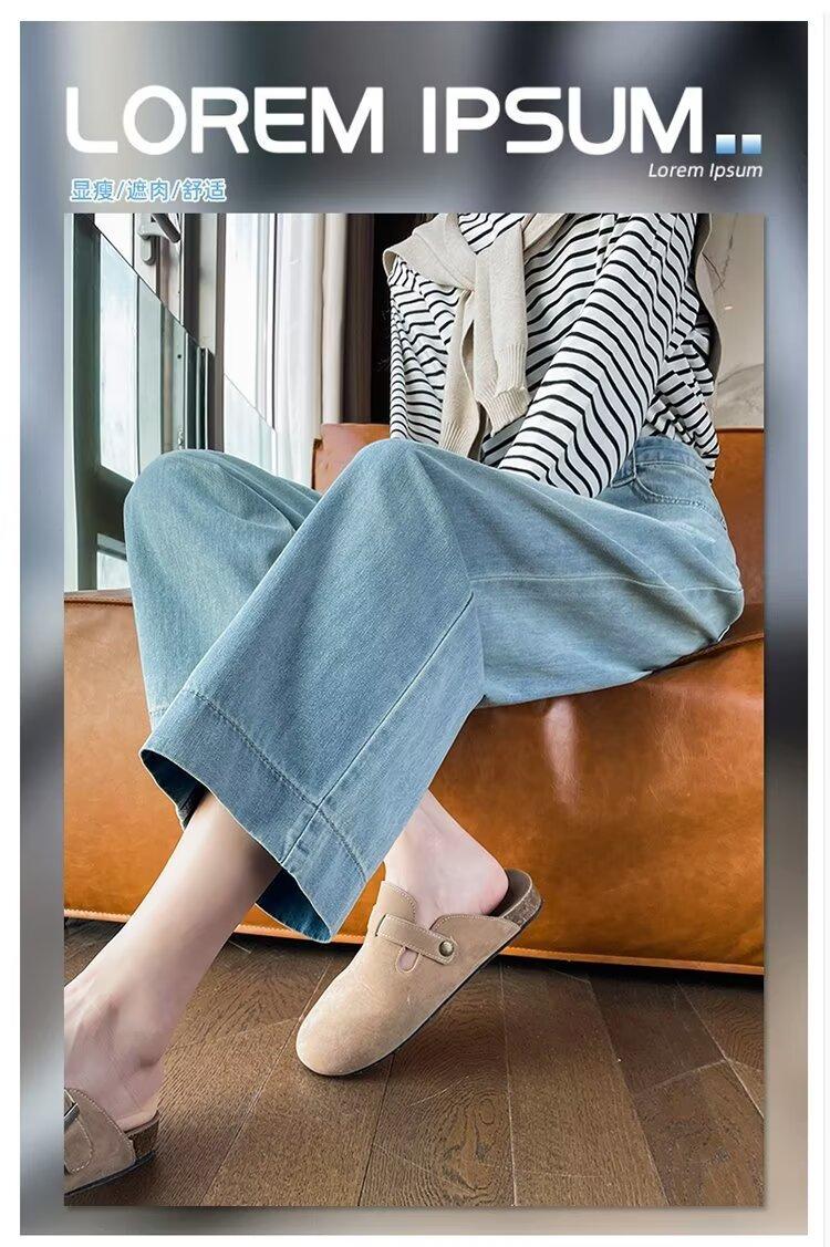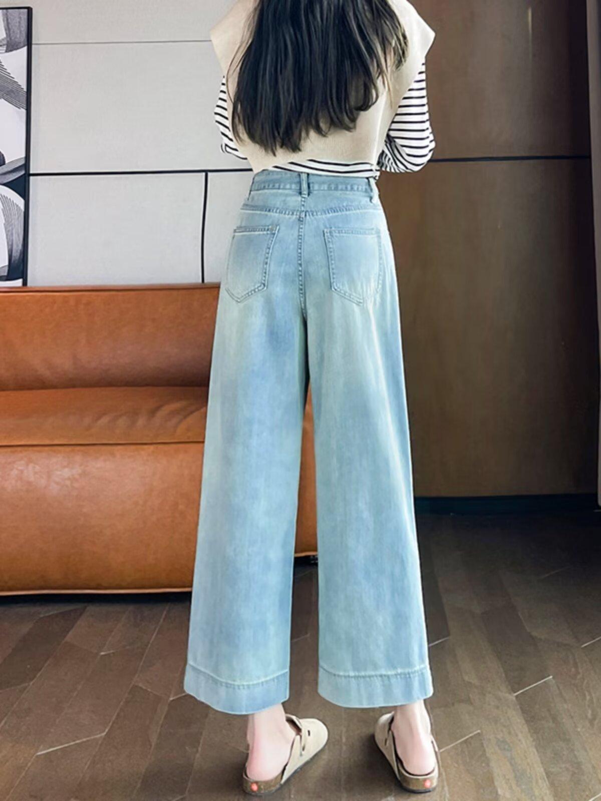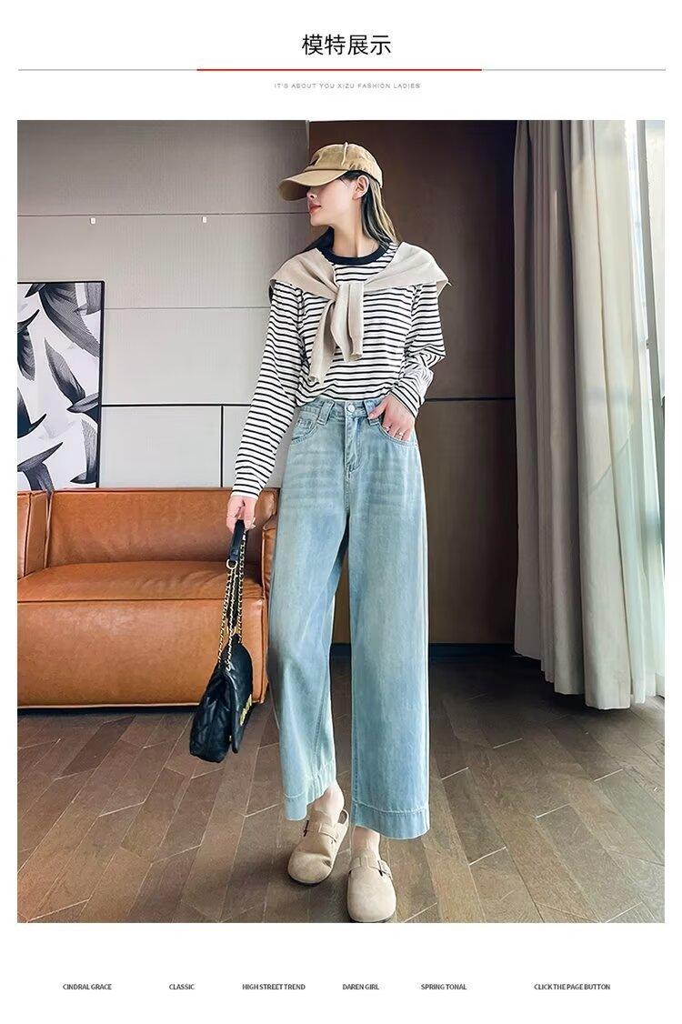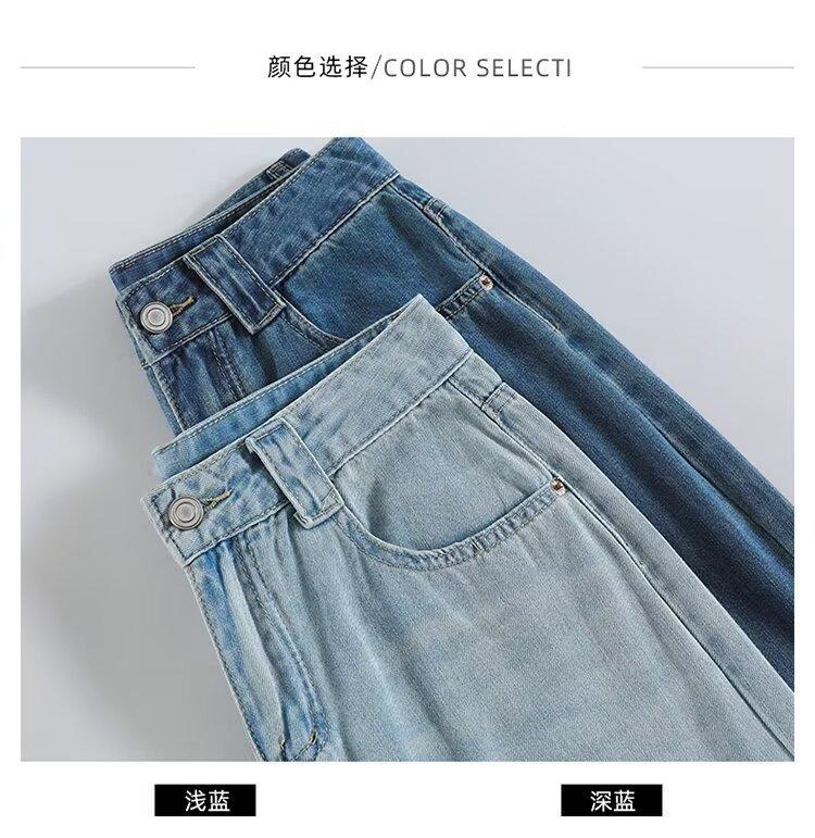 Pantalones vaqueros de pierna ancha para mujer, primavera y otoño, nuevos, de cintura alta, holgados, adelgazantes, cortos, rectos, de nueve puntos, con forma de pera