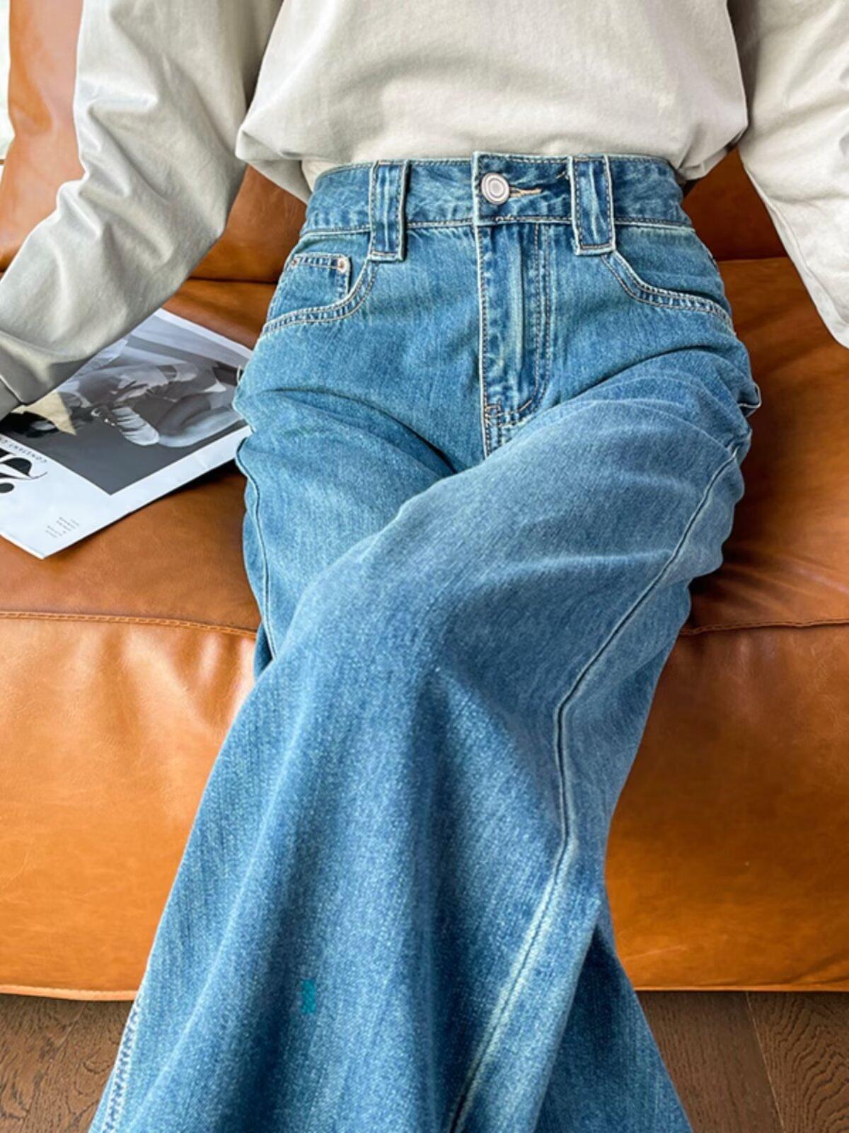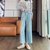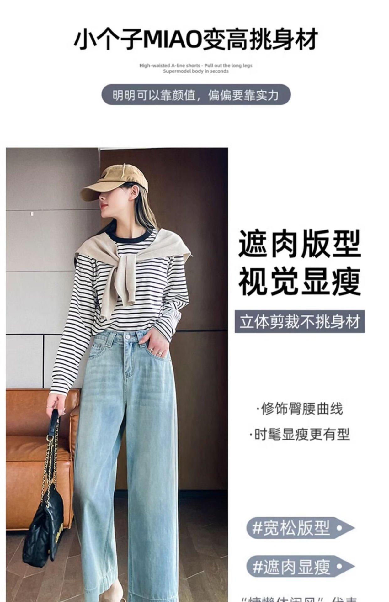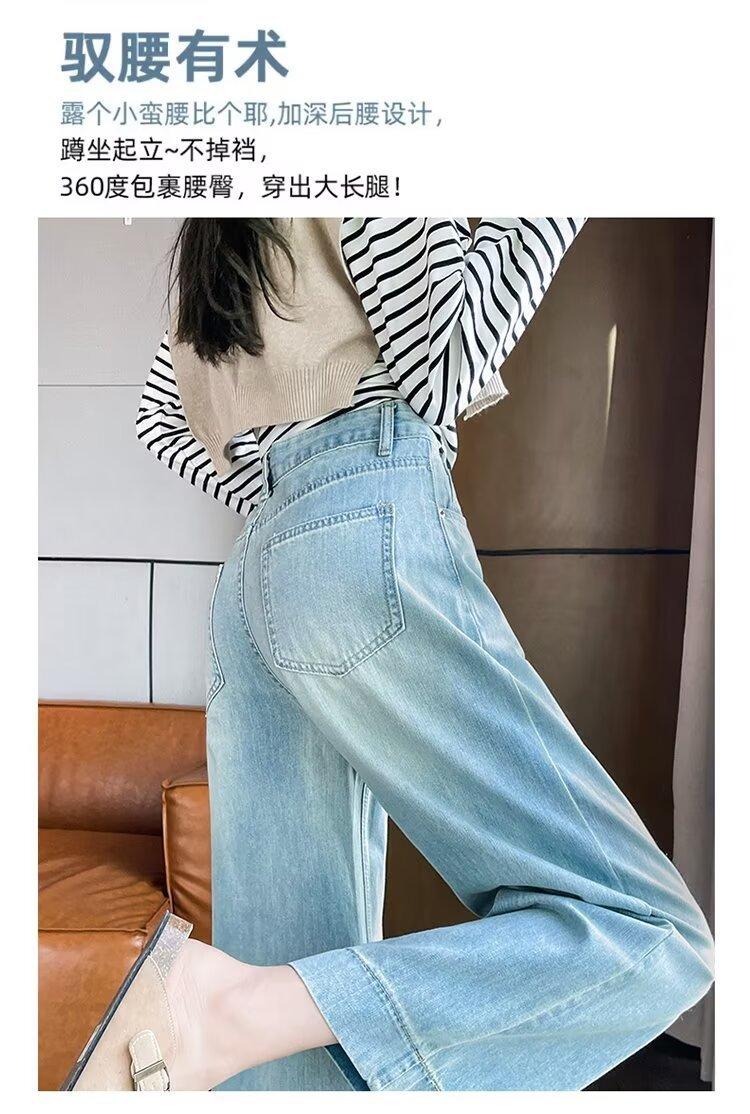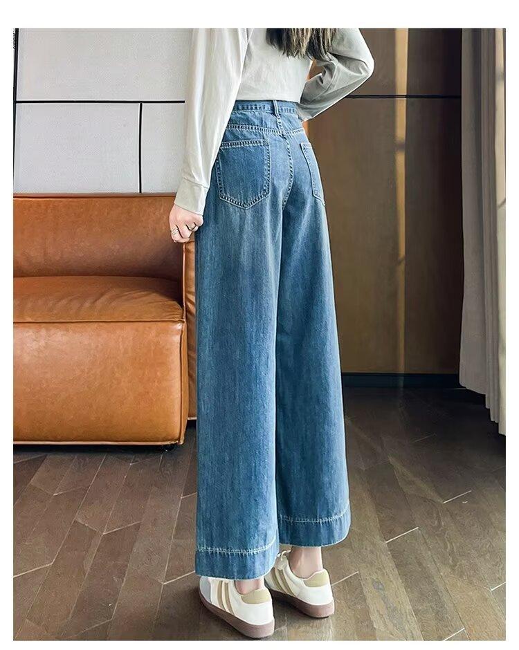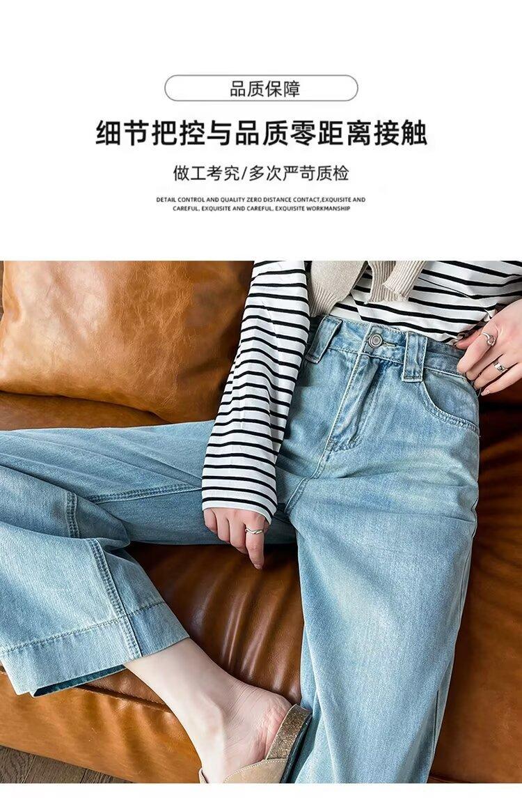 Pantalones vaqueros de pierna ancha para mujer, primavera y otoño, nuevos, de cintura alta, holgados, adelgazantes, cortos, rectos, de nueve puntos, con forma de pera