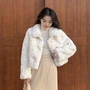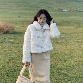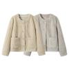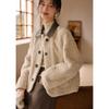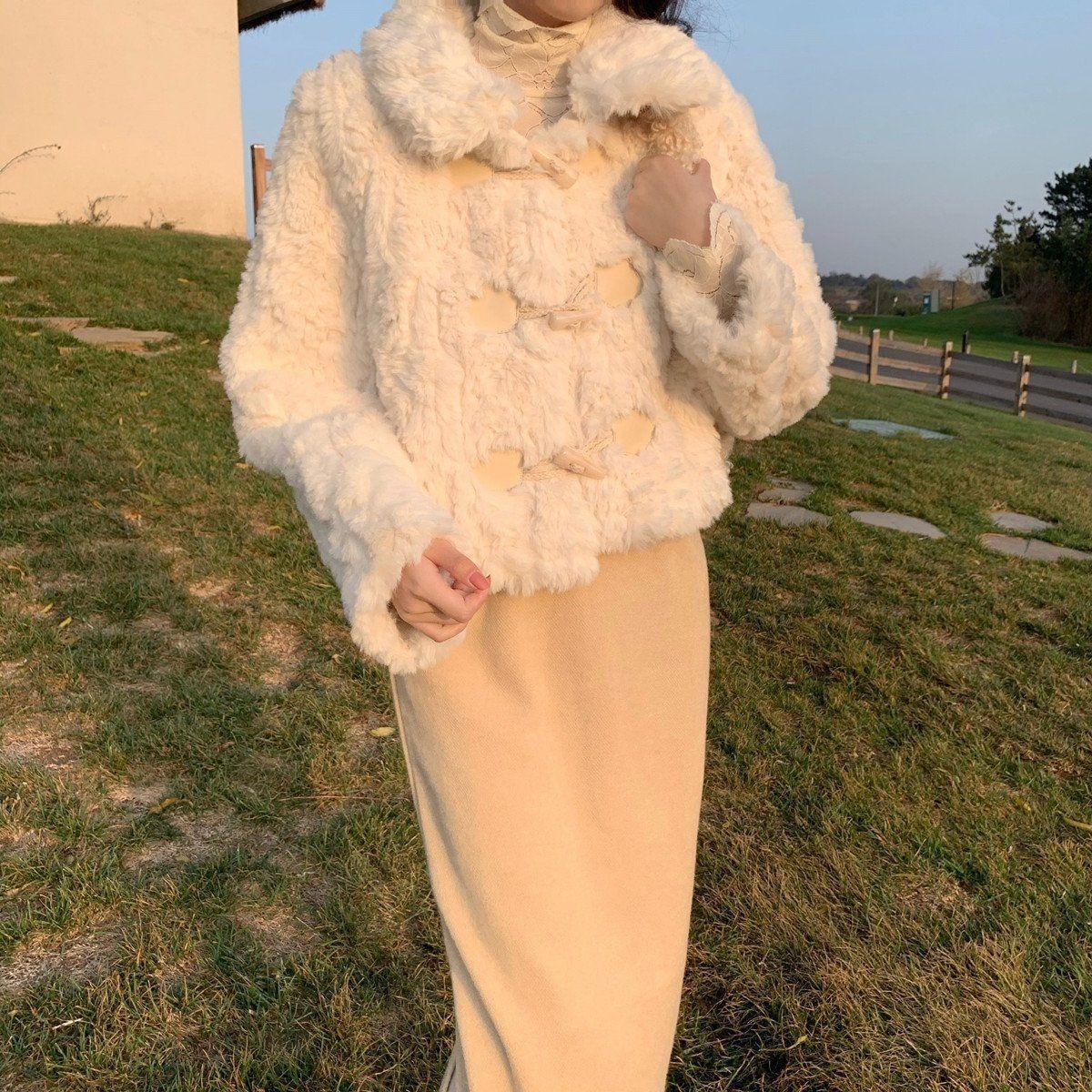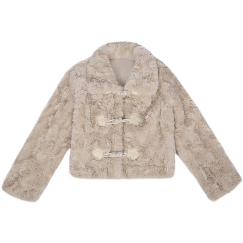 Abrigo de piel de cordero con pelo integrado para otoño e invierno 2023, abrigo corto de piel de conejo de imitación con hebilla de cuerno pequeño para mujer