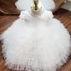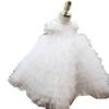 Vestido de niña de las flores para boda, vestido de princesa, vestido de novia blanco, vestido pontón, vestido de cumpleaños de un año, vestido con borde cruzado.