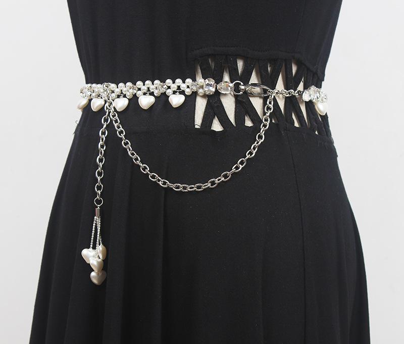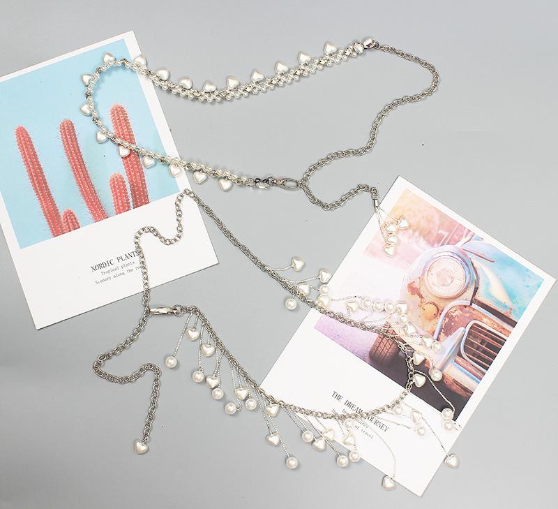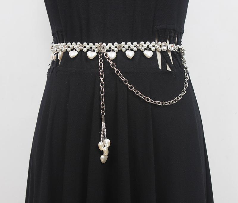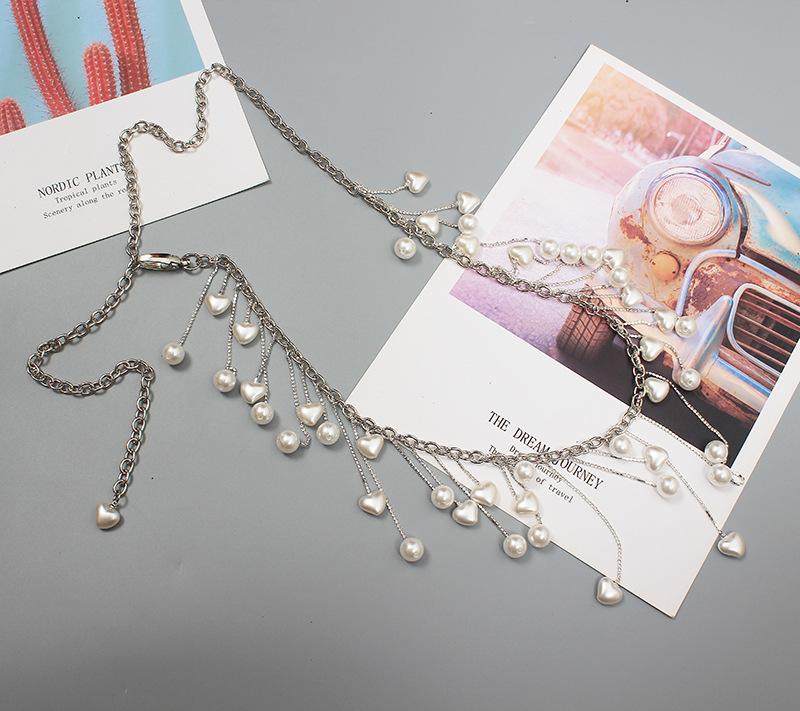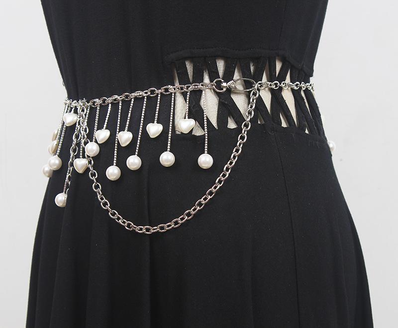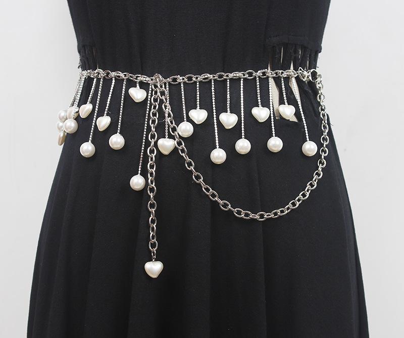 Cinturón de perlas Cadena de cintura delgada con borlas para mujer Decoración con falda Estilo cool ins Danza del vientre sexy Cadena corporal网红