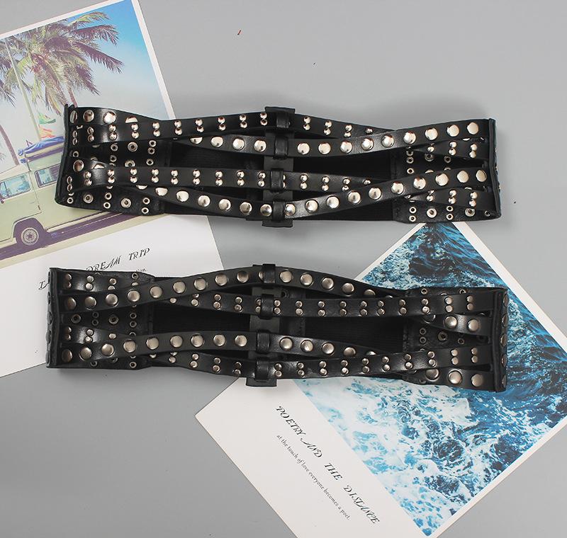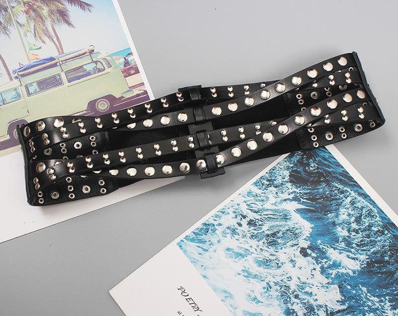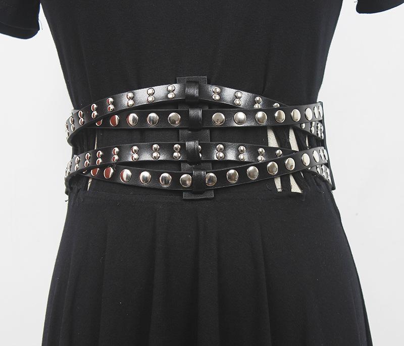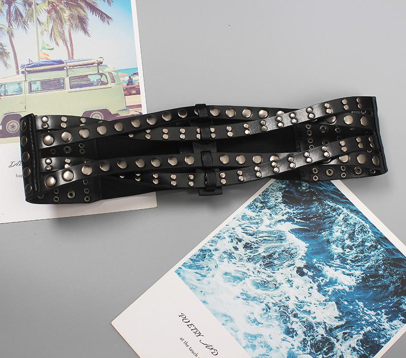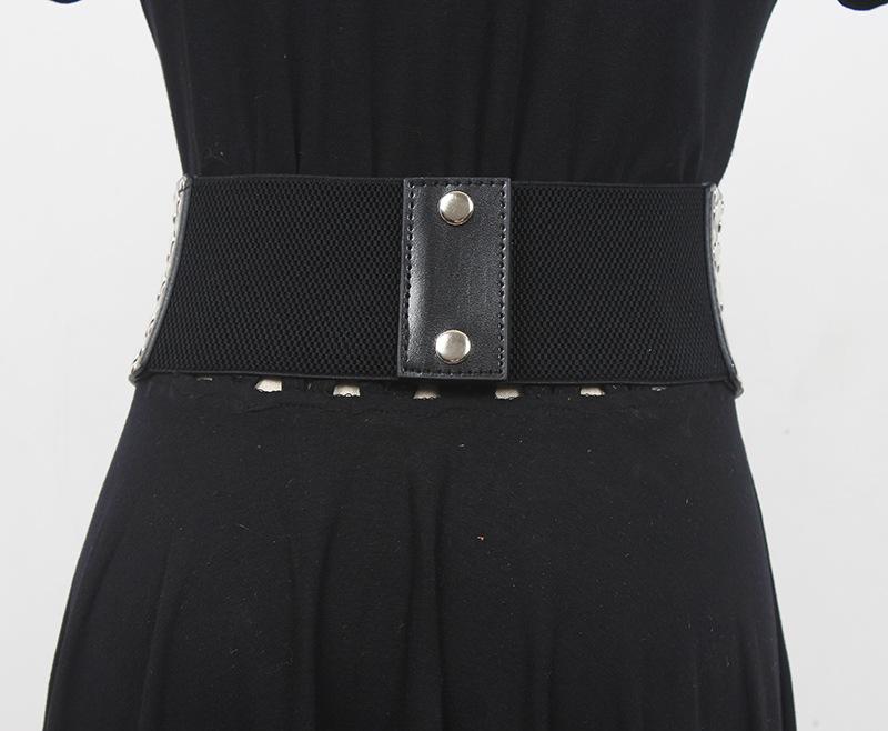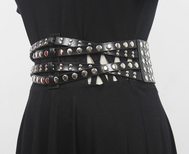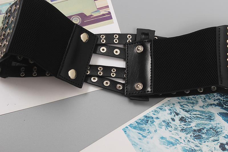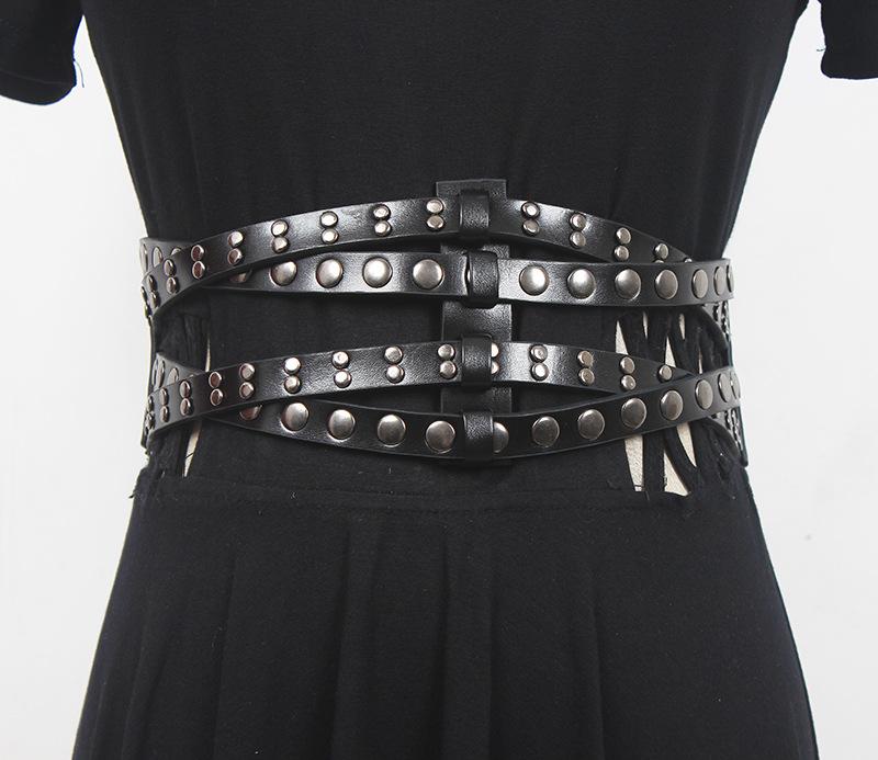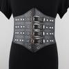 Cinturón ancho elástico combinable estilo punk retro oscuro europeo y americano, falda a juego para mujer, cinturón decorativo con sello de cintura de cuero hueco
