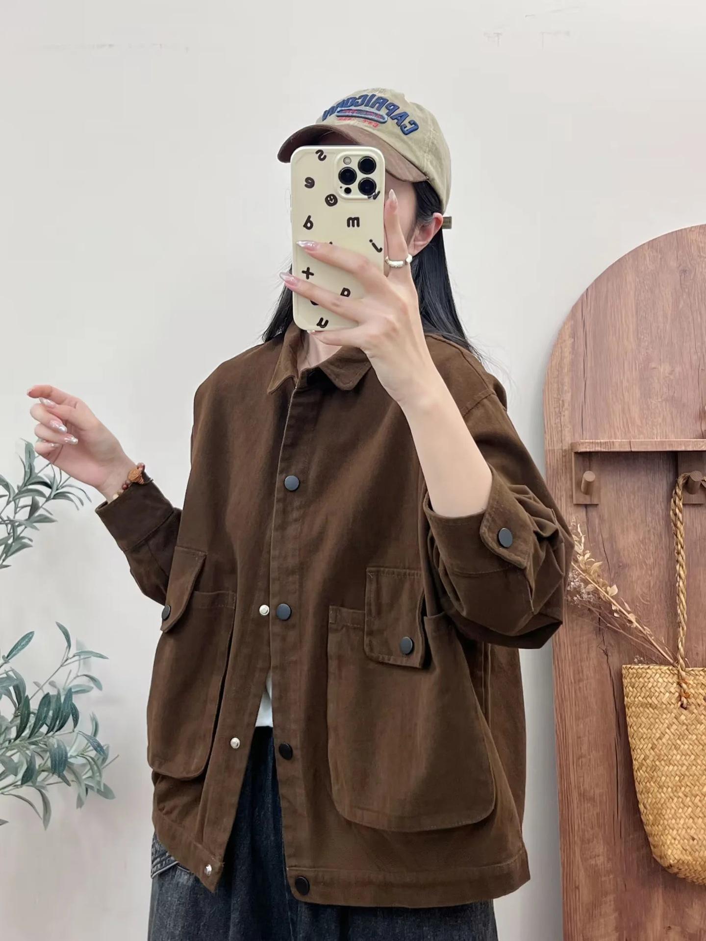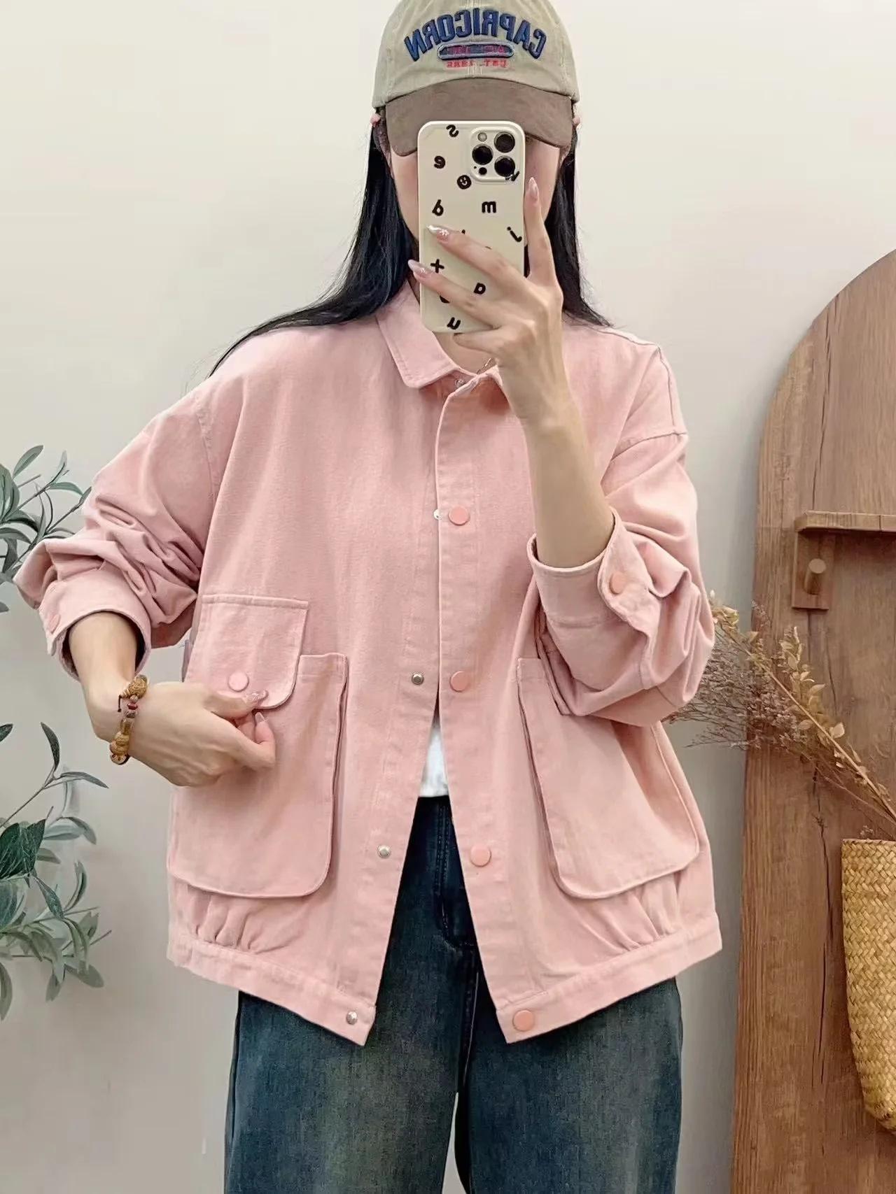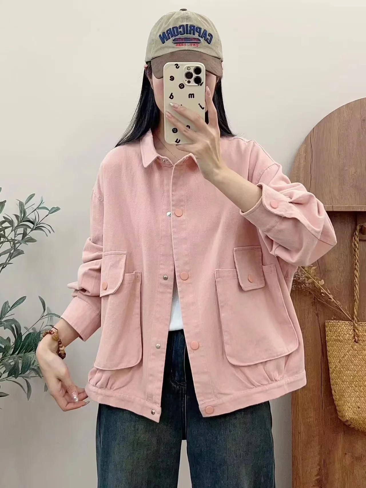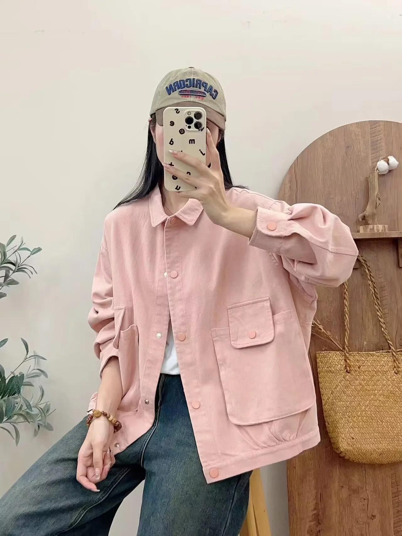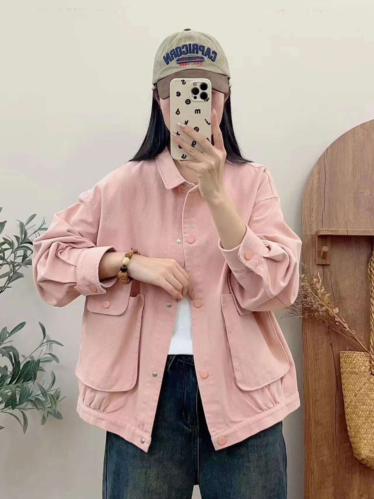Primavera 2024 nueva chaqueta de color sólido de un solo pecho para mujer, estilo perezoso, cárdigan suelto de alta calidad, top de mujer