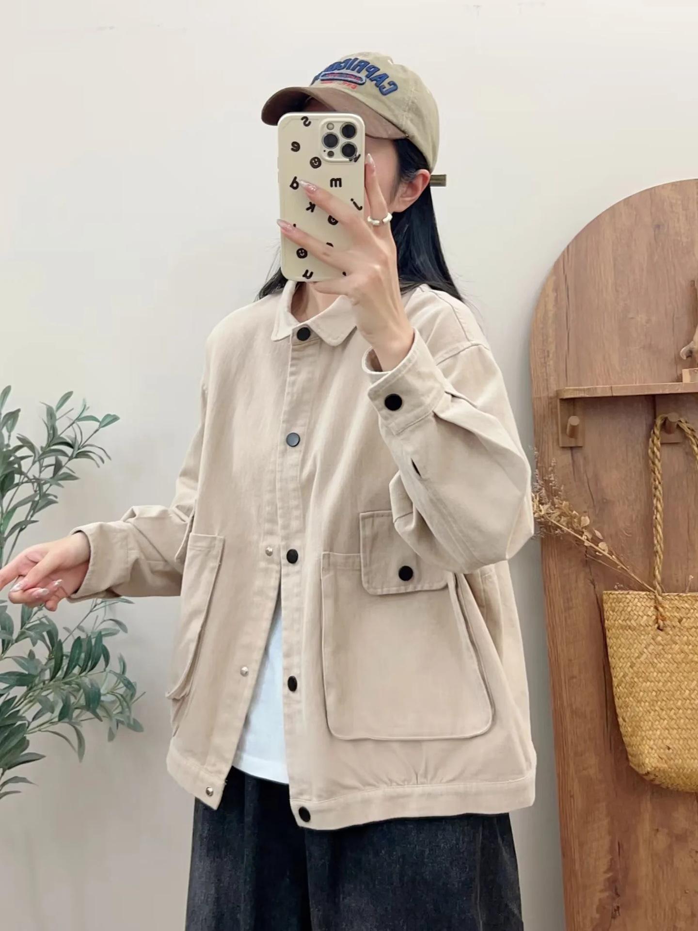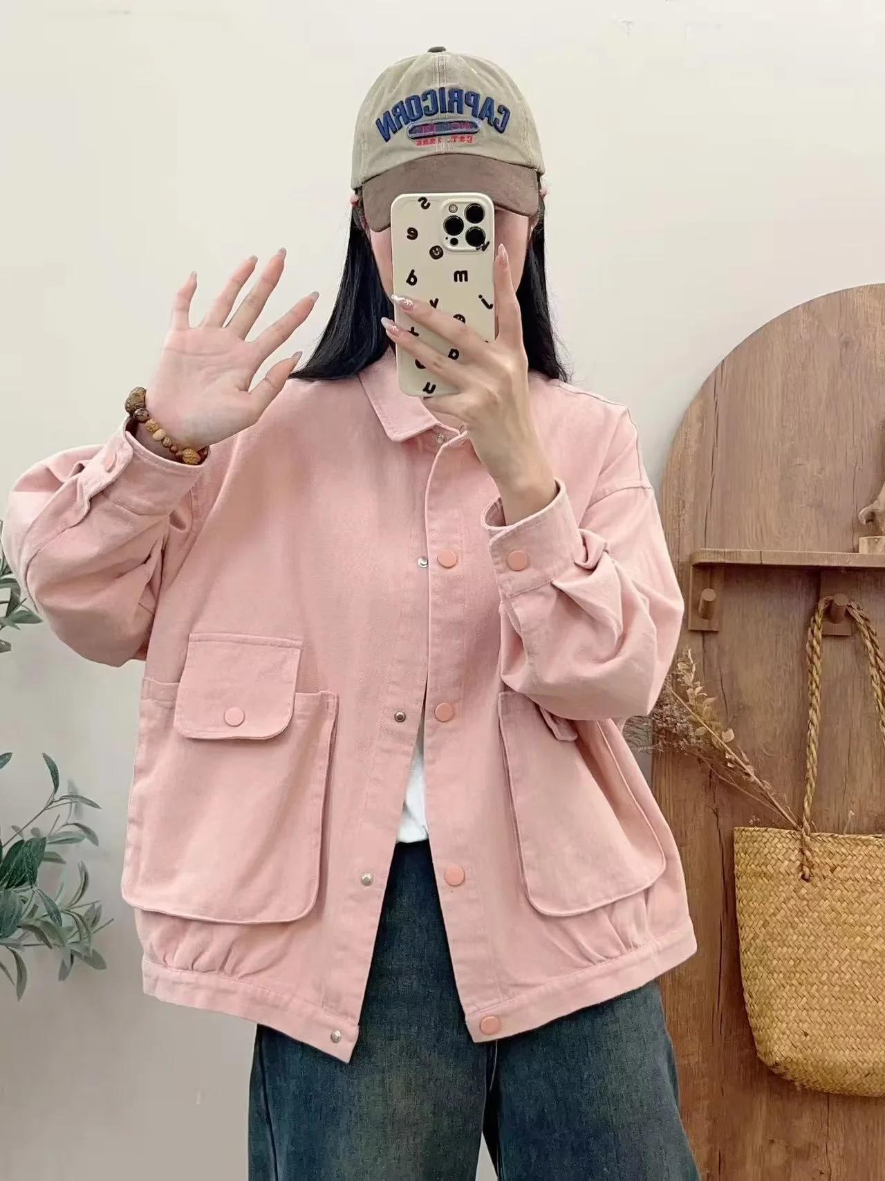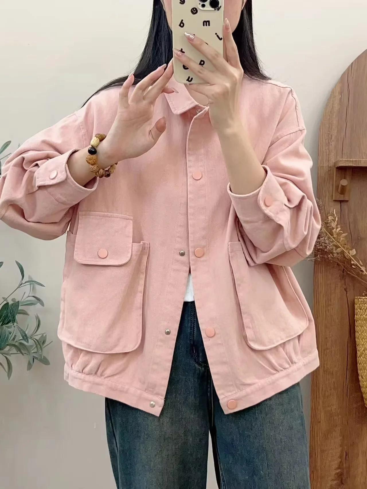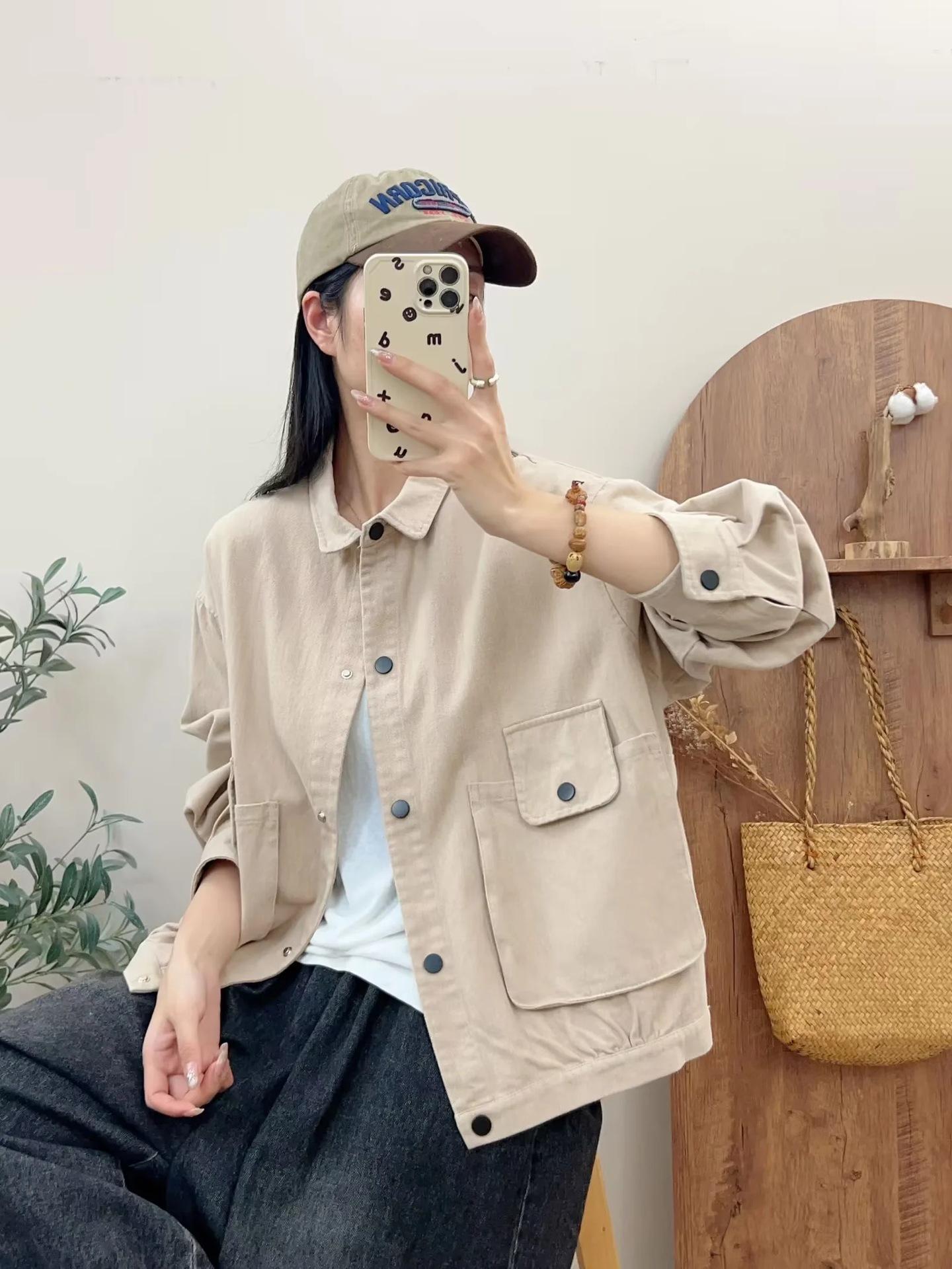 Primavera 2024 nueva chaqueta de color sólido de un solo pecho para mujer, estilo perezoso, cárdigan suelto de alta calidad, top de mujer