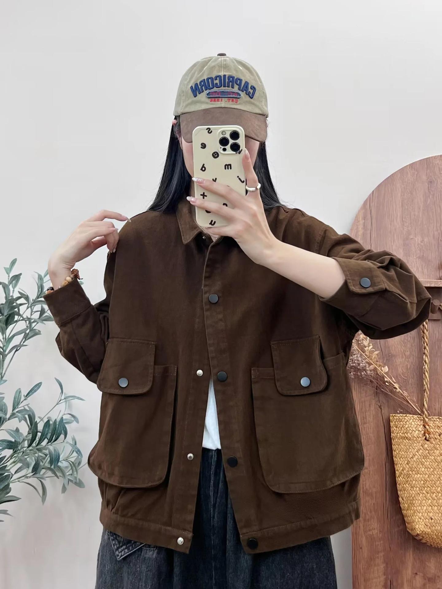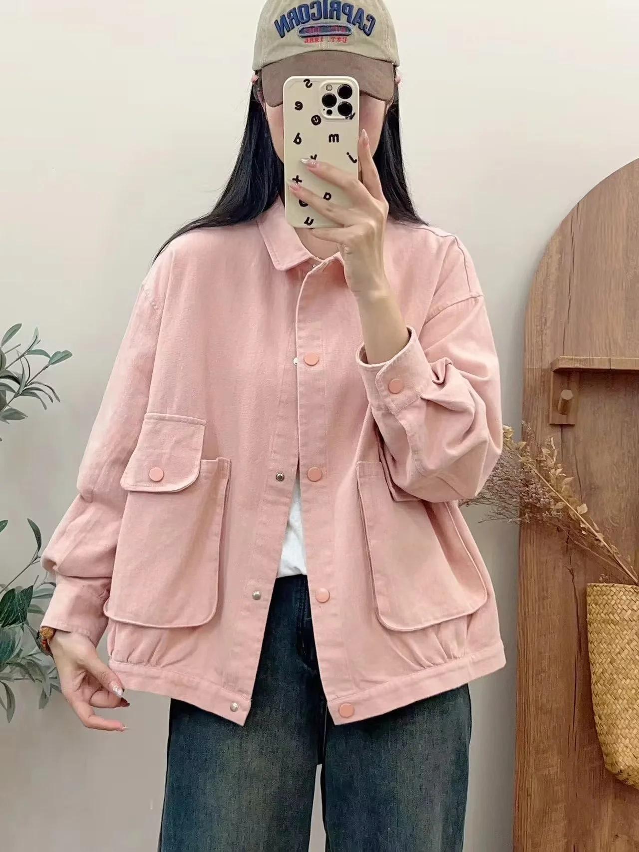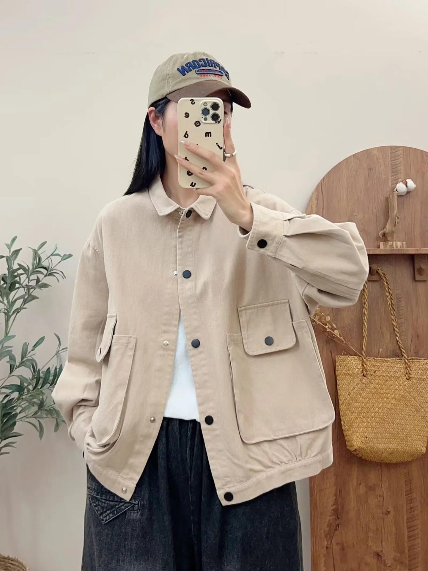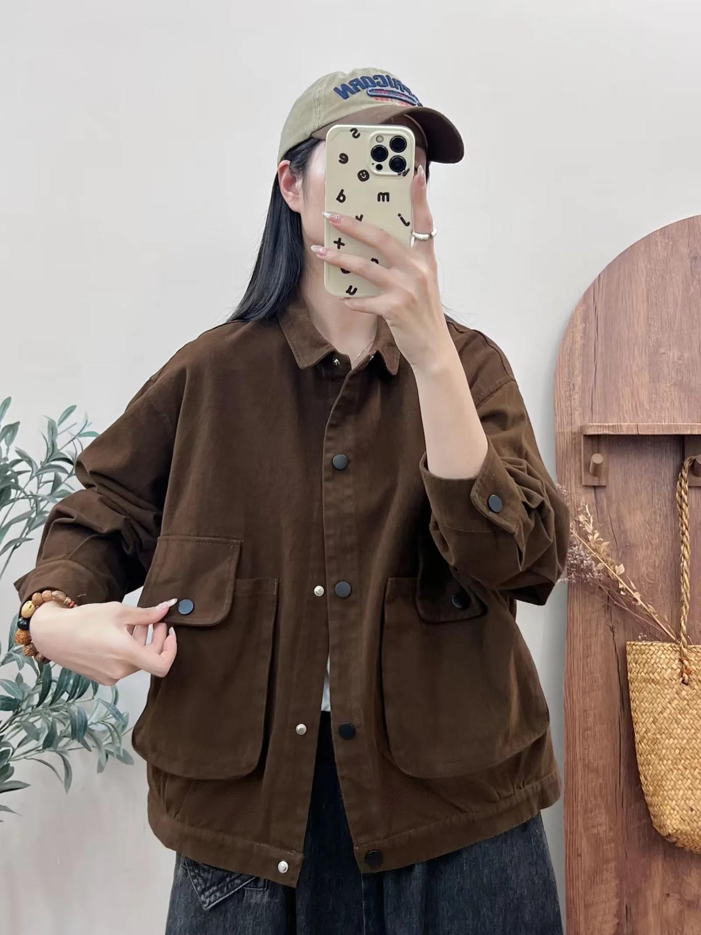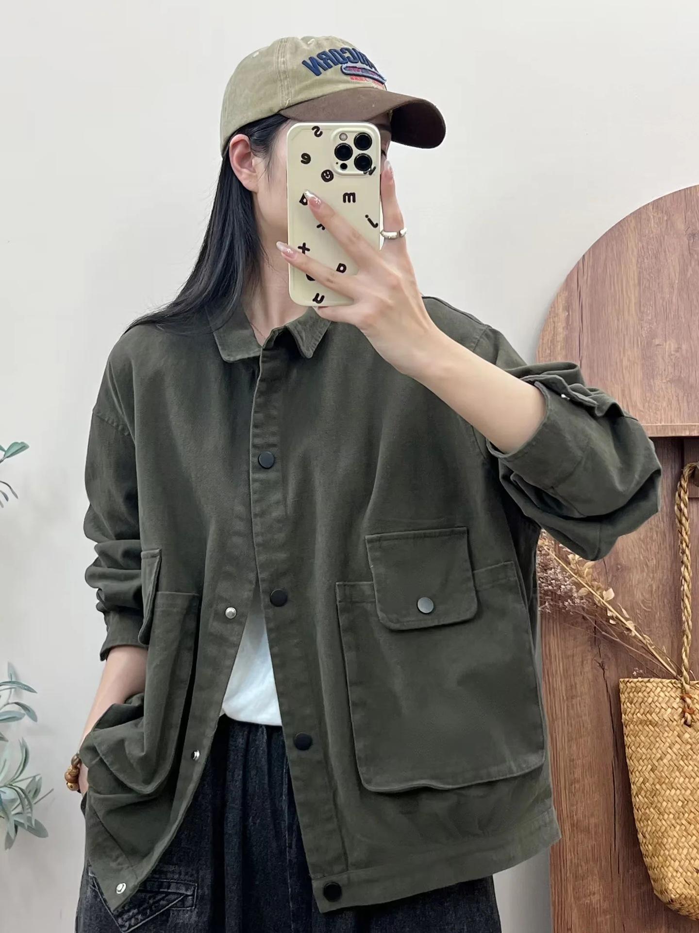 Primavera 2024 nueva chaqueta de color sólido de un solo pecho para mujer, estilo perezoso, cárdigan suelto de alta calidad, top de mujer