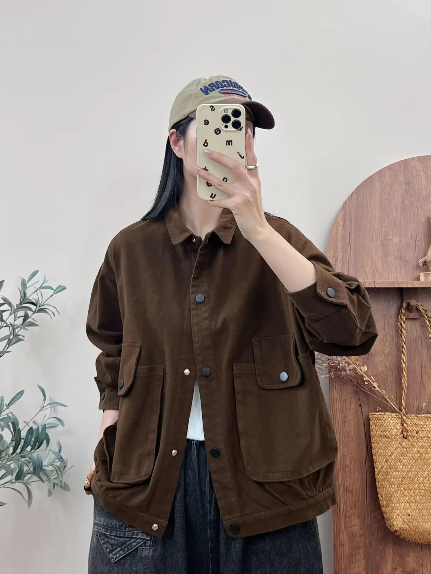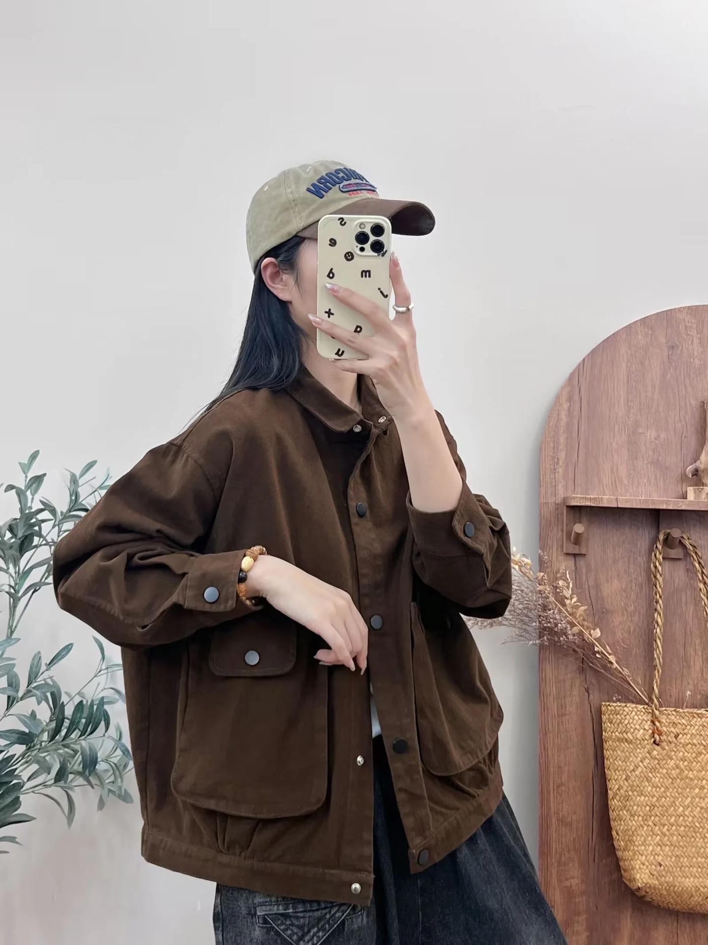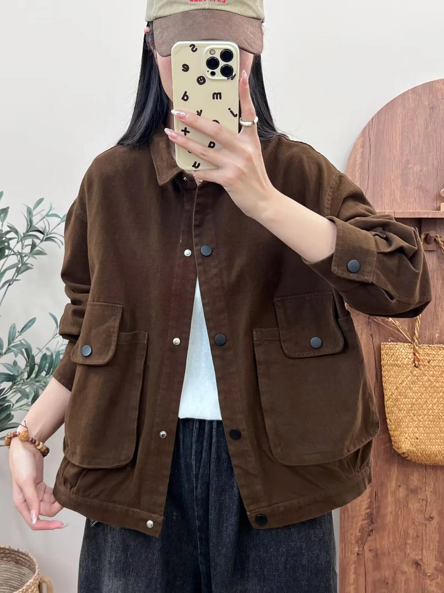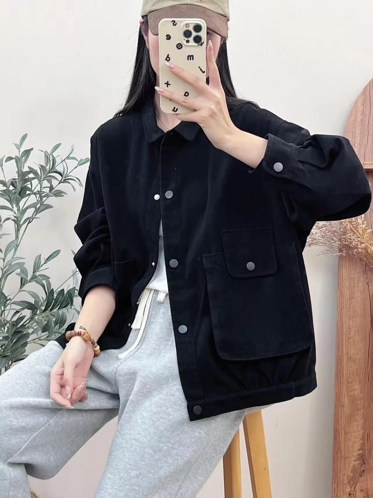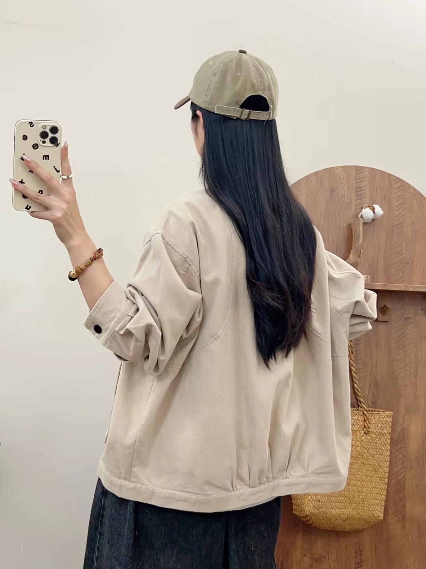 Primavera 2024 nueva chaqueta de color sólido de un solo pecho para mujer, estilo perezoso, cárdigan suelto de alta calidad, top de mujer