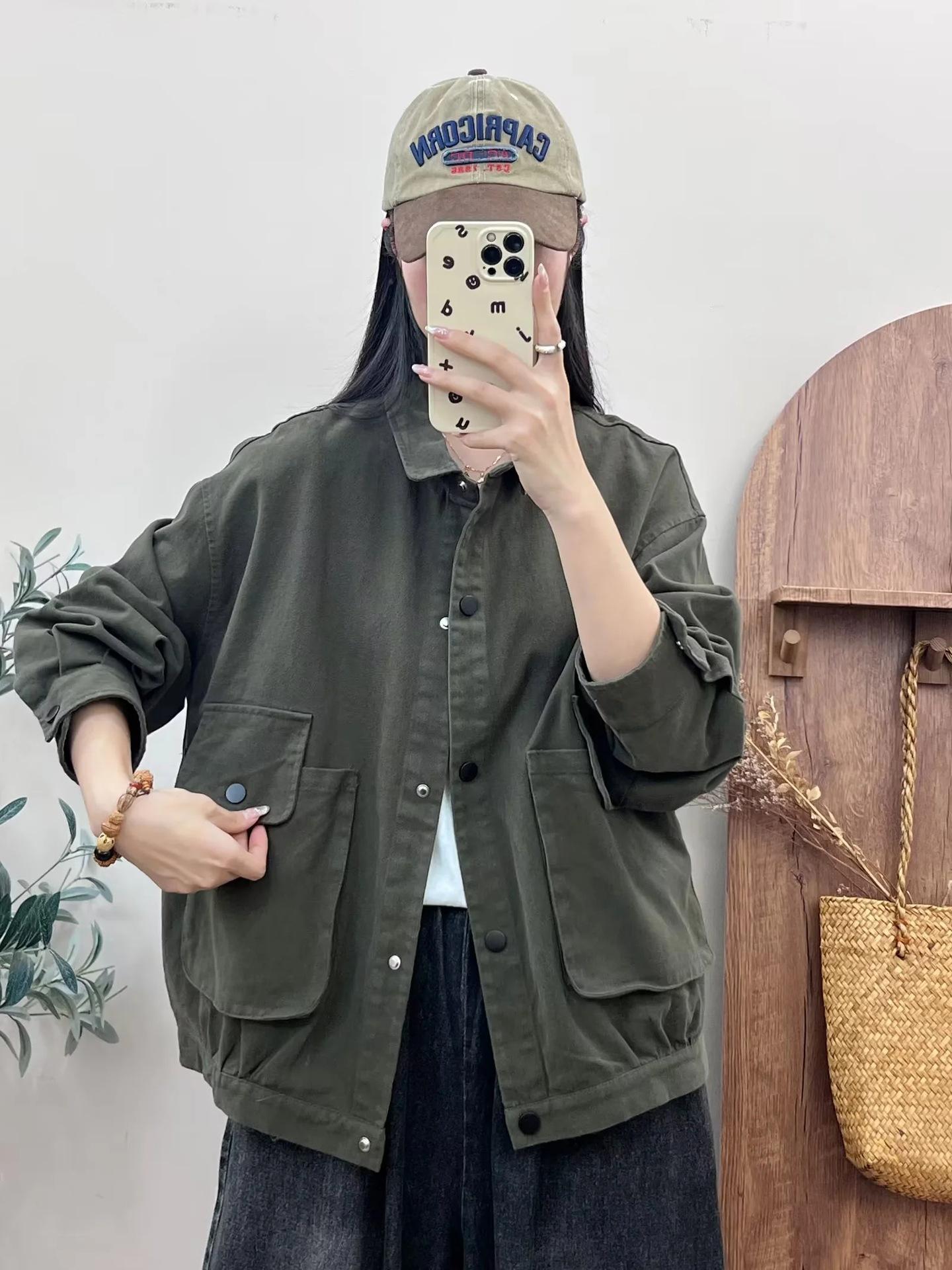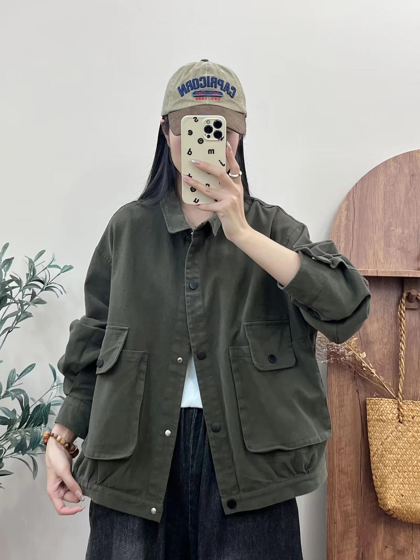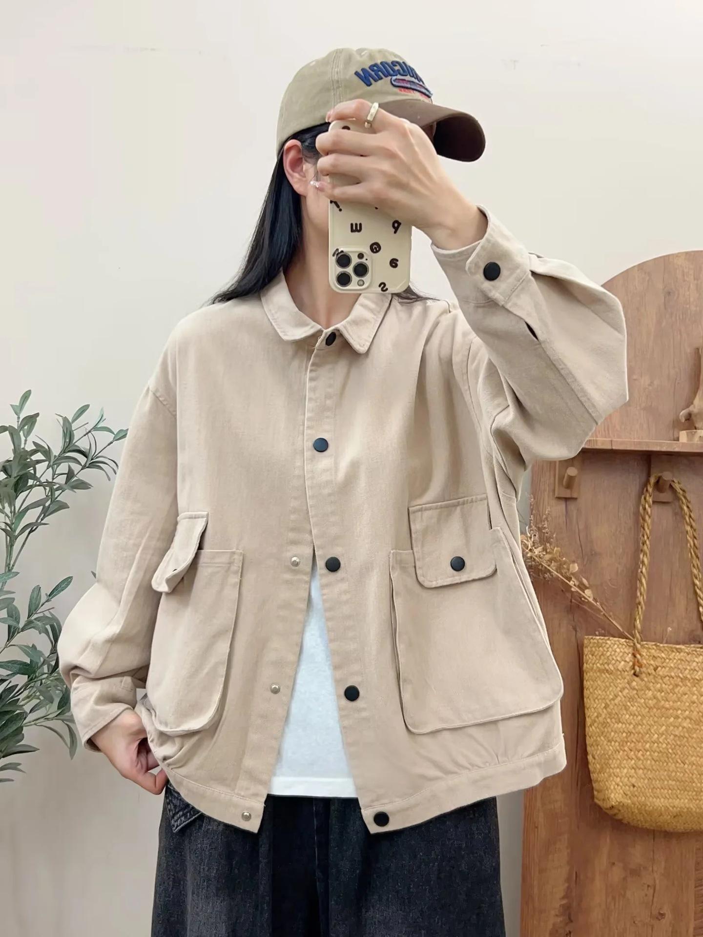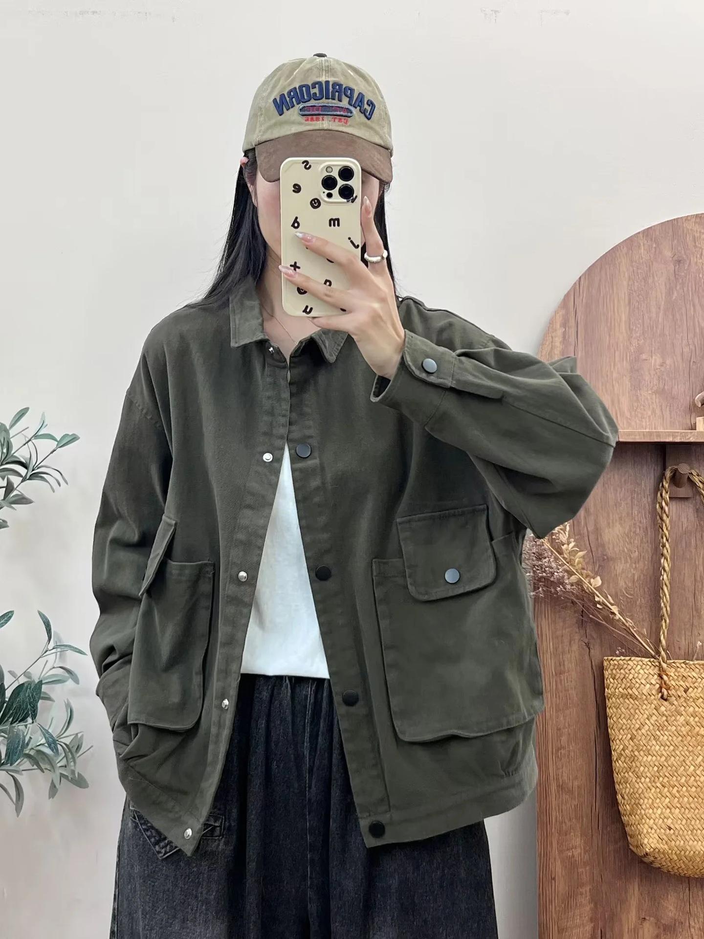 Primavera 2024 nueva chaqueta de color sólido de un solo pecho para mujer, estilo perezoso, cárdigan suelto de alta calidad, top de mujer
