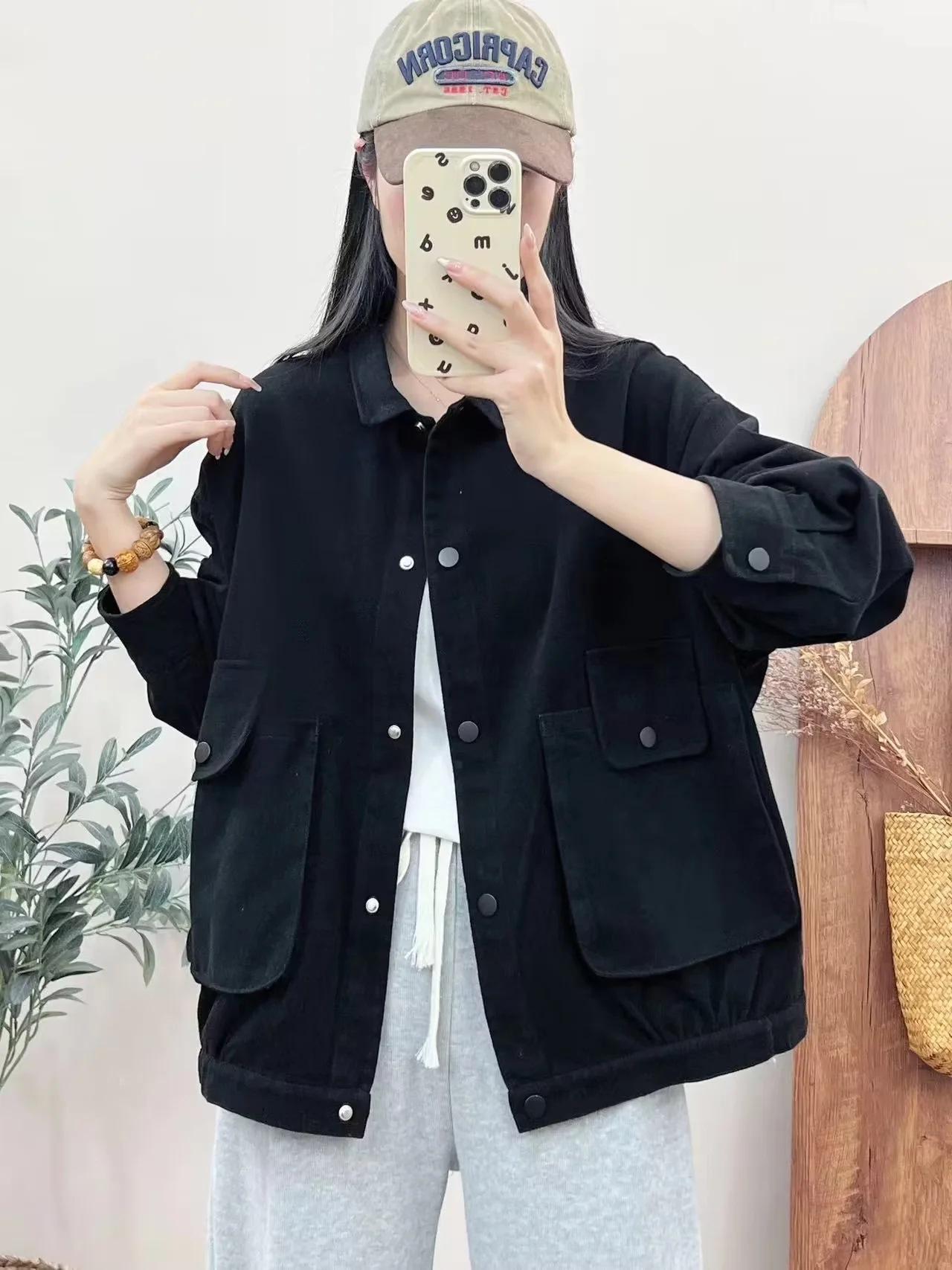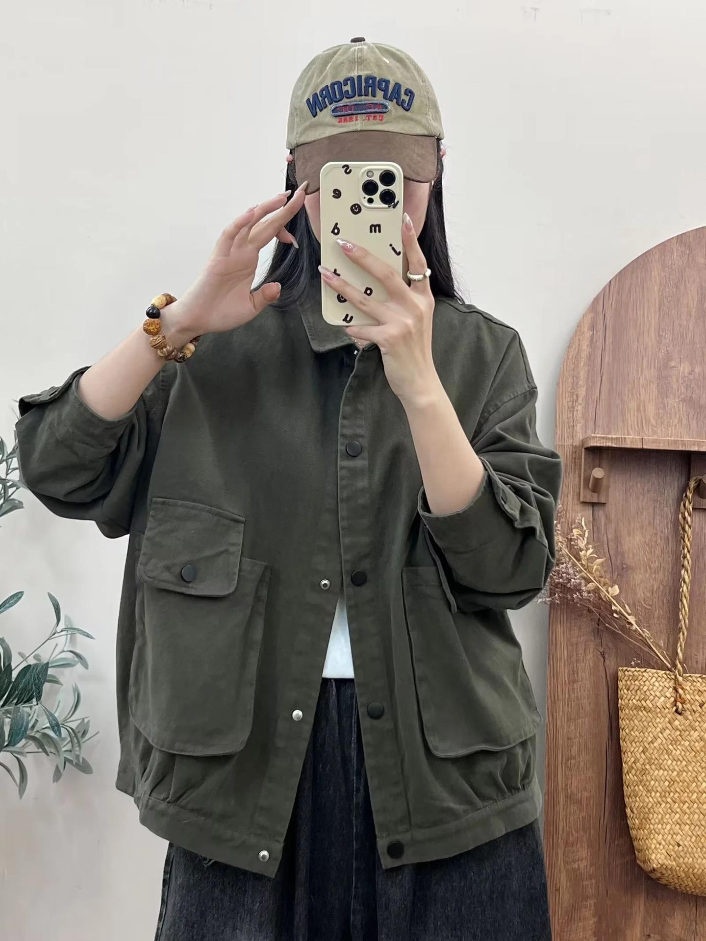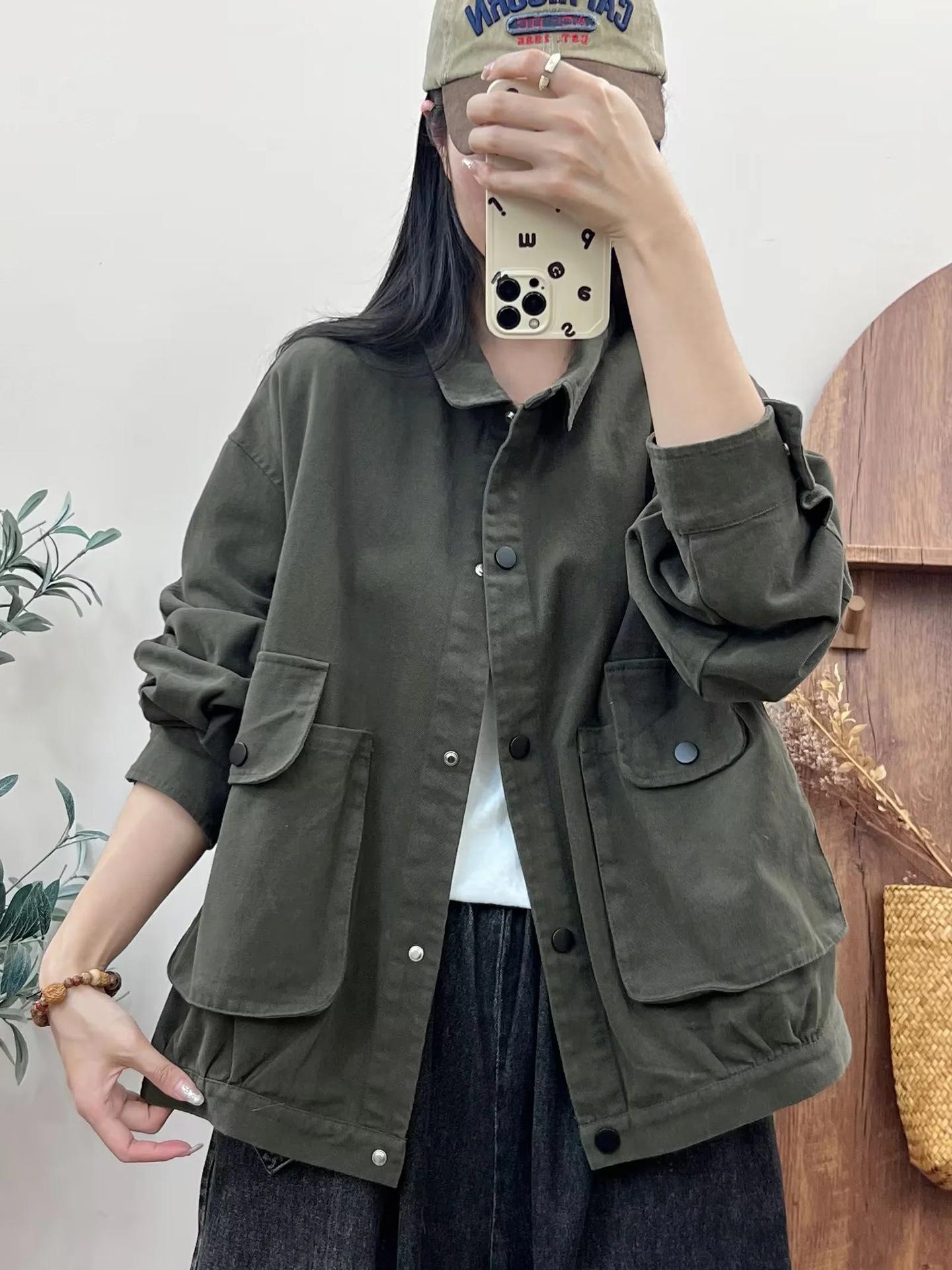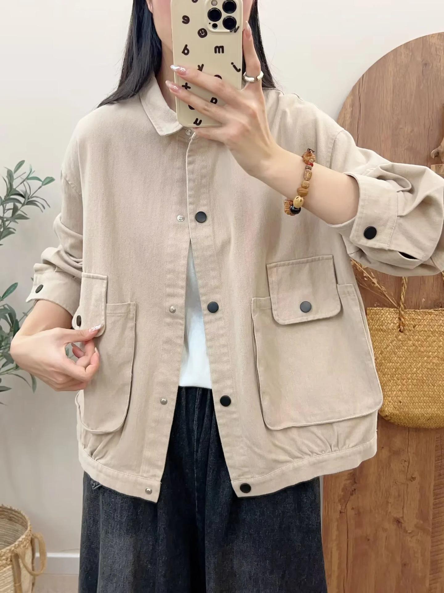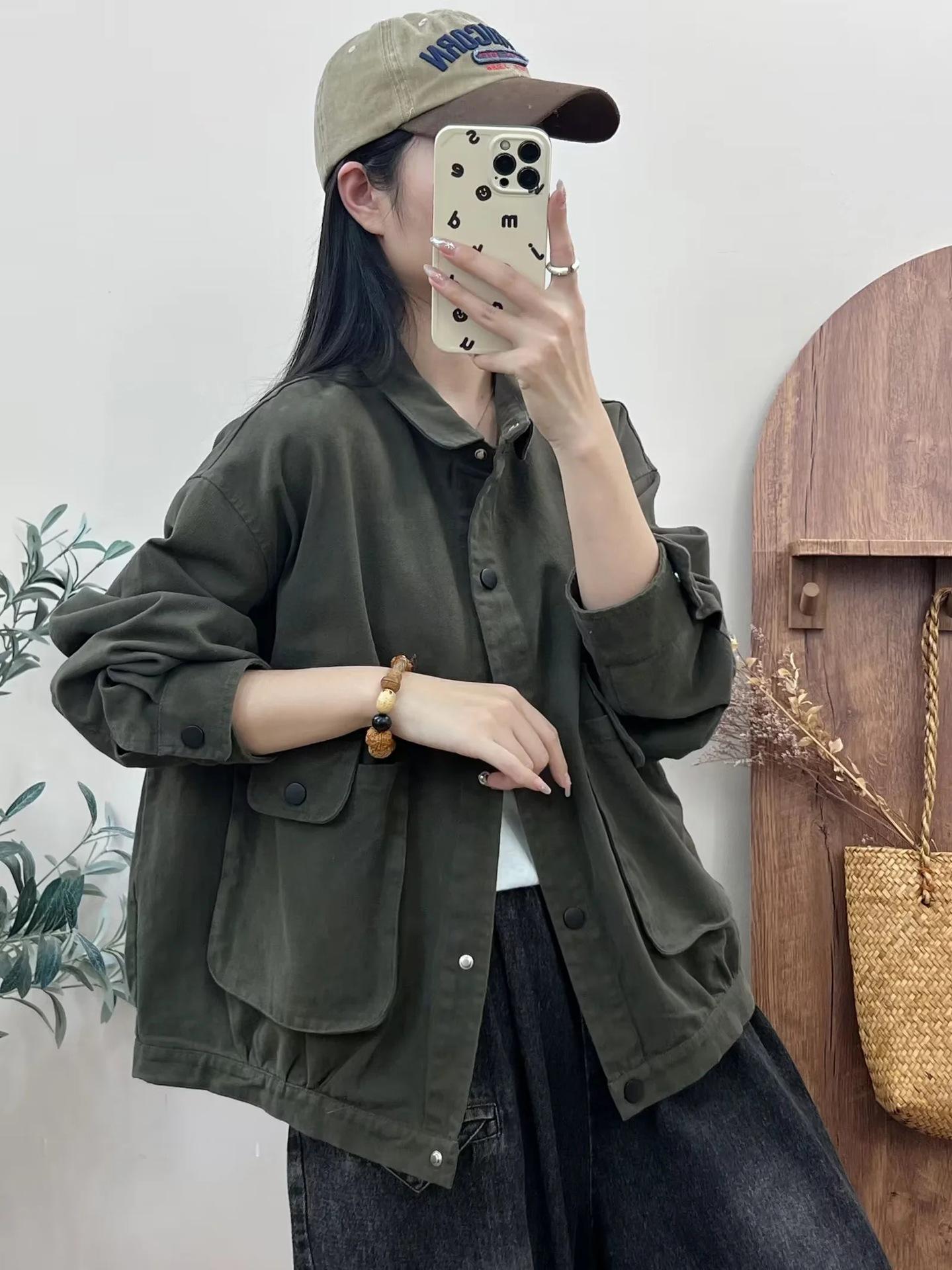 Primavera 2024 nueva chaqueta de color sólido de un solo pecho para mujer, estilo perezoso, cárdigan suelto de alta calidad, top de mujer