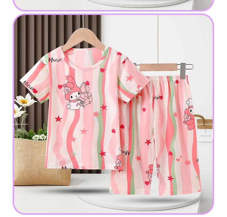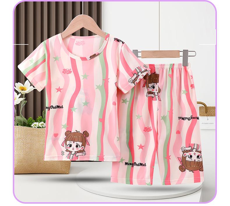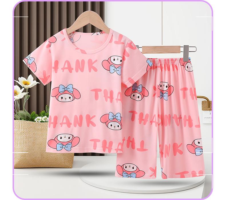 Pijamas para niñas de verano de manga corta finos con dibujos animados para niñas grandes, ropa de princesa para el verano, ropa de casa, ropa exterior