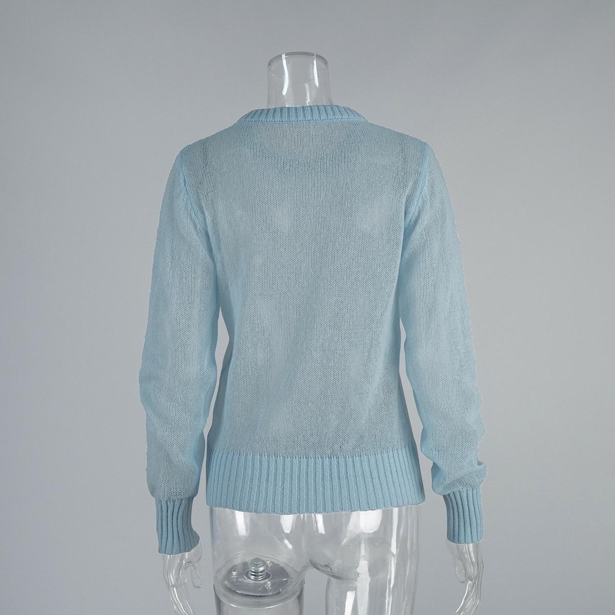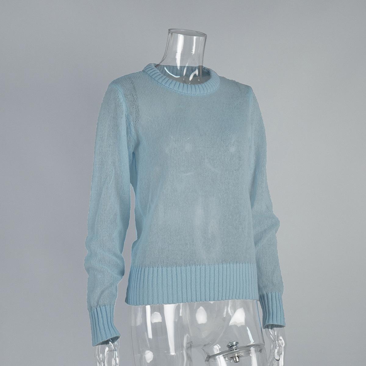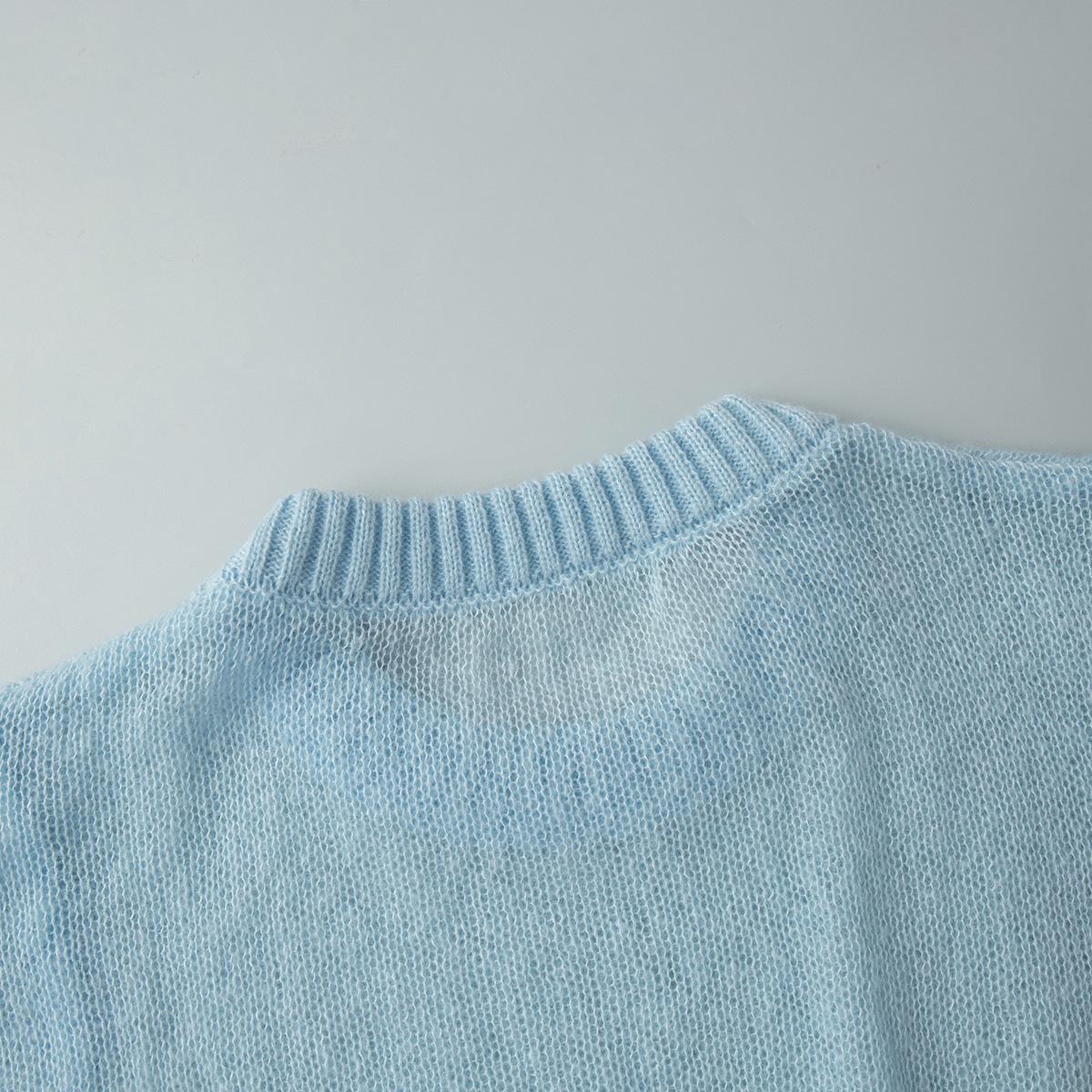 Suéter Pulóver de Cuello Redondo de Mohair Transfronterizo Europeo y Americano 2025 Primavera y Verano Nuevo Base Tejida Cómoda Suéter Semitransparente para Mujer