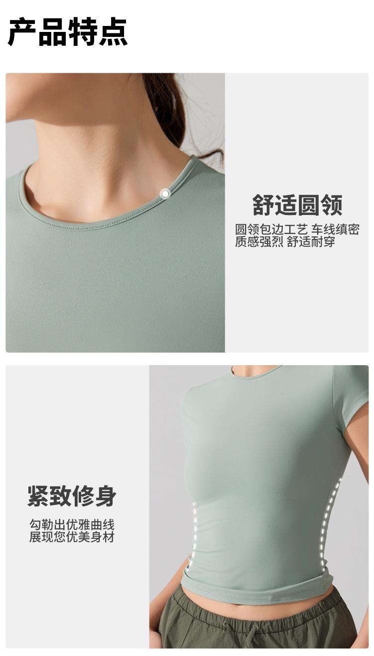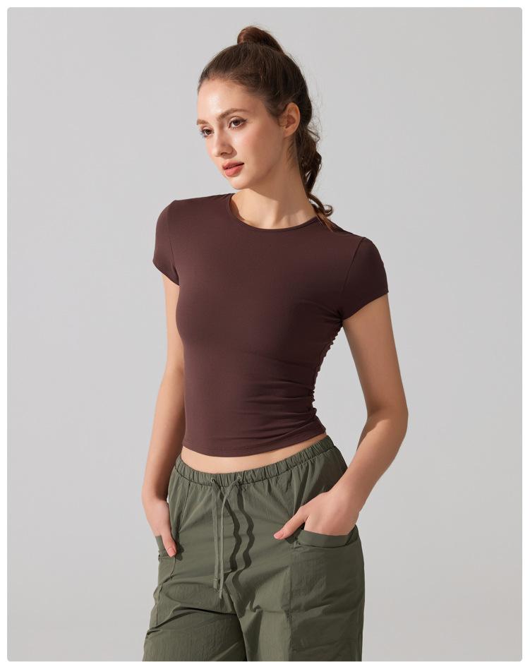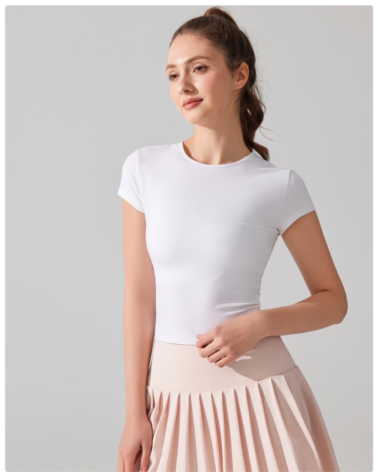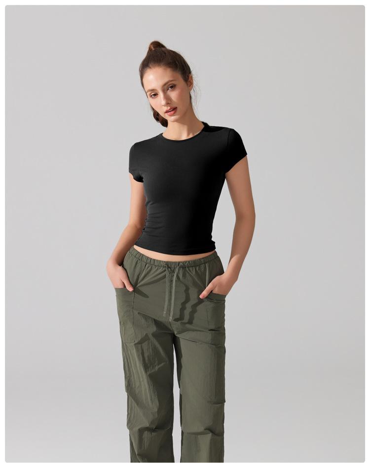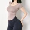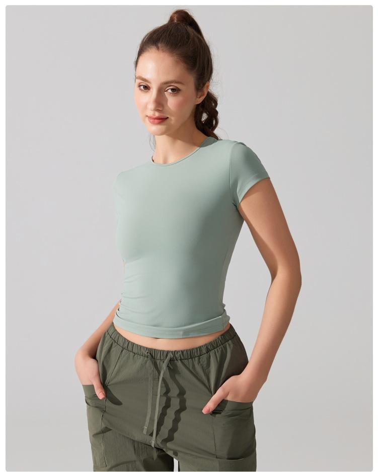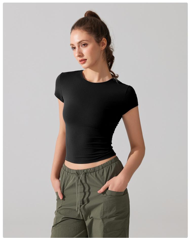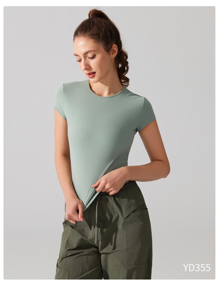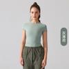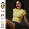 Camiseta deportiva informal de cuello redondo, manga corta, transpirable, de secado rápido, para yoga, cintura ajustada, para correr y fitness, estilo europeo y americano