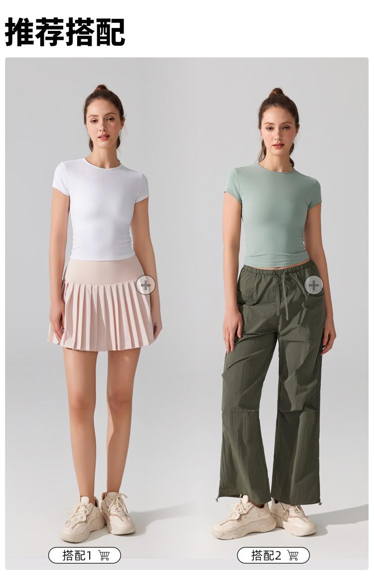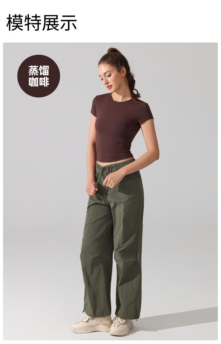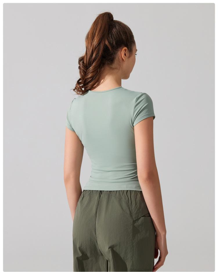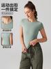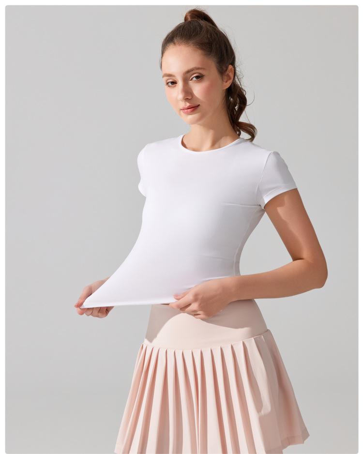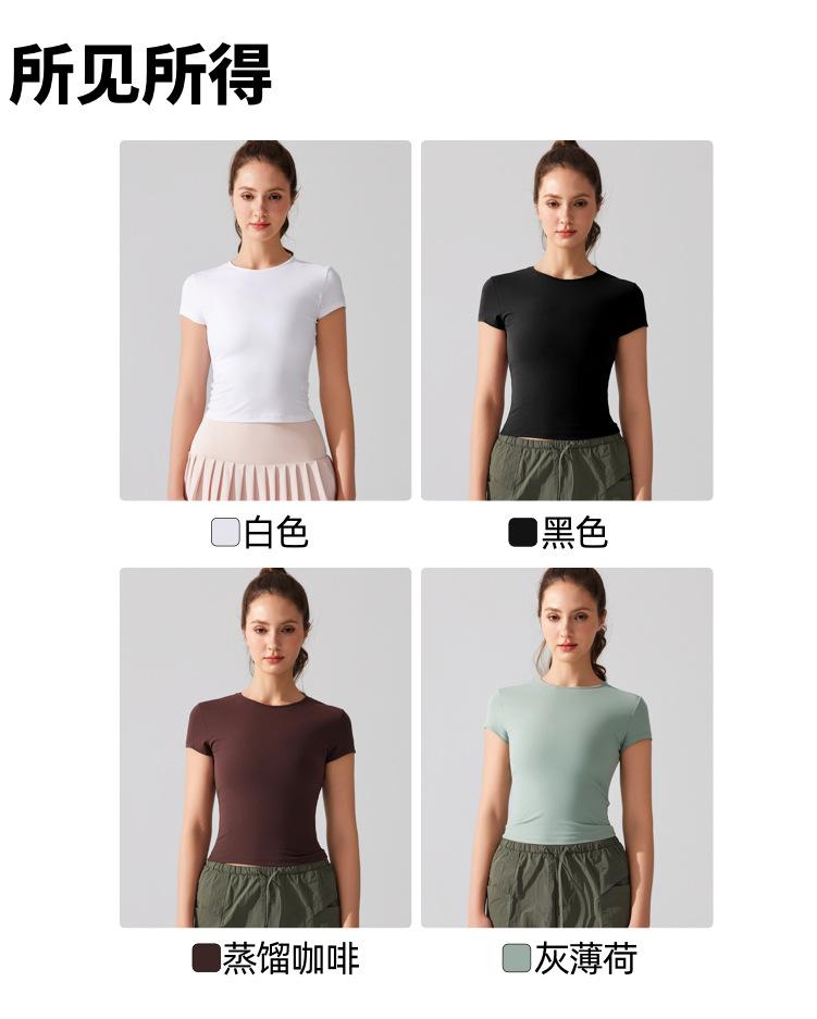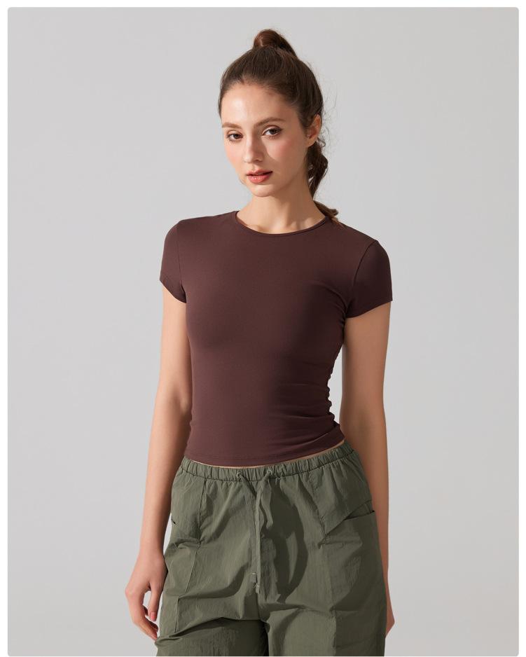 Camiseta deportiva informal de cuello redondo, manga corta, transpirable, de secado rápido, para yoga, cintura ajustada, para correr y fitness, estilo europeo y americano