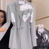 Otoño e invierno 2023 nueva chaqueta de cuello de traje pequeño de manga larga profesional roja para mujer, elegante y de alta calidad a juego.