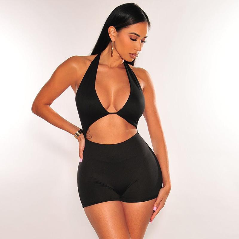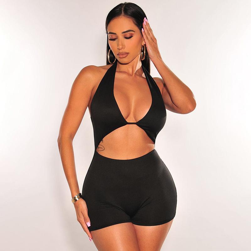 Compra Moda Europea y Americana Otoño e Invierno Nuevo Mono de Mujer de Color Sólido Escote Bajo Sexy Espalda Descubierta Ajustado Calado para Mujer al por mayor en Joom.pro