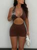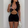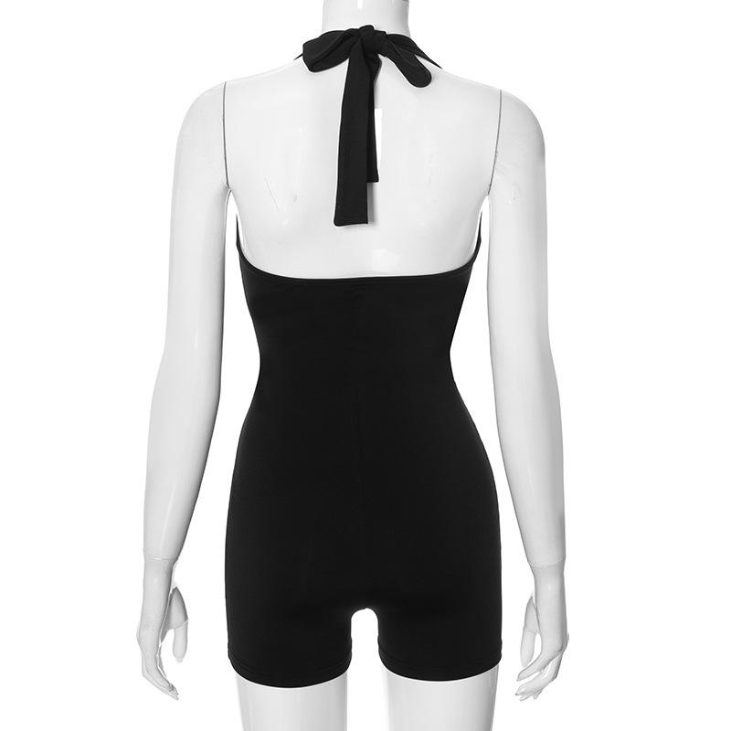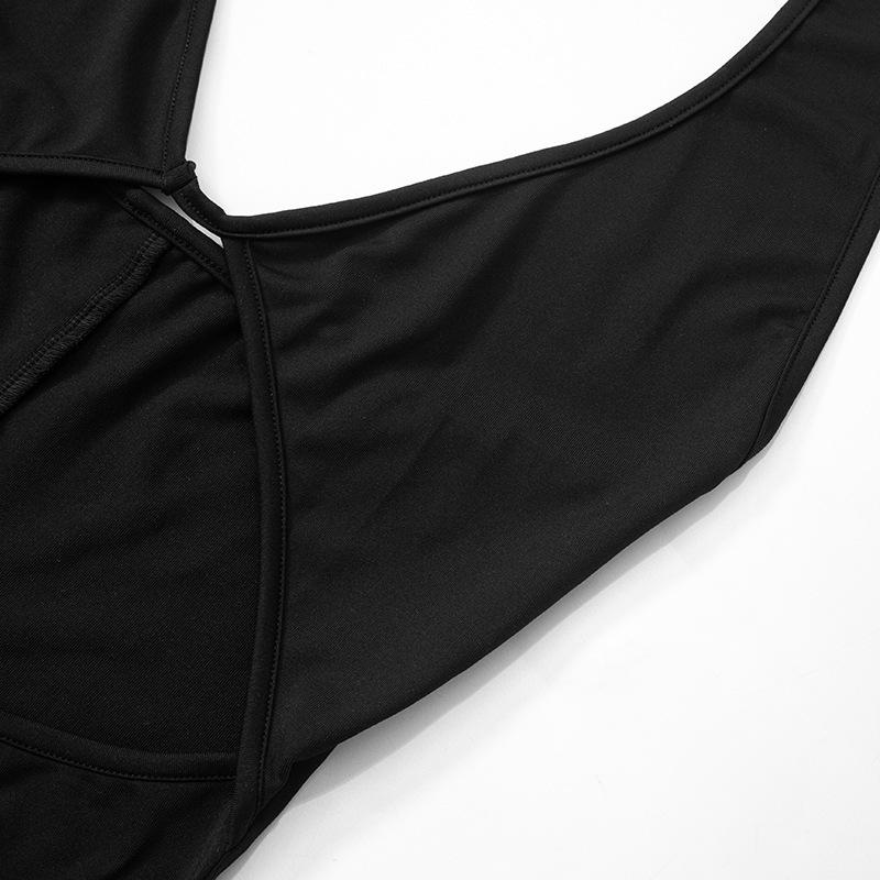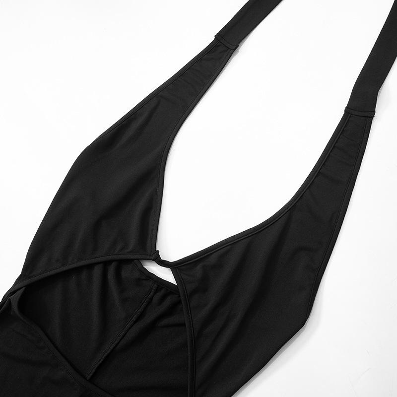 Moda Europea y Americana Otoño e Invierno Nuevo Mono de Mujer de Color Sólido Escote Bajo Sexy Espalda Descubierta Ajustado Calado para Mujer