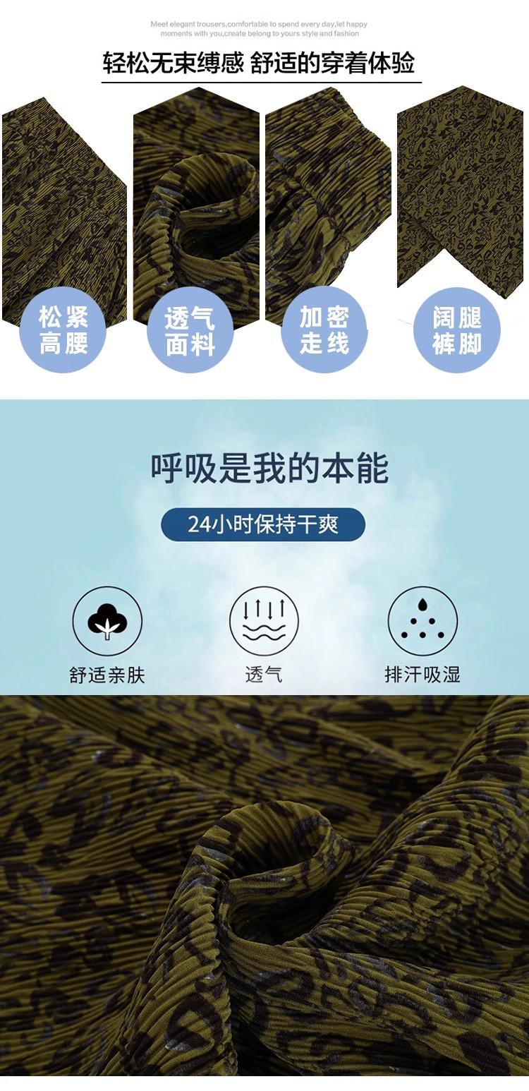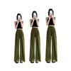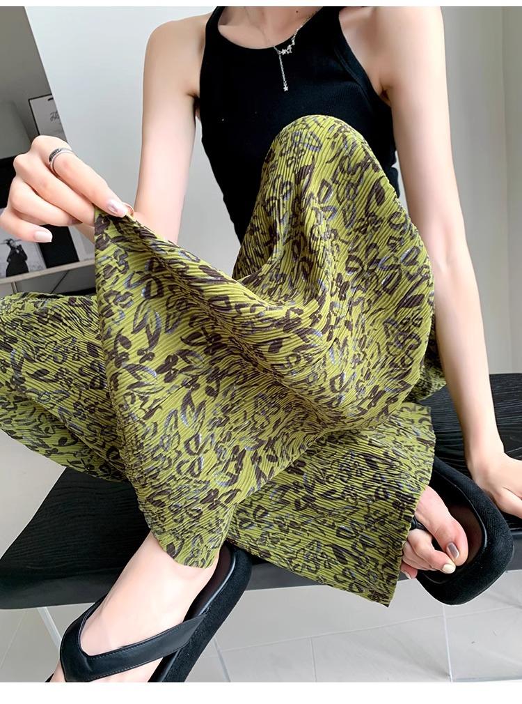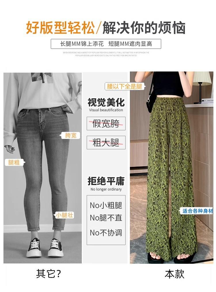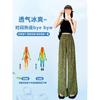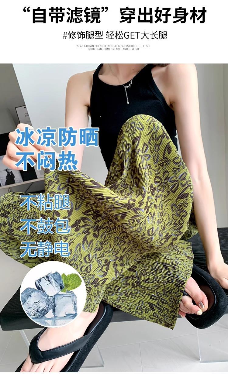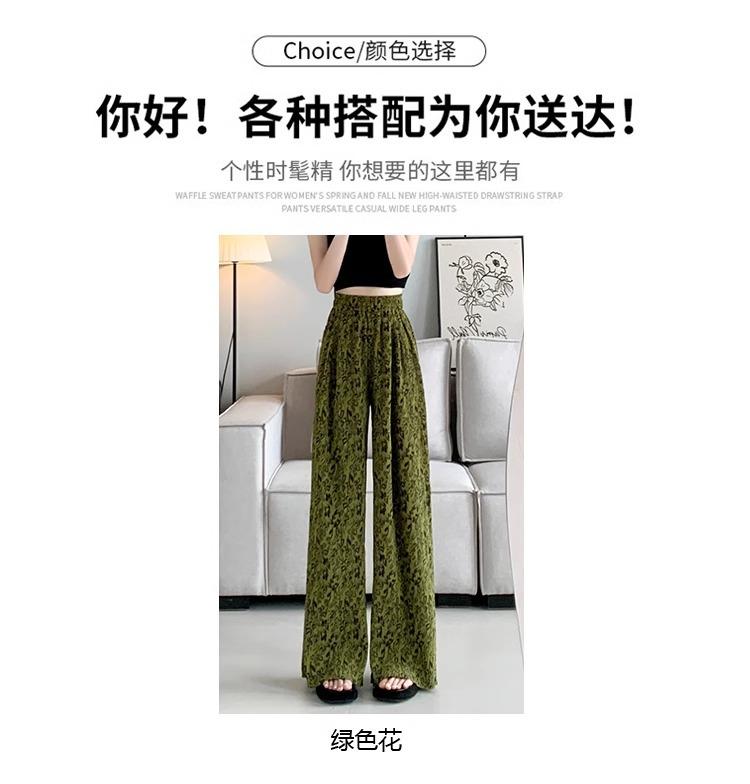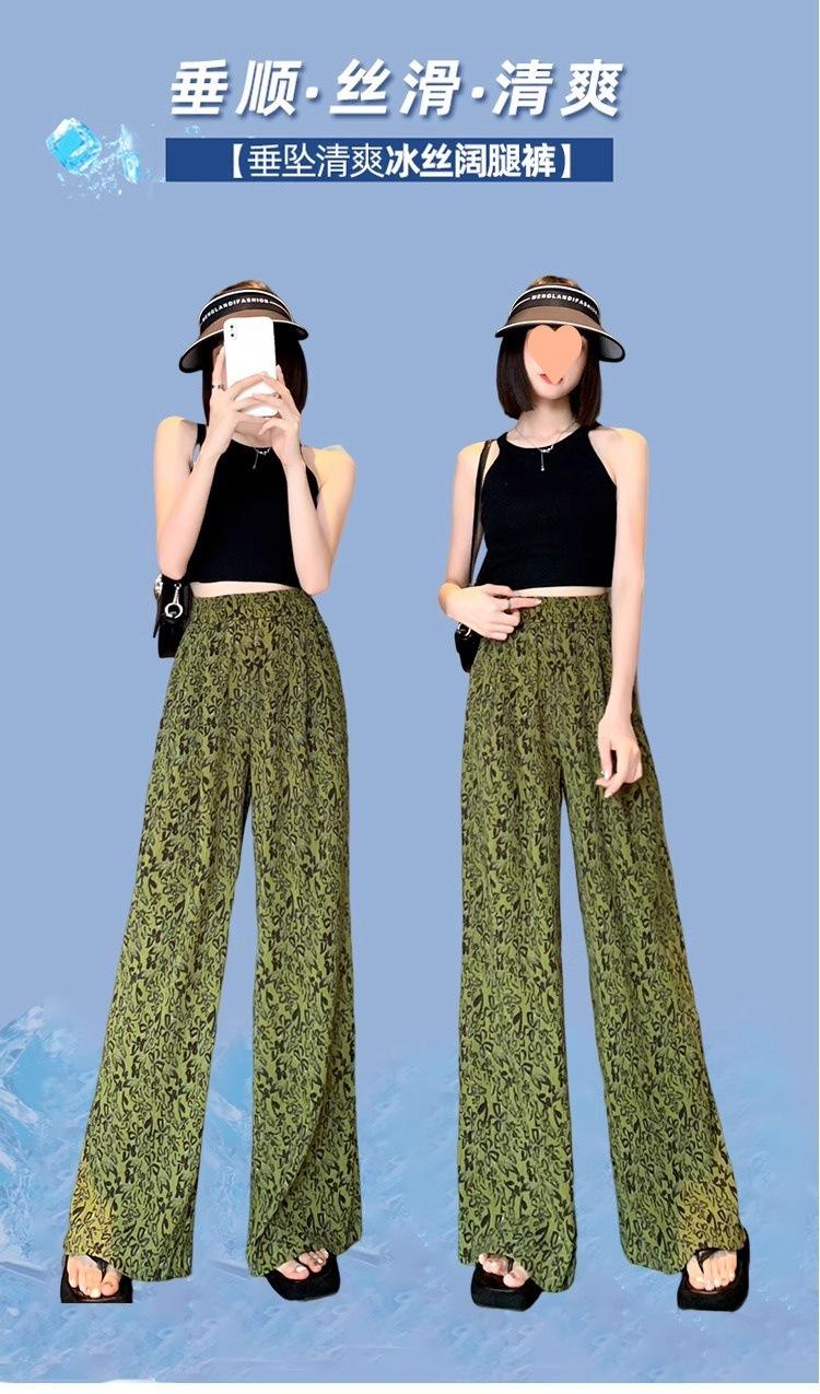 2025 Nuevo Pantalón Verde Estampado de Seda de Hielo de Pierna Ancha para Mujer Verano Delgado Cintura Alta Drapeado Chifón Plisado Pantalón Largo Hasta el Piso
