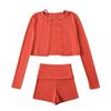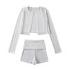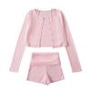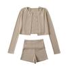 Traje de chica dulce y sexy para mujer 2024, nuevo cárdigan de manga larga corto americano Pure Desire + camisola + pantalones cortos a la cintura