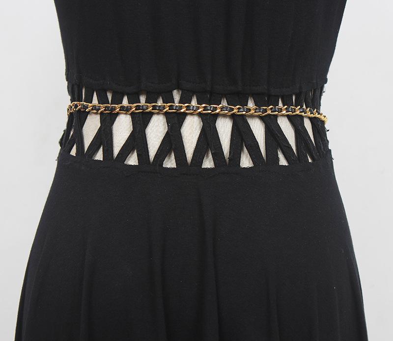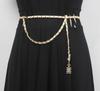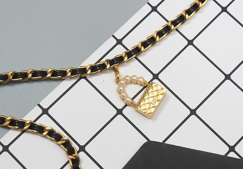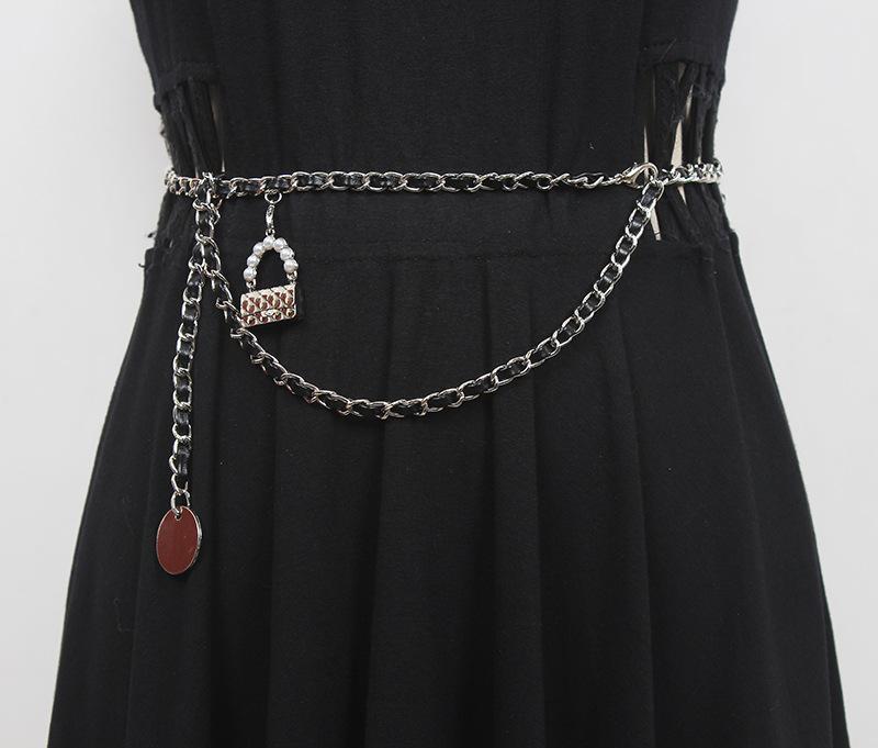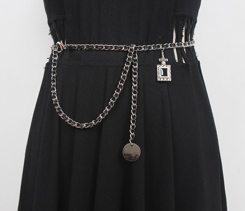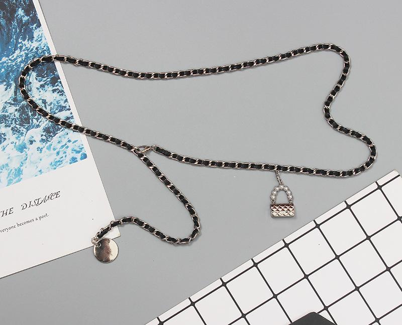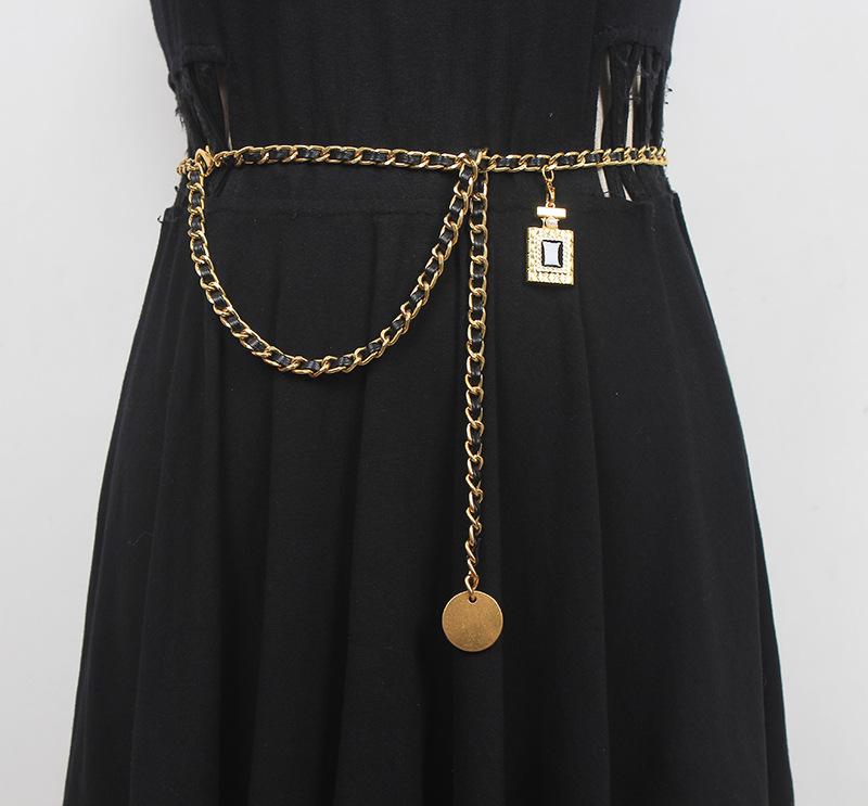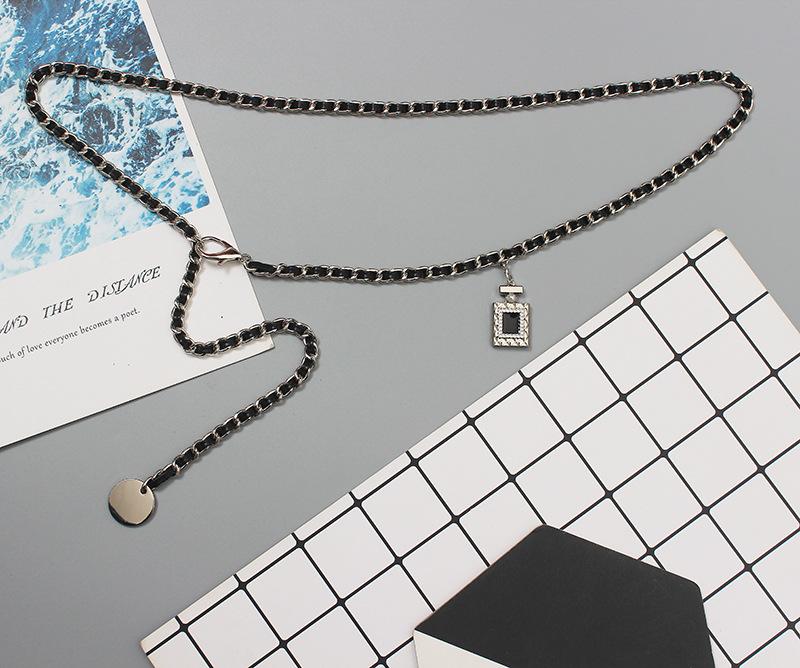 Cinturón de cadena tejido de cuero de alta calidad de lujo ligero estilo francés, elegante y a la moda, con colgante de candado, accesorios