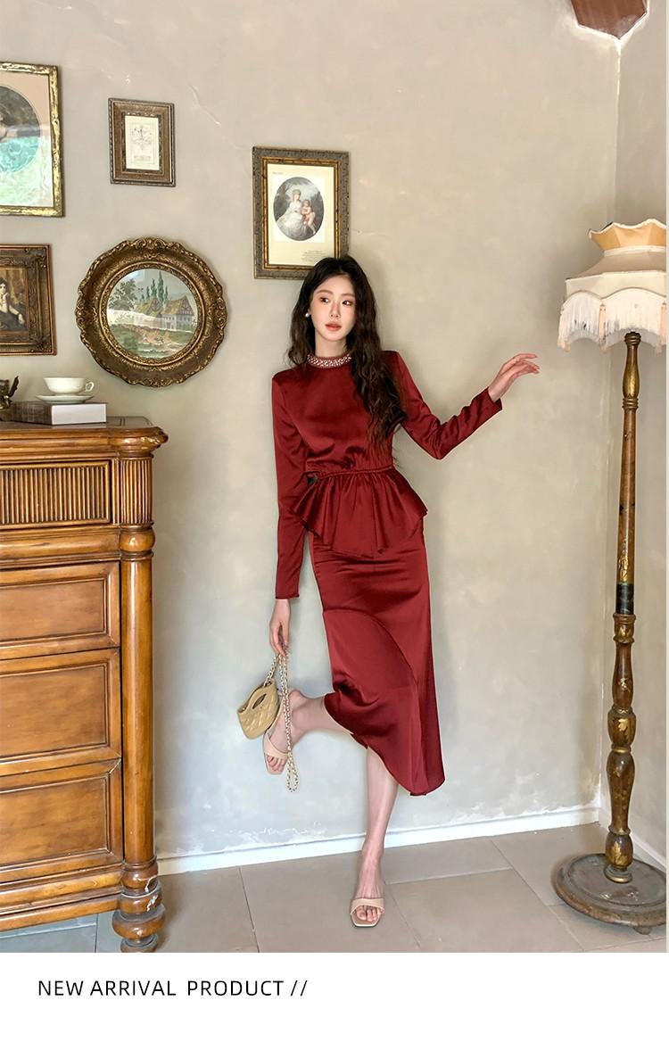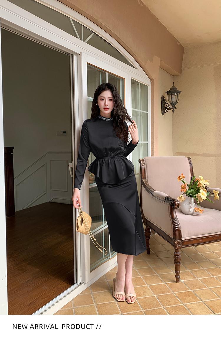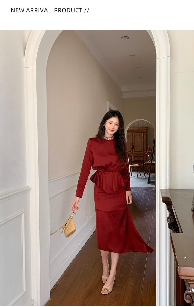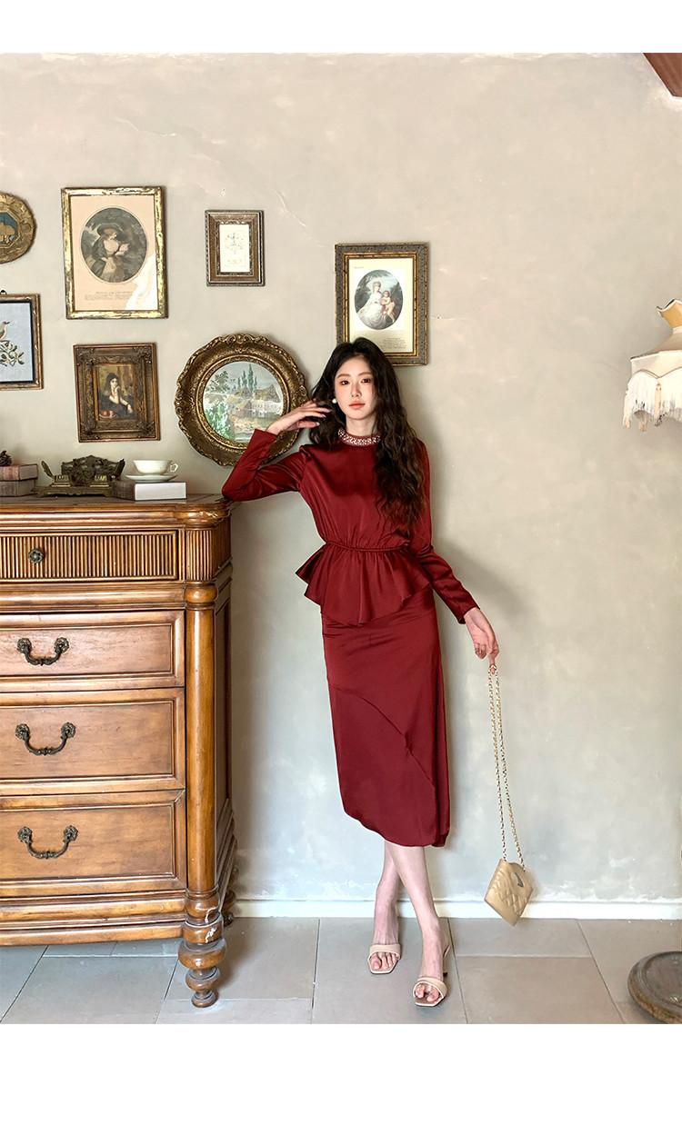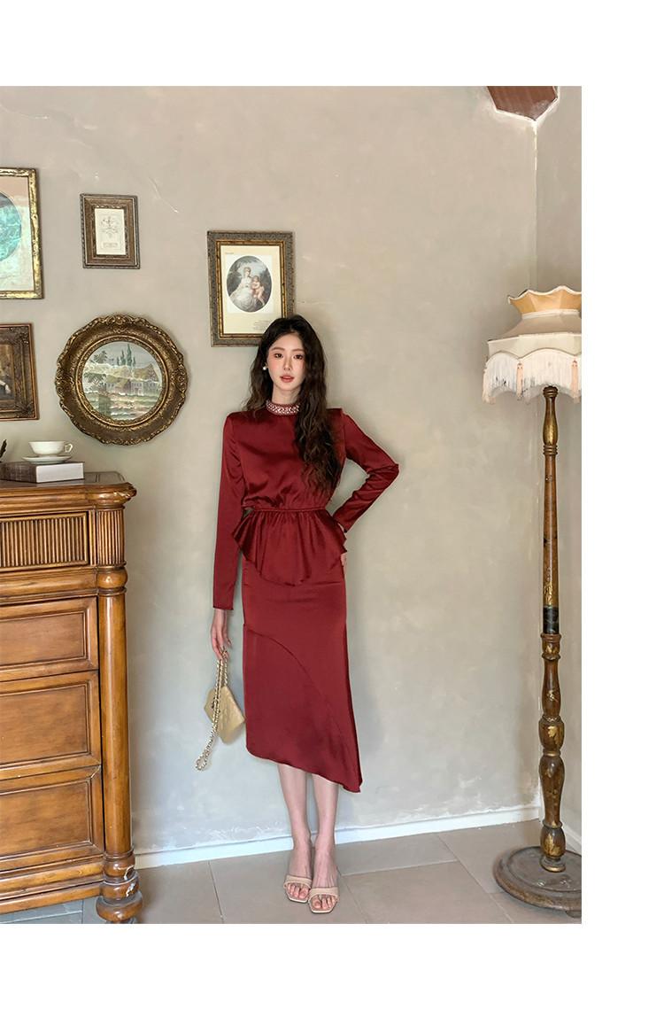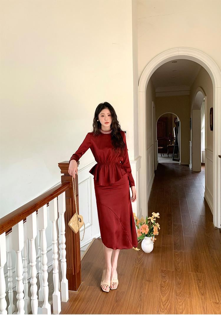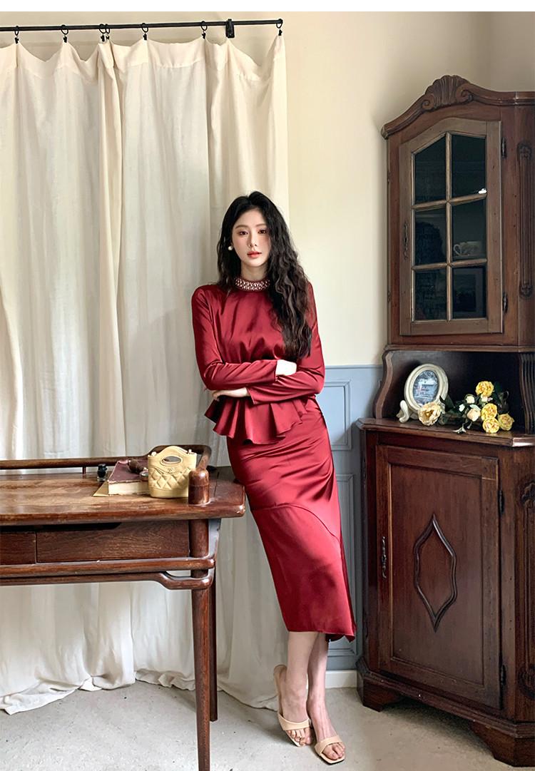Traje elegante de dos piezas con falda y top de estilo socialité para primavera de 2025.