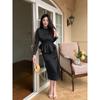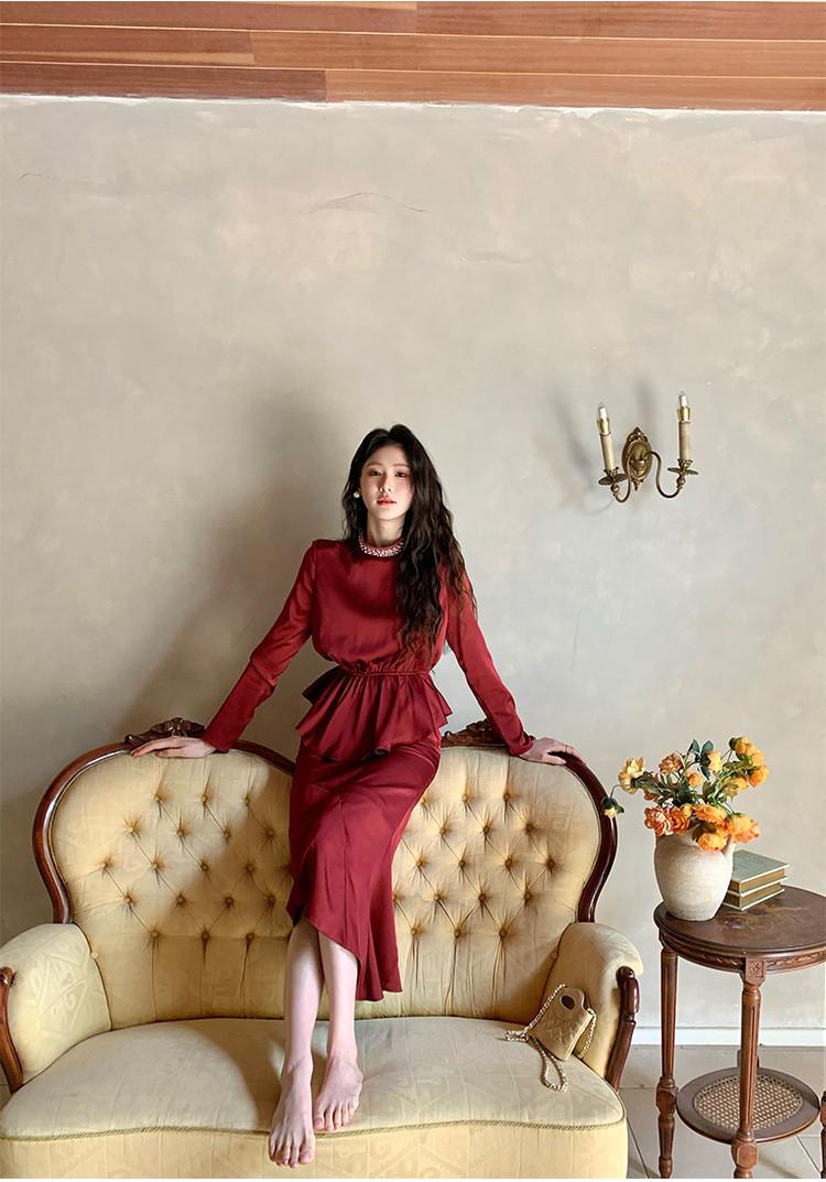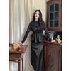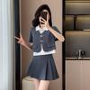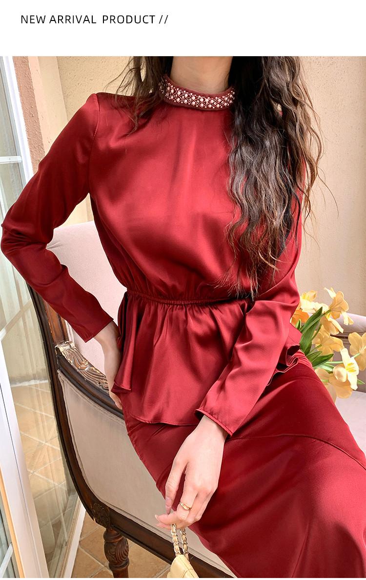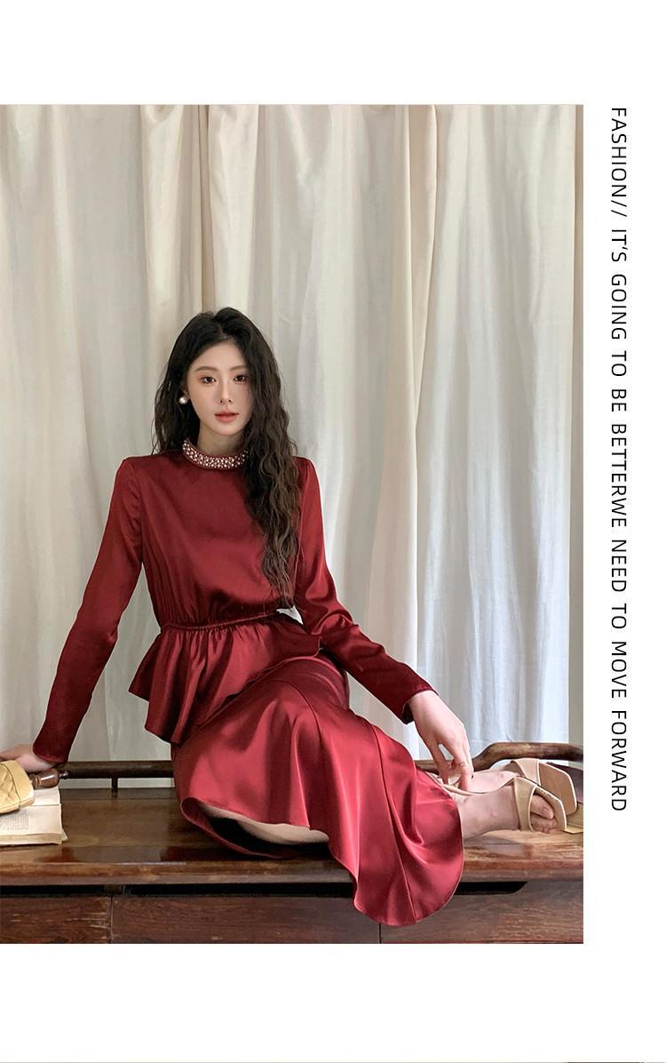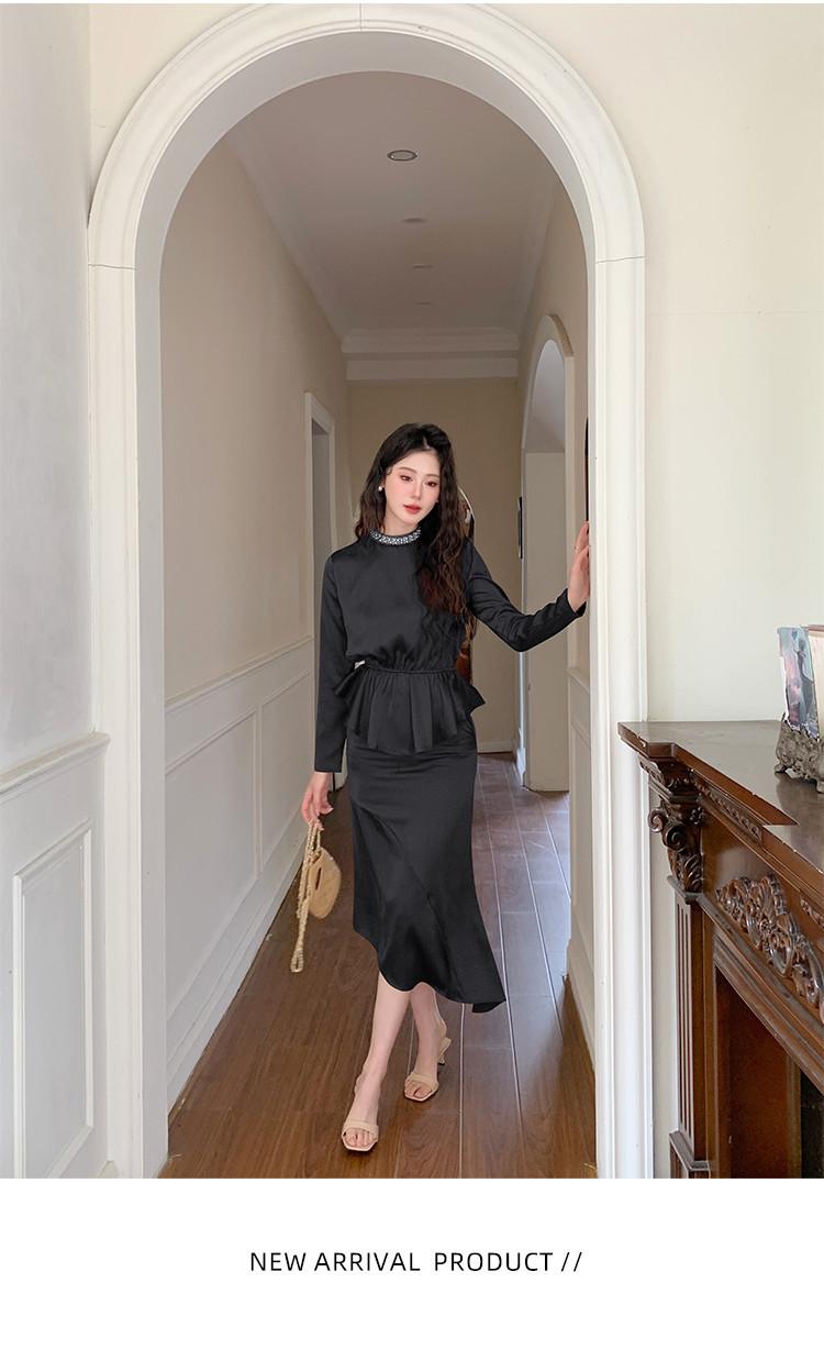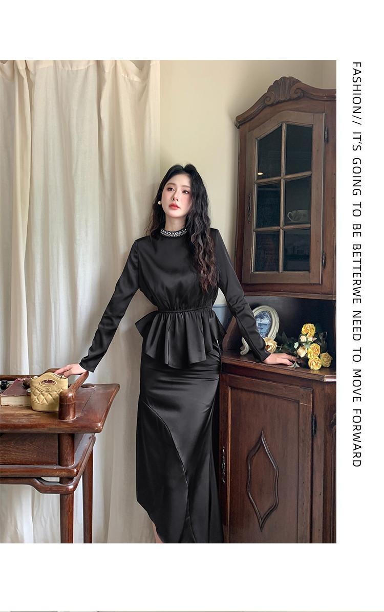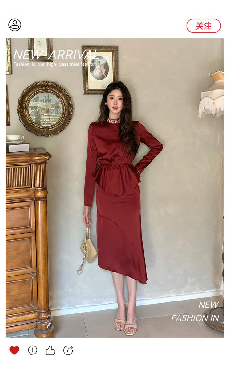 Traje elegante de dos piezas con falda y top de estilo socialité para primavera de 2025.