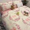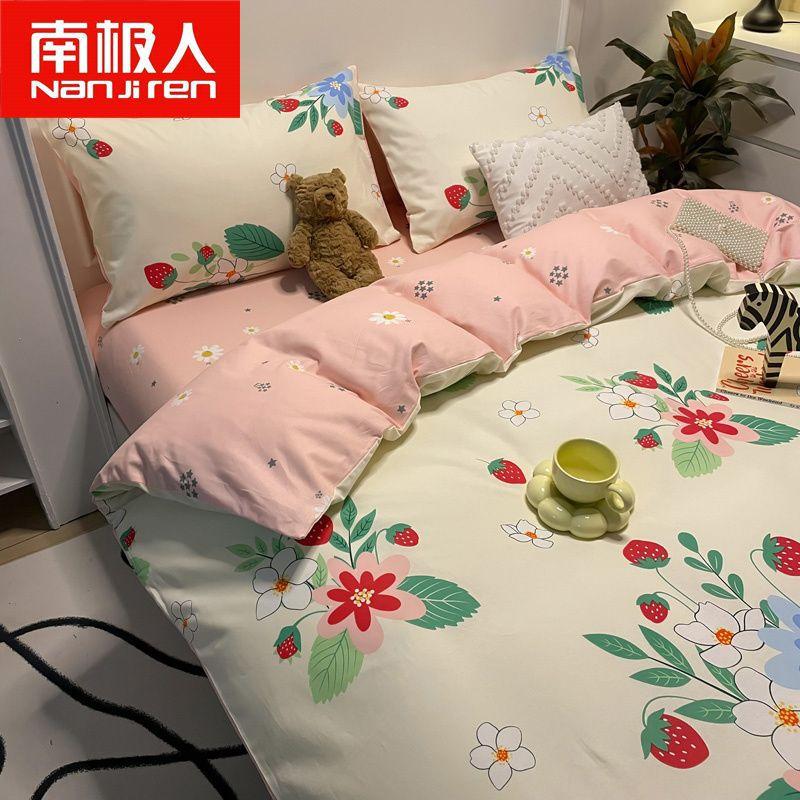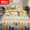 Juego de sábanas de algodón puro Nanjiren de cuatro piezas, juego de sábanas de lija para dormitorio individual, juego de funda nórdica de tres piezas