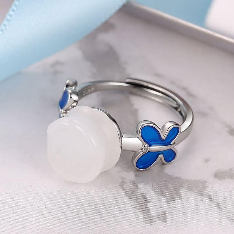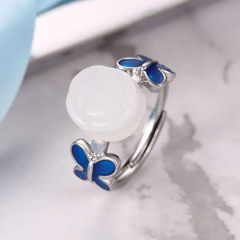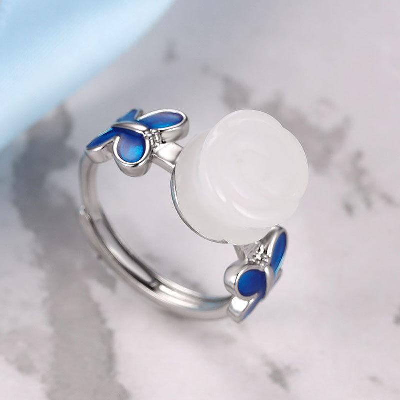 Anillo de plata de ley con incrustaciones naturales, estilo vintage, mariposa, pequeño, apertura fresca, moda para mujer.
