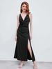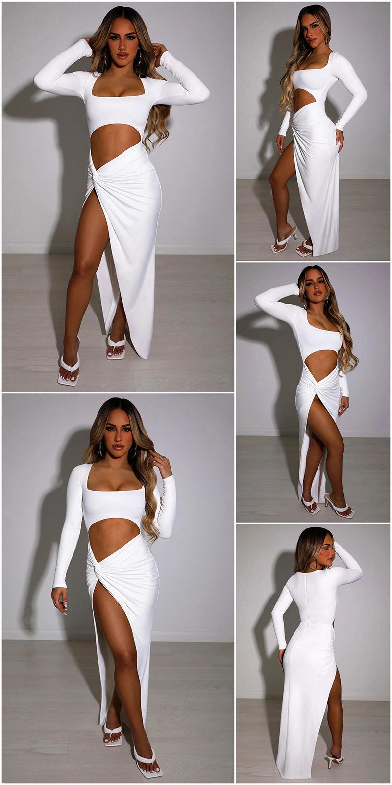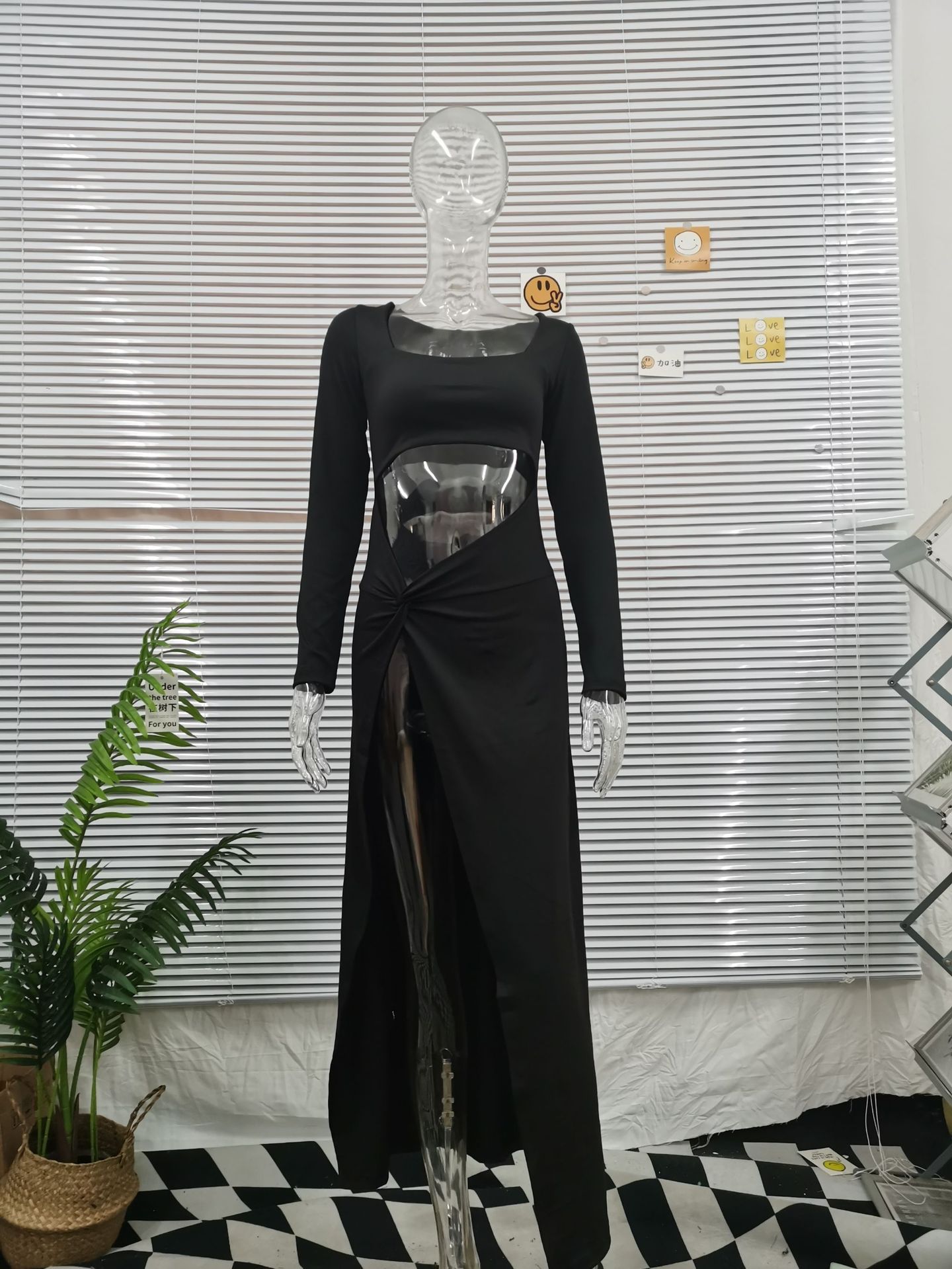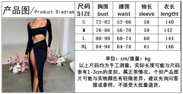 Vestido con abertura y cuello cuadrado hueco de moda urbana sexy para mujer de Amazon de primavera y otoño transfronterizo