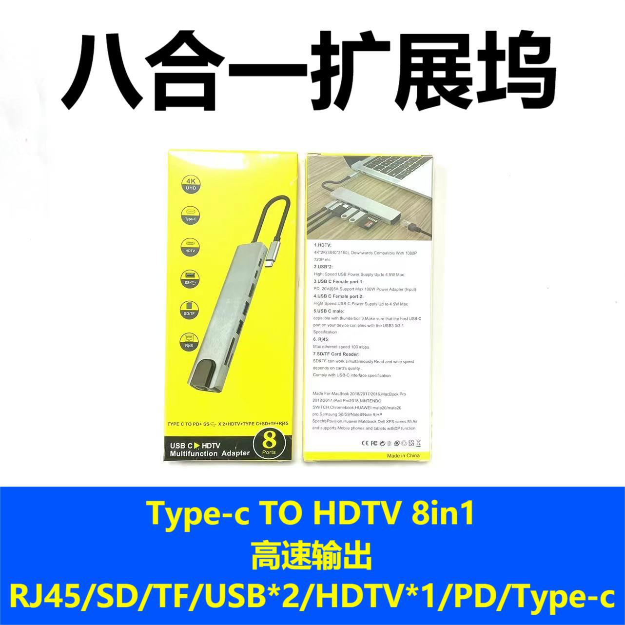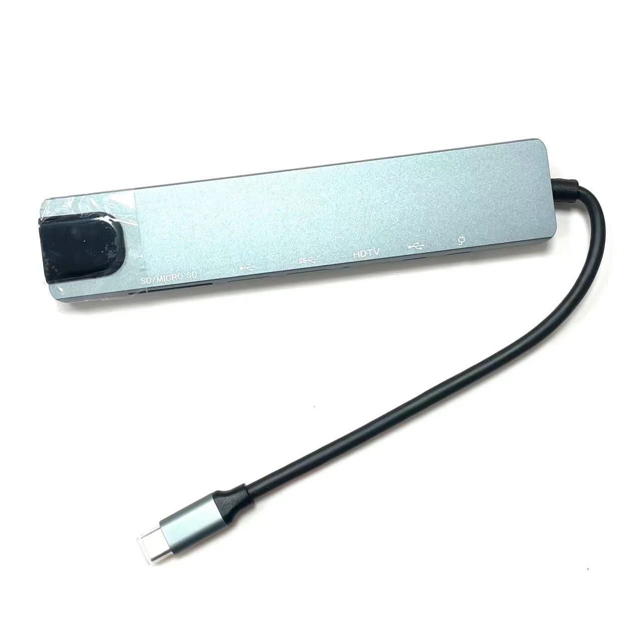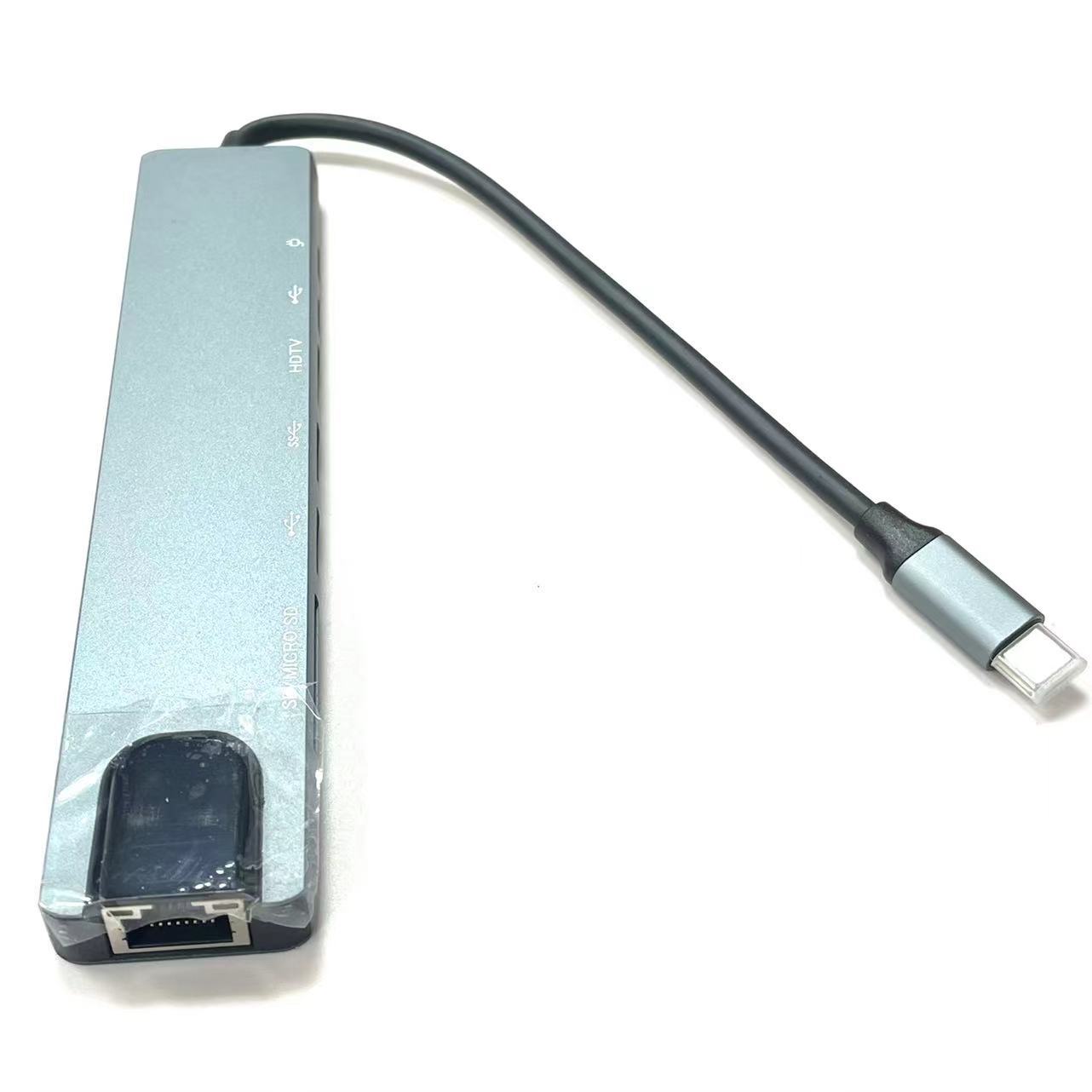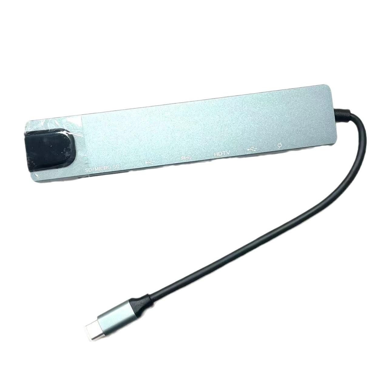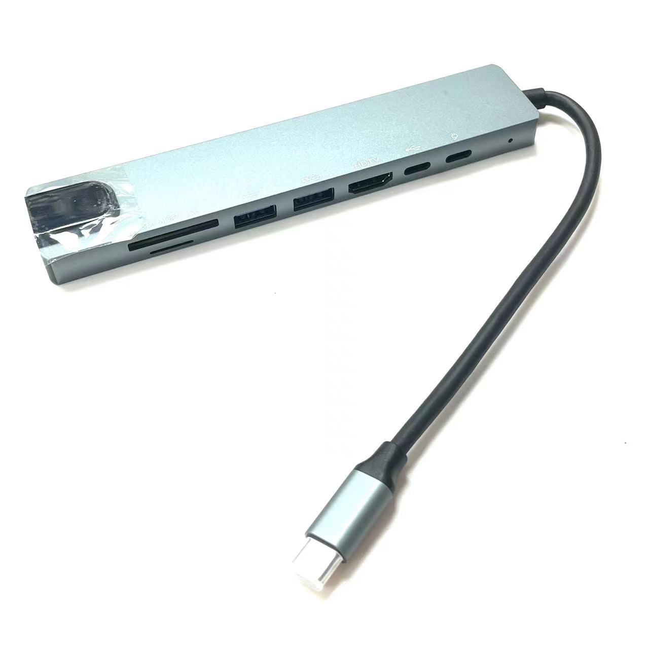 Estación de acoplamiento 8 en 1 tipo C, función de lectura de tarjetas dual, expansión de múltiples interfaces, plug and play, adecuada para computadoras portátiles