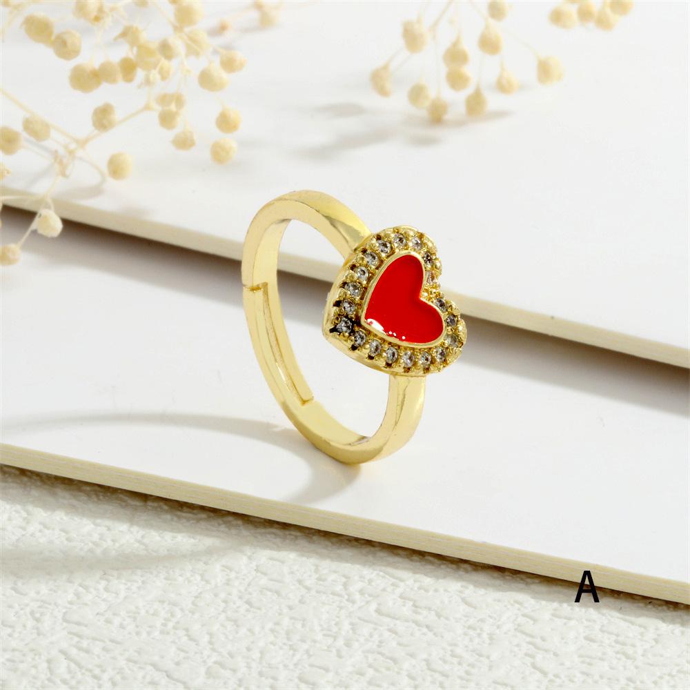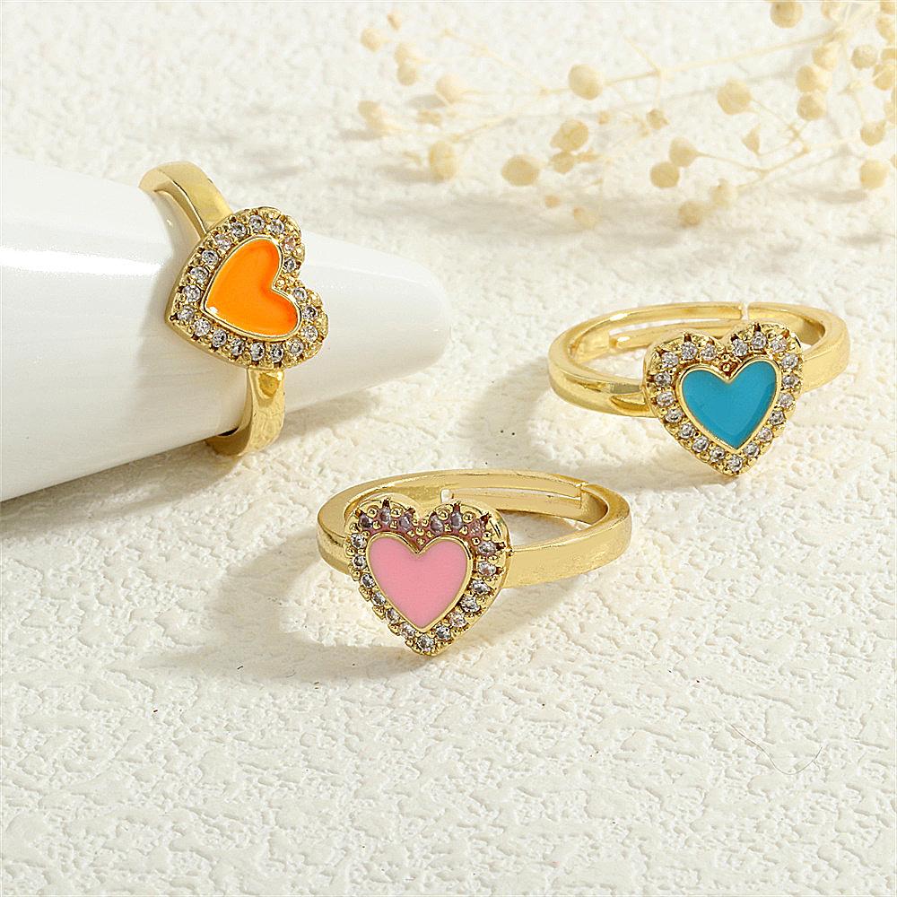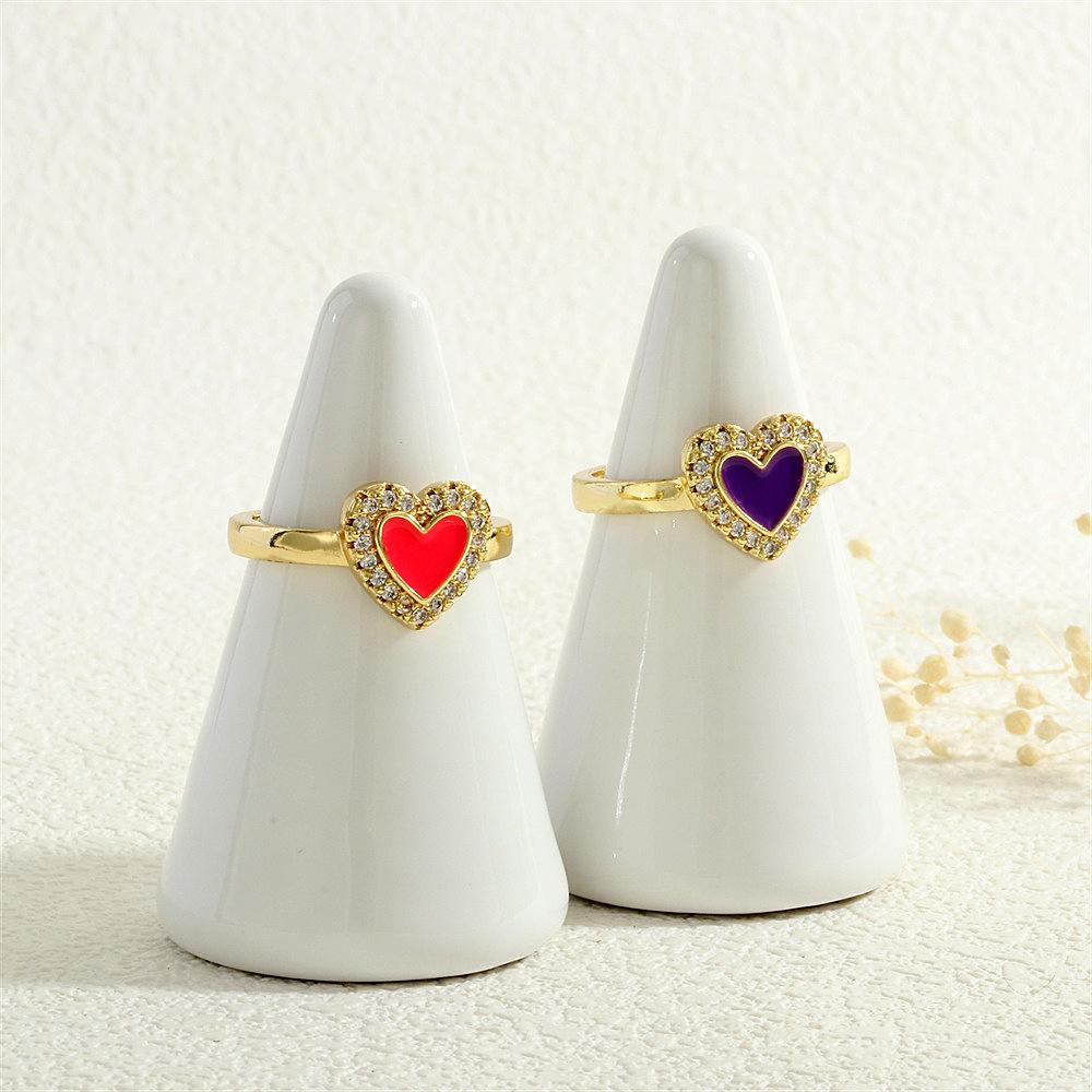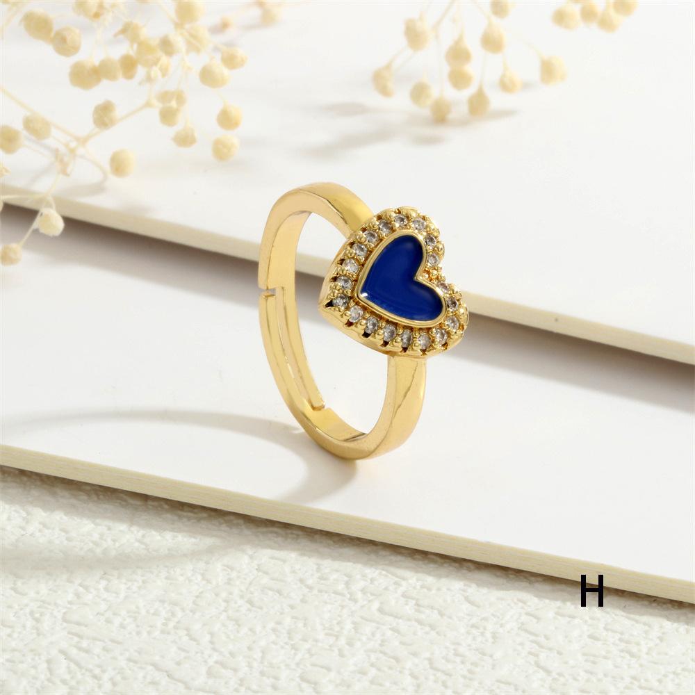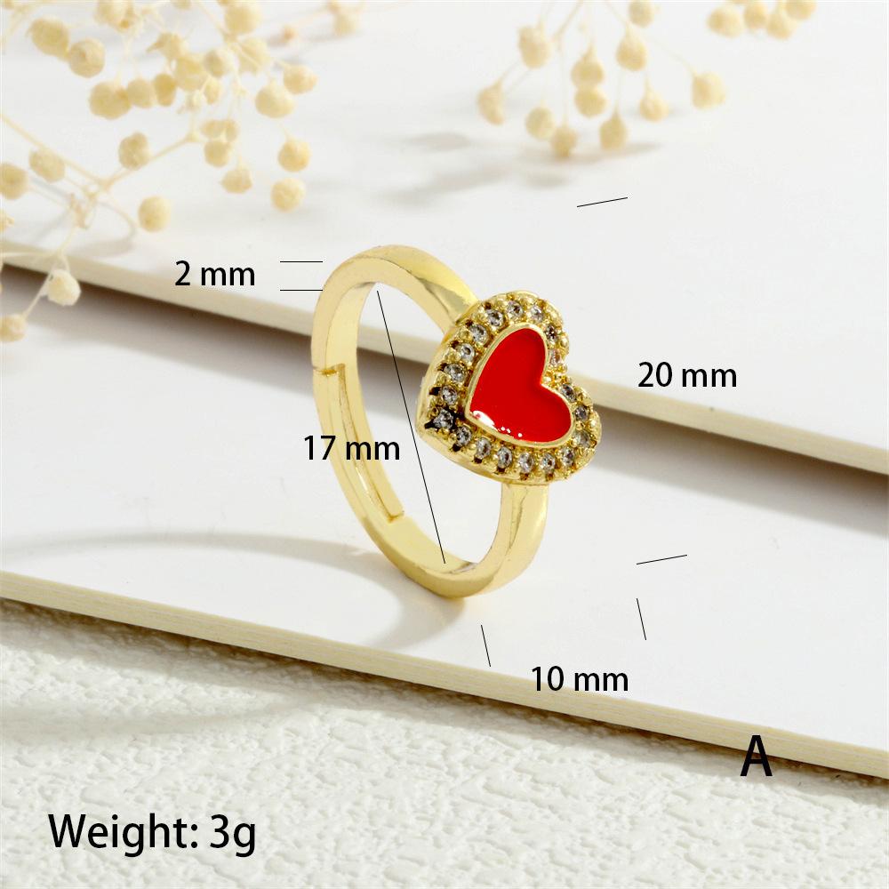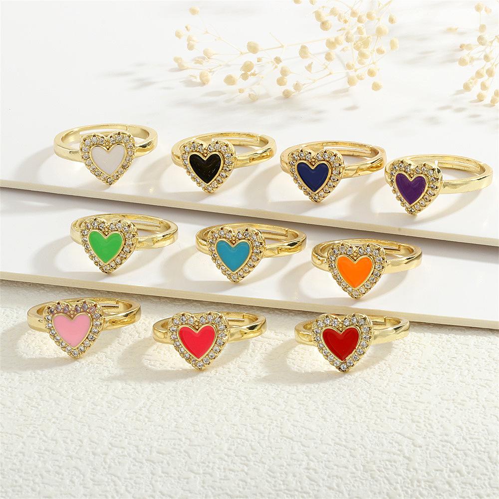 Anillo Europeo y Americano para Mujer Nicho de Alta Gama Lujo Ligero Cobre 18K Micro-incrustado Zircón Corazón Corazón en Forma de Gota de Color Aceite Anillo Abierto