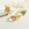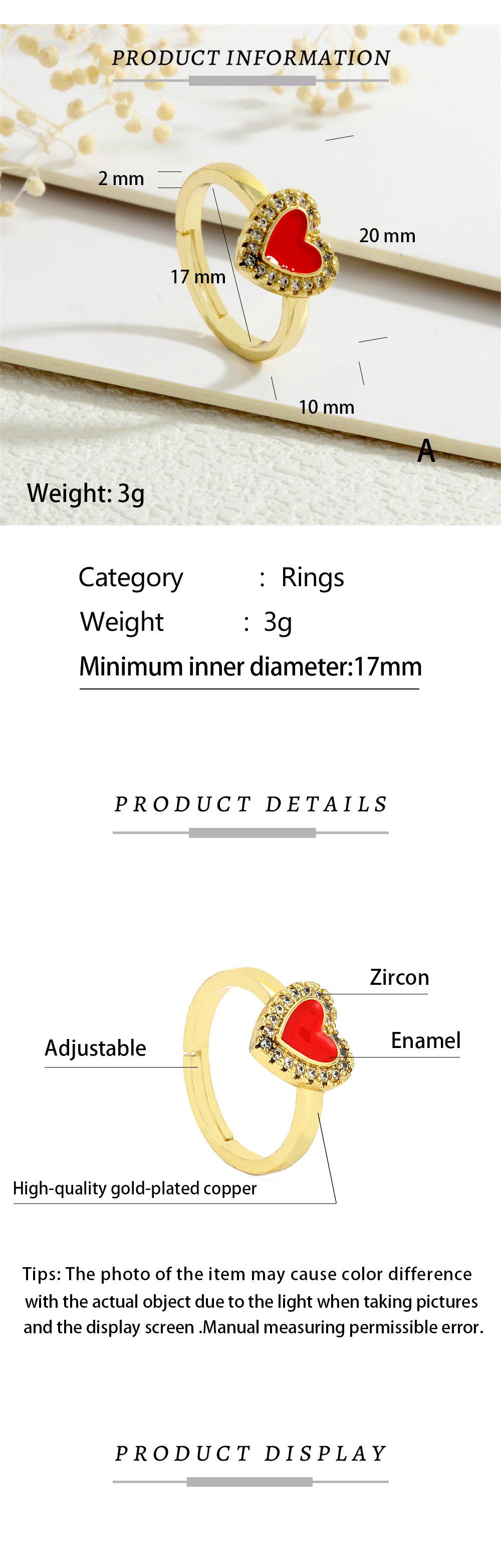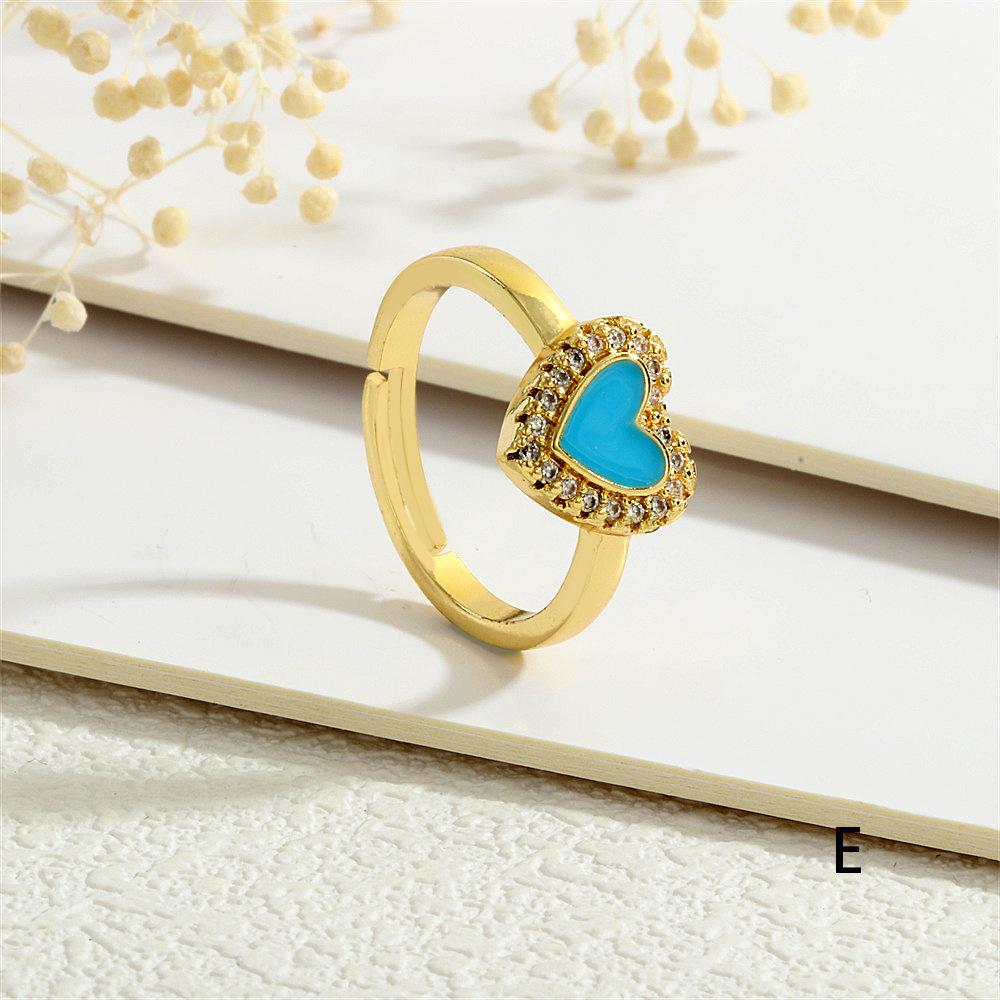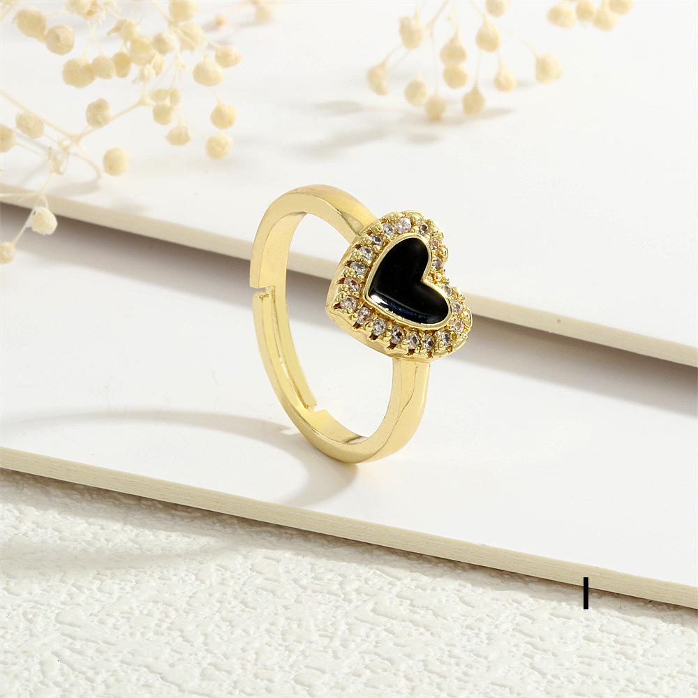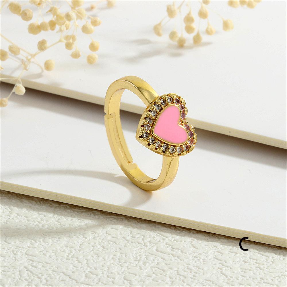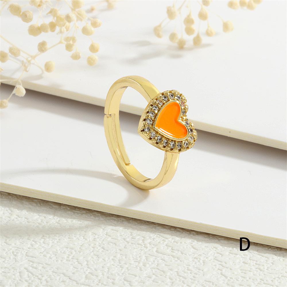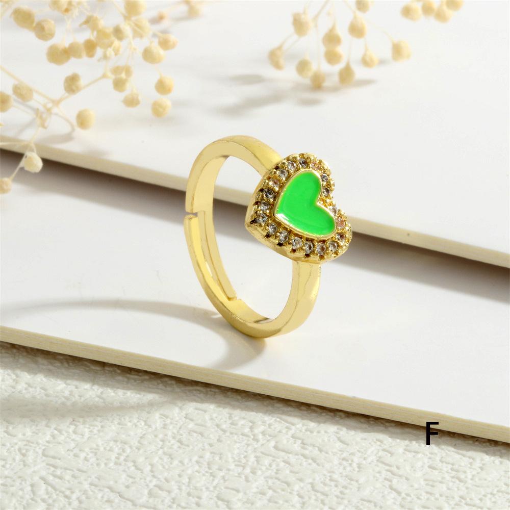 Anillo Europeo y Americano para Mujer Nicho de Alta Gama Lujo Ligero Cobre 18K Micro-incrustado Zircón Corazón Corazón en Forma de Gota de Color Aceite Anillo Abierto