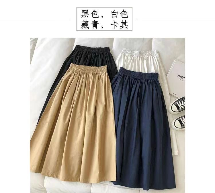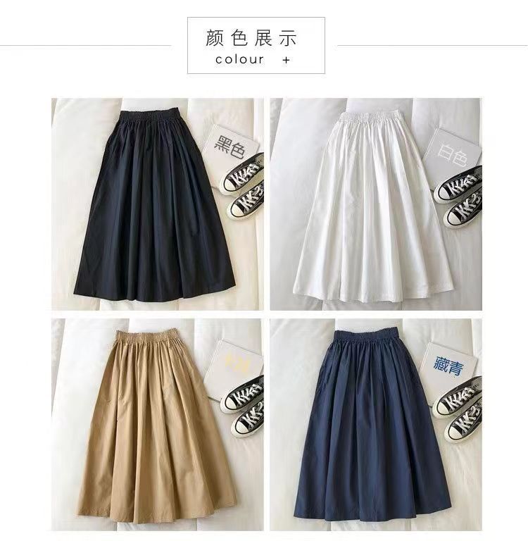 2024 Verano Nuevo Falda de Trabajo de Color Sólido con Doble Bolsillo para Mujer Estudiante Coreana Joker Alta Una Pieza Comercio Exterior